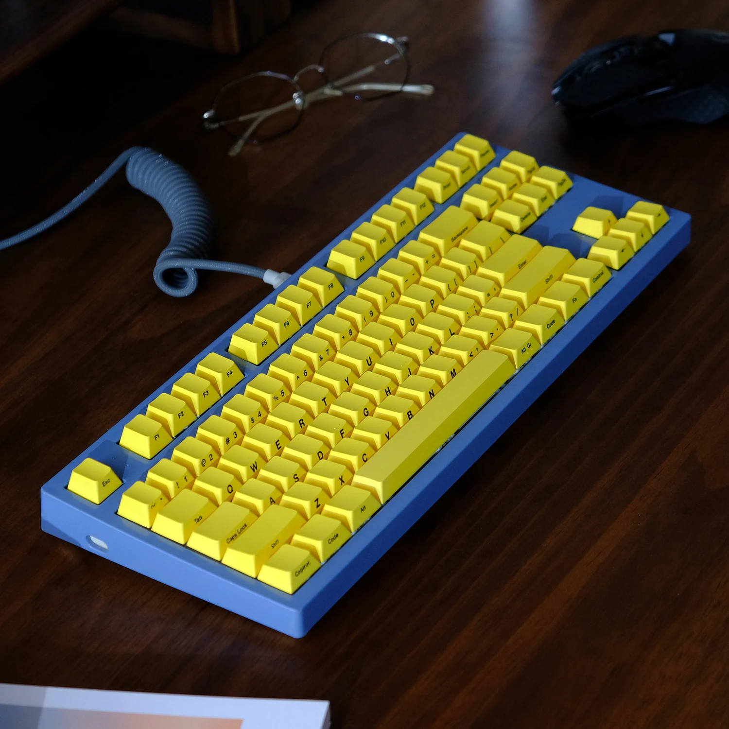 Comprar Teclas de sublimación para teclado MX Switch, 127 teclas, amarillo, rojo, azul, perfil de cereza, lado grabado, PBT Dye