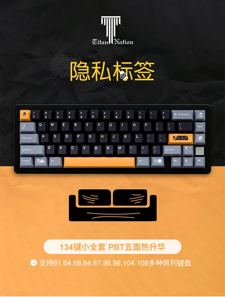 Teclas de sublimación de tinte PBT para teclado mecánico GX87 Crush80 Rainy75 Hi8 Lucky65, tema de etiqueta de privacidad, 134 teclas, perfil de cereza