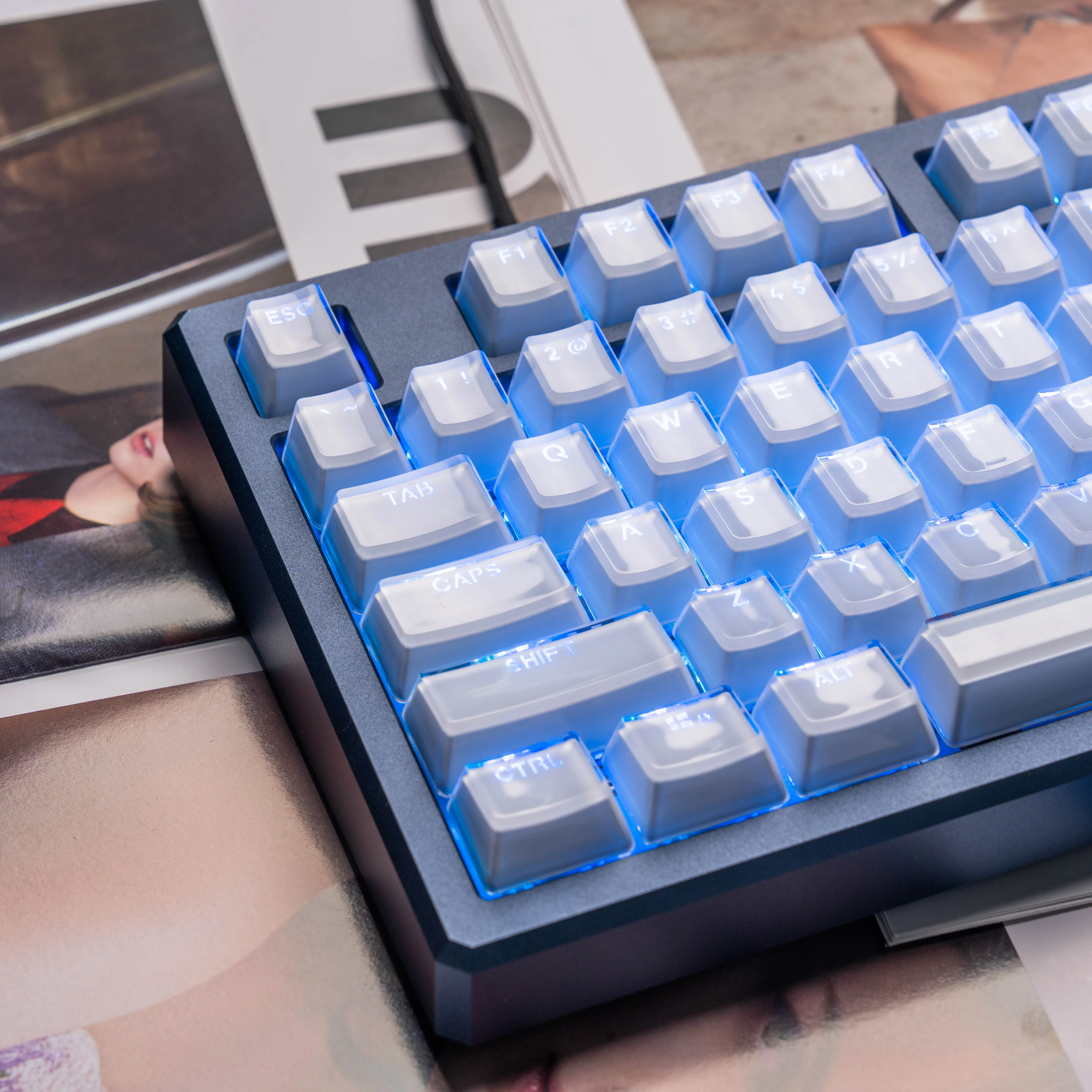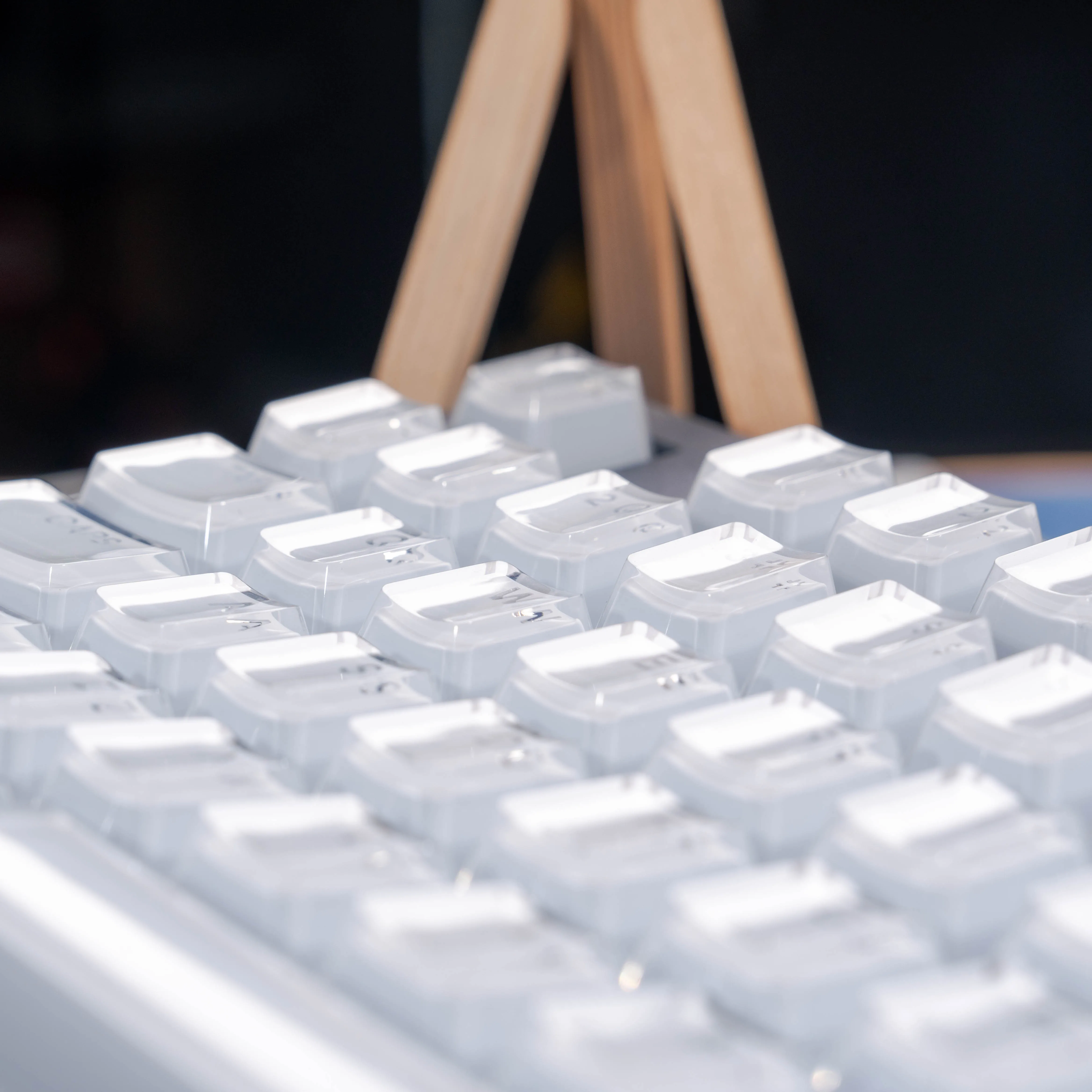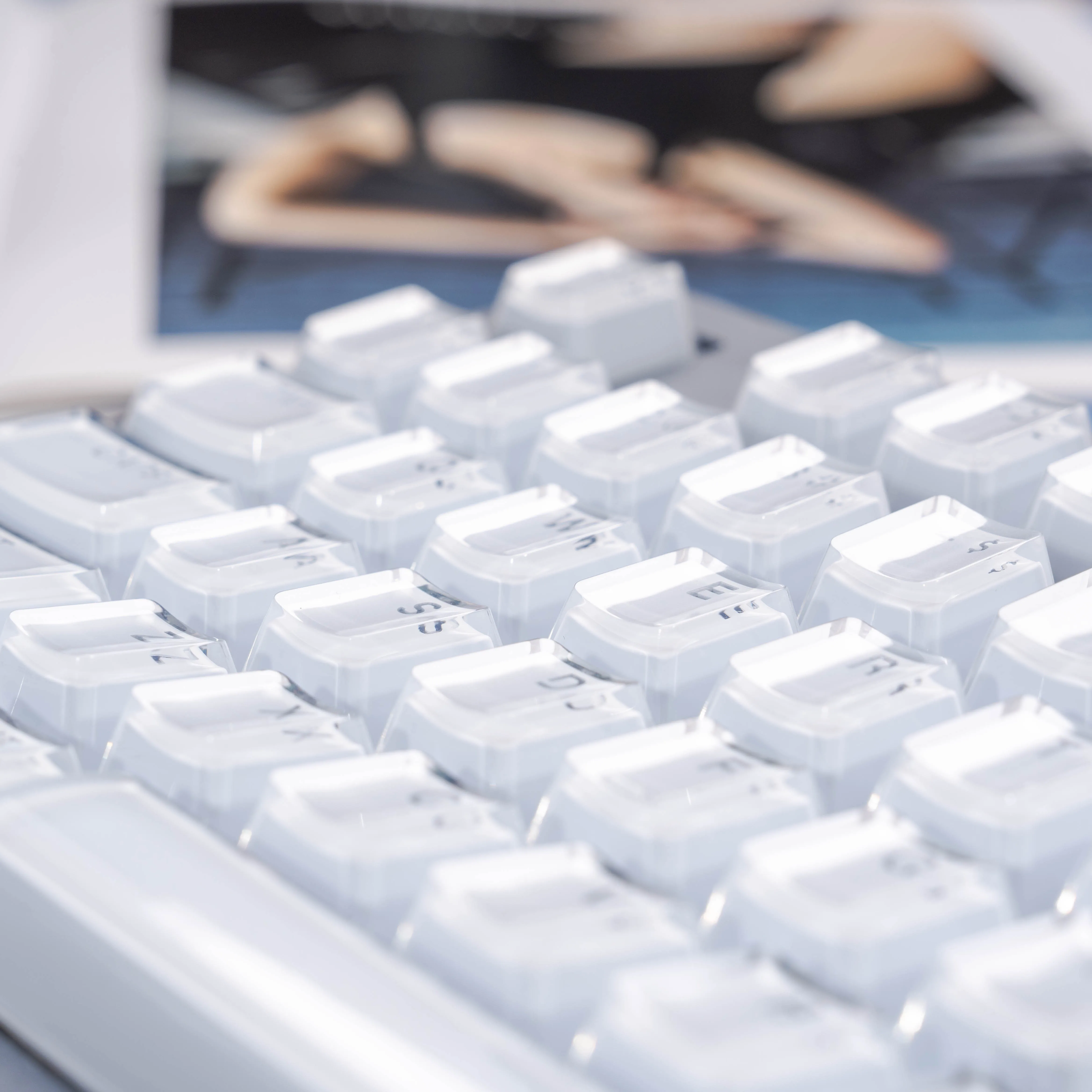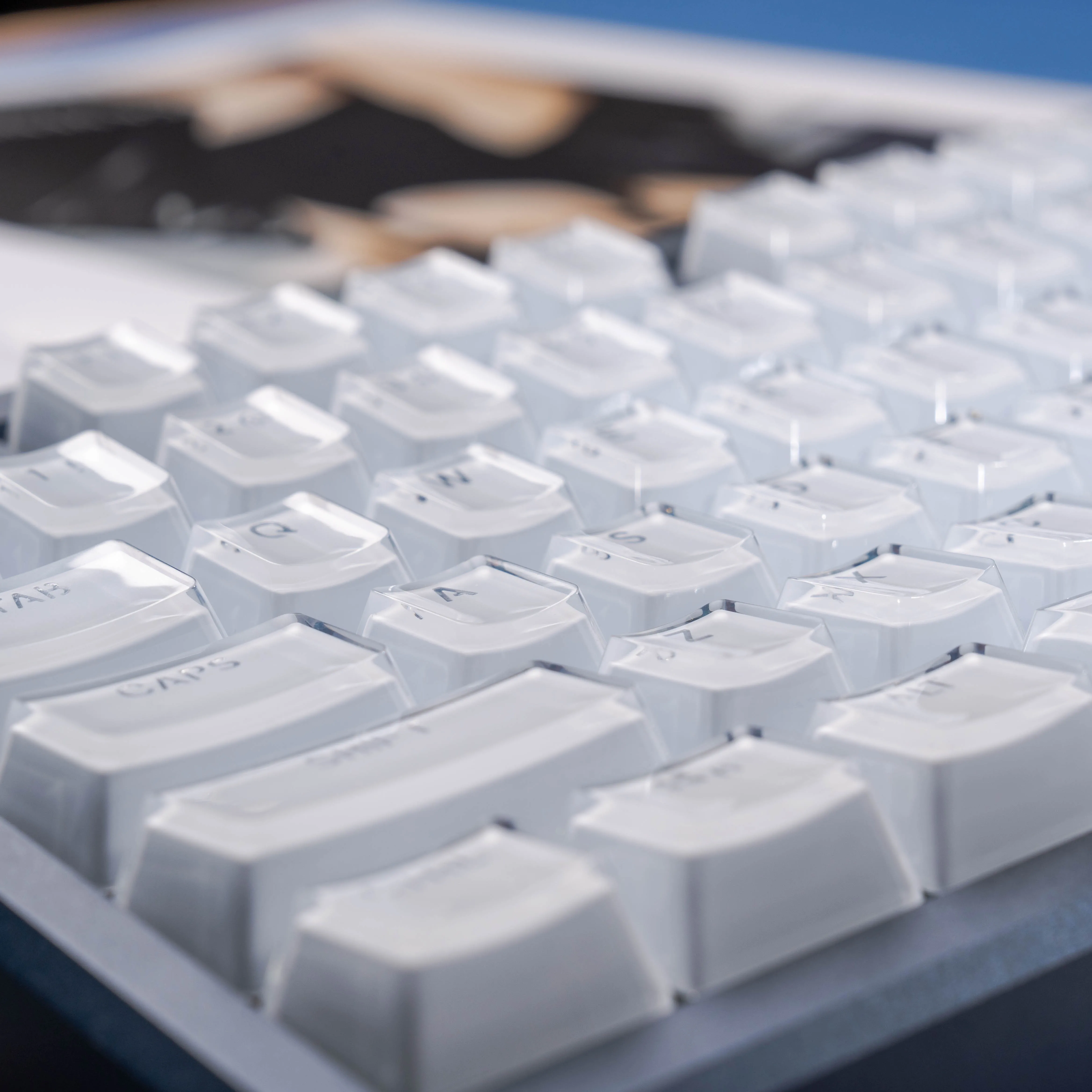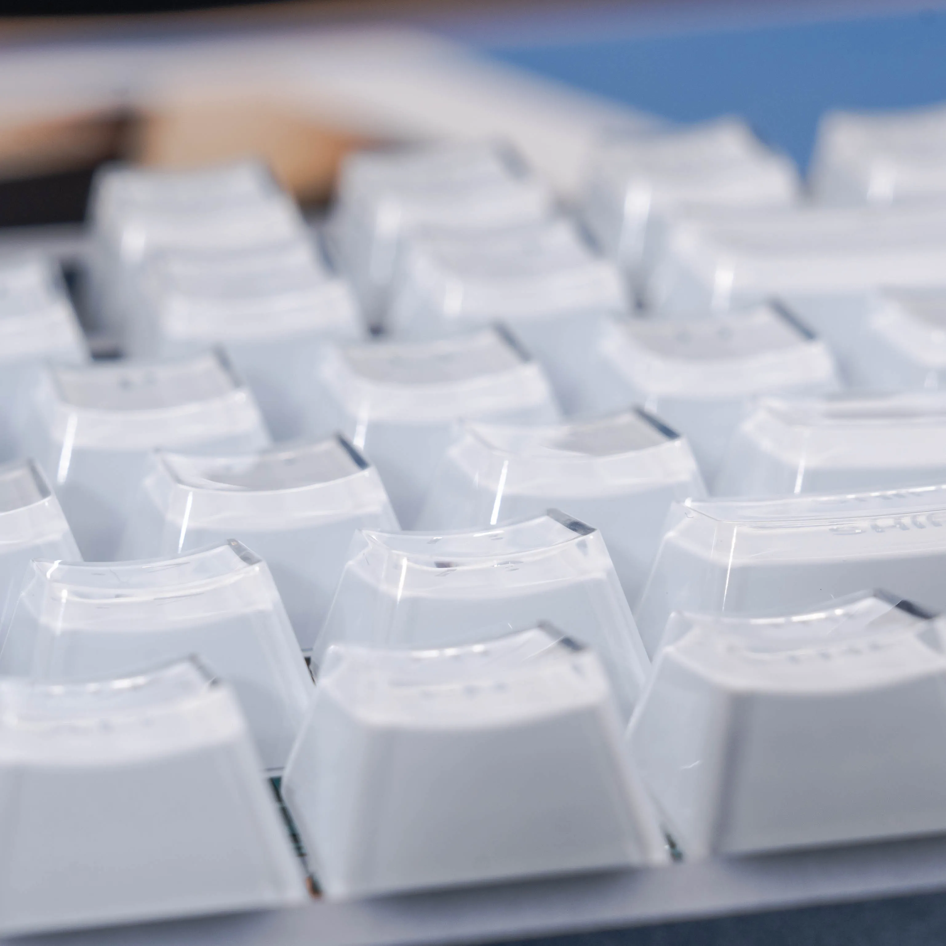《Teclas de material de PC》Debido a las propiedades del material, las teclas transparentes pueden ser vulnerables a los rayones y dejar el sudor/aceite de las manos que el material PBT.