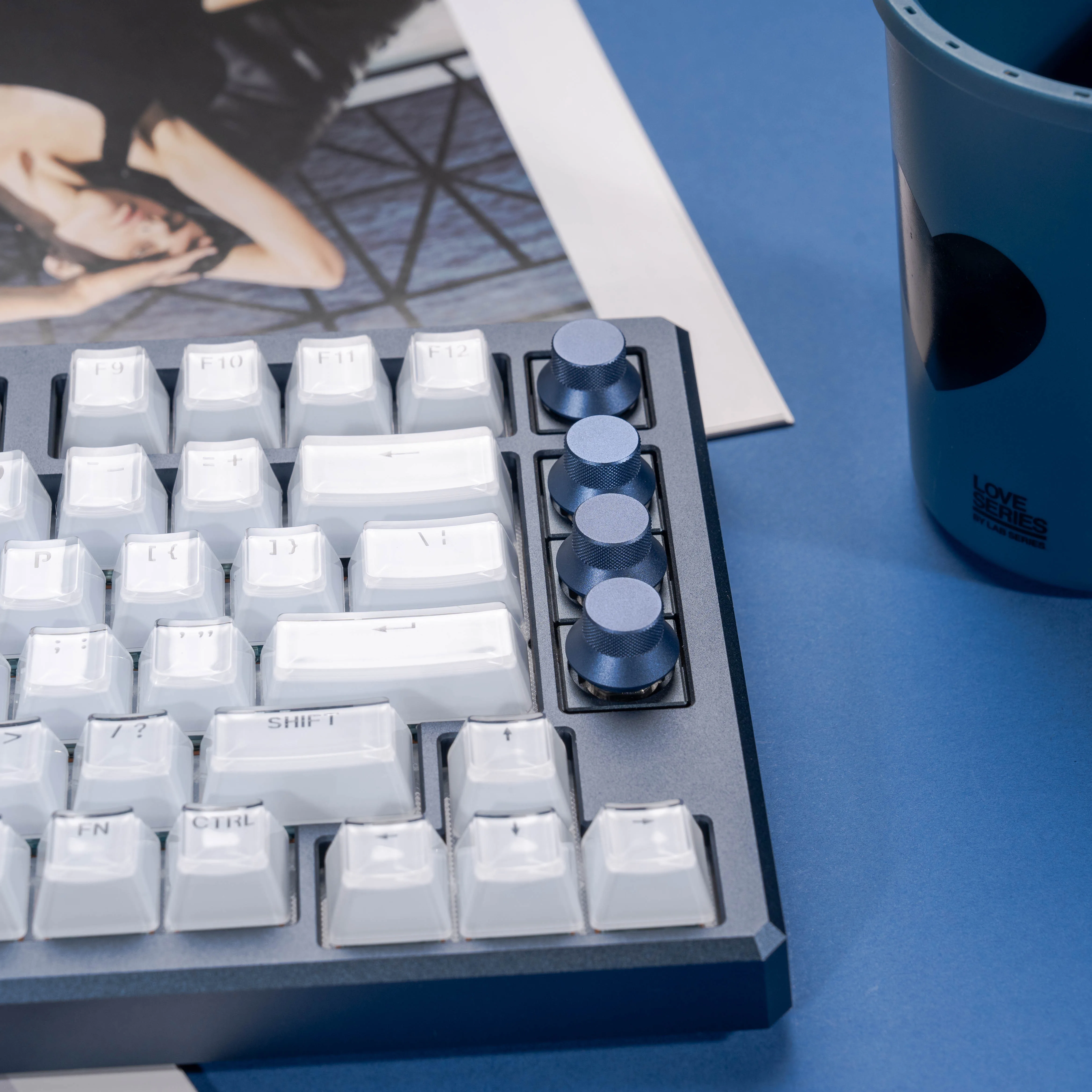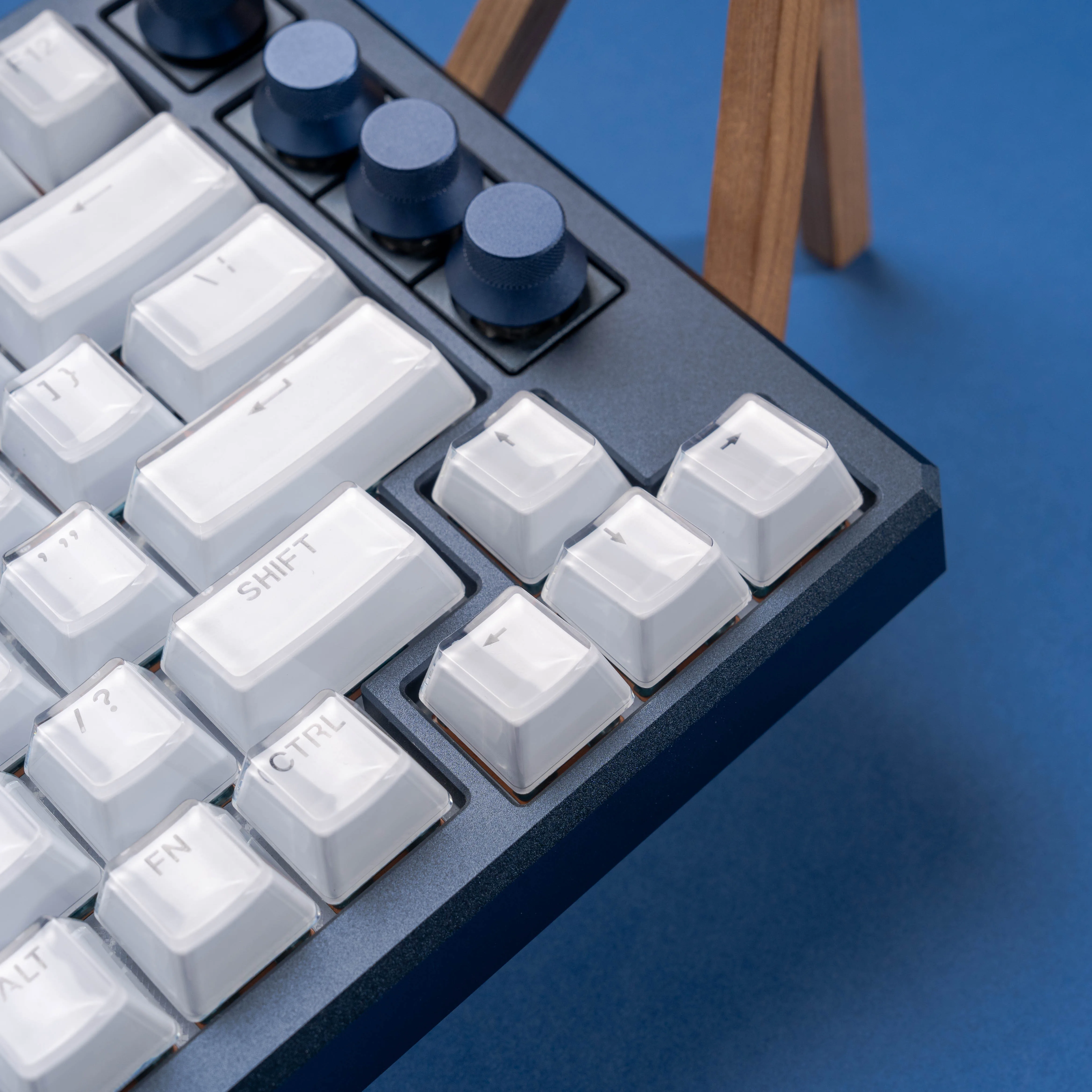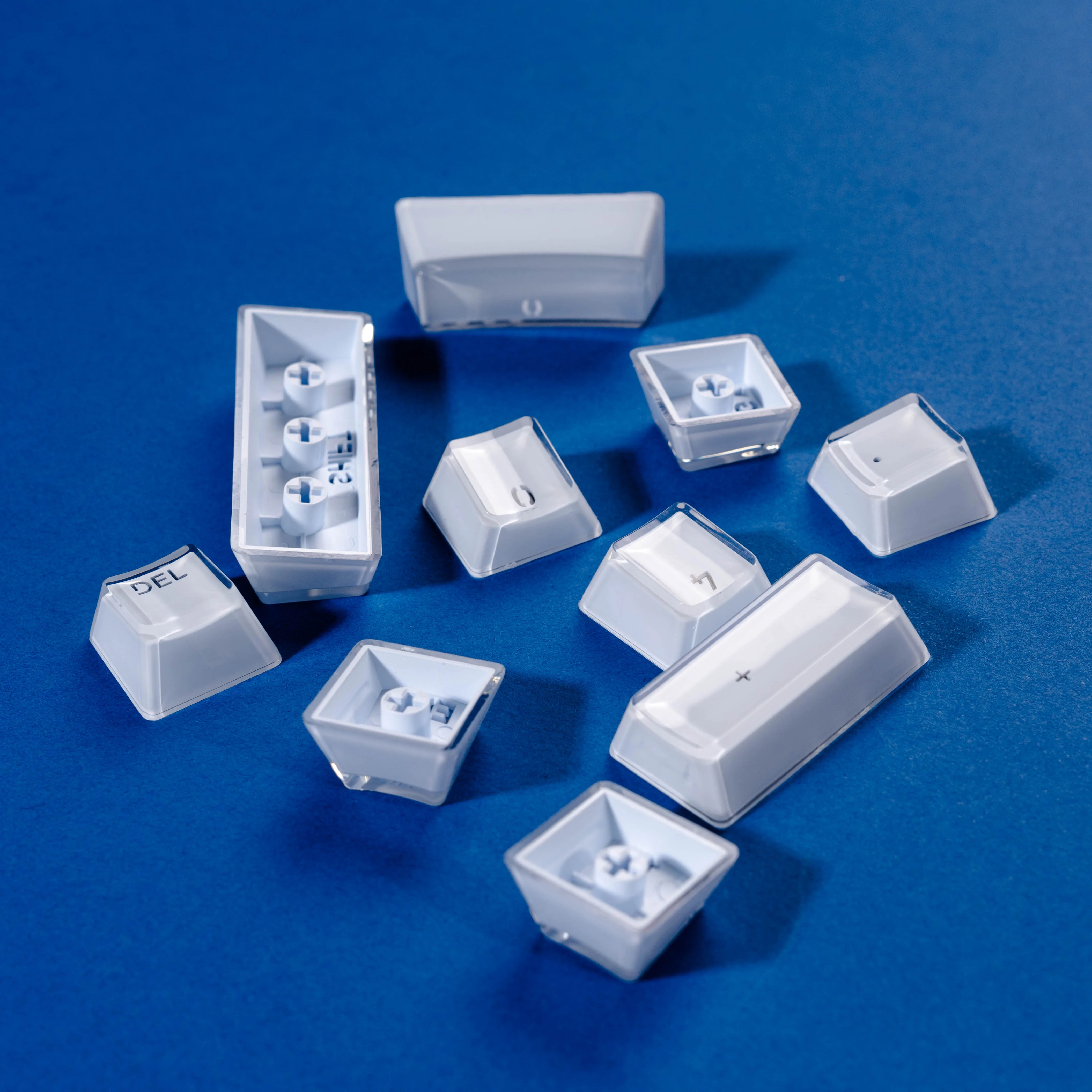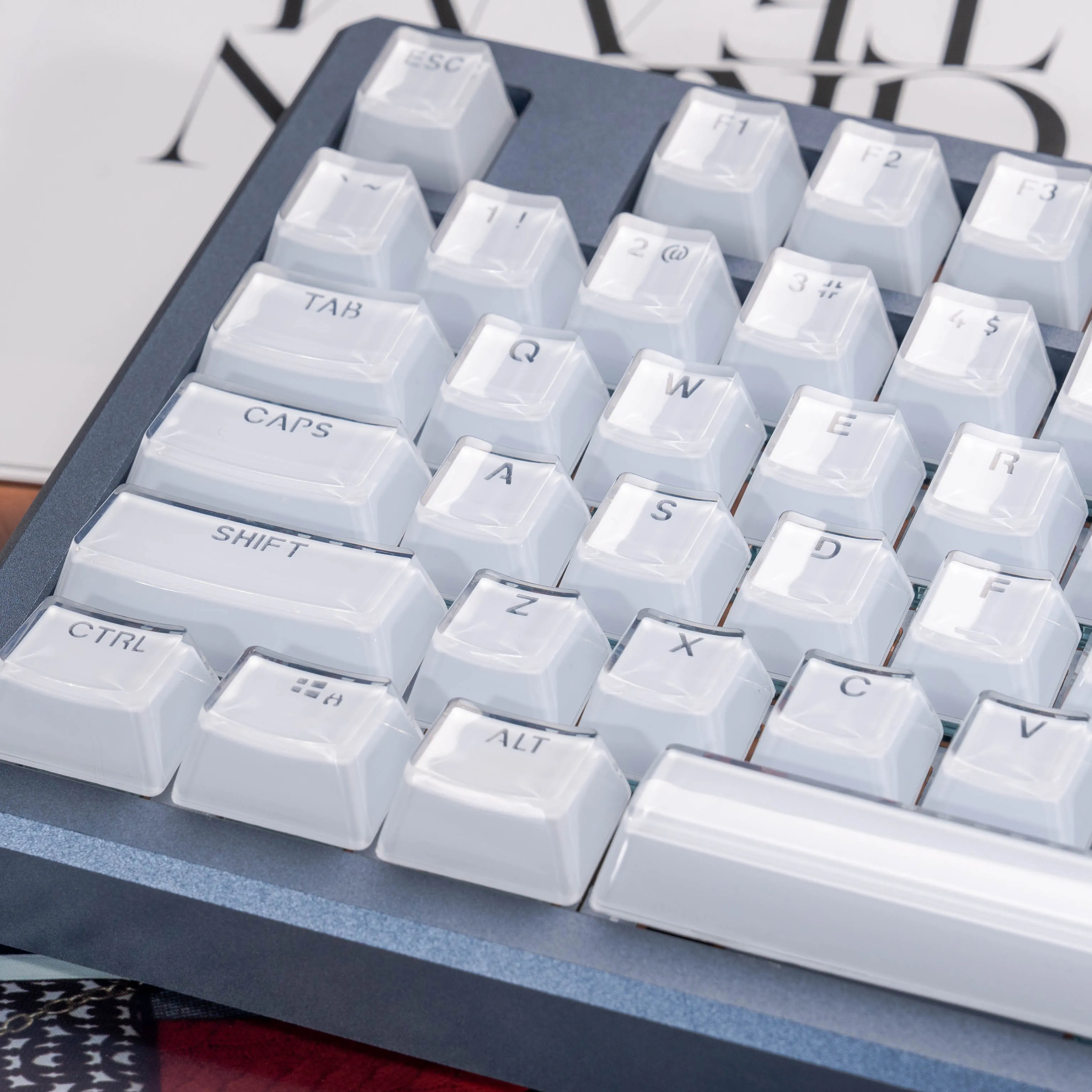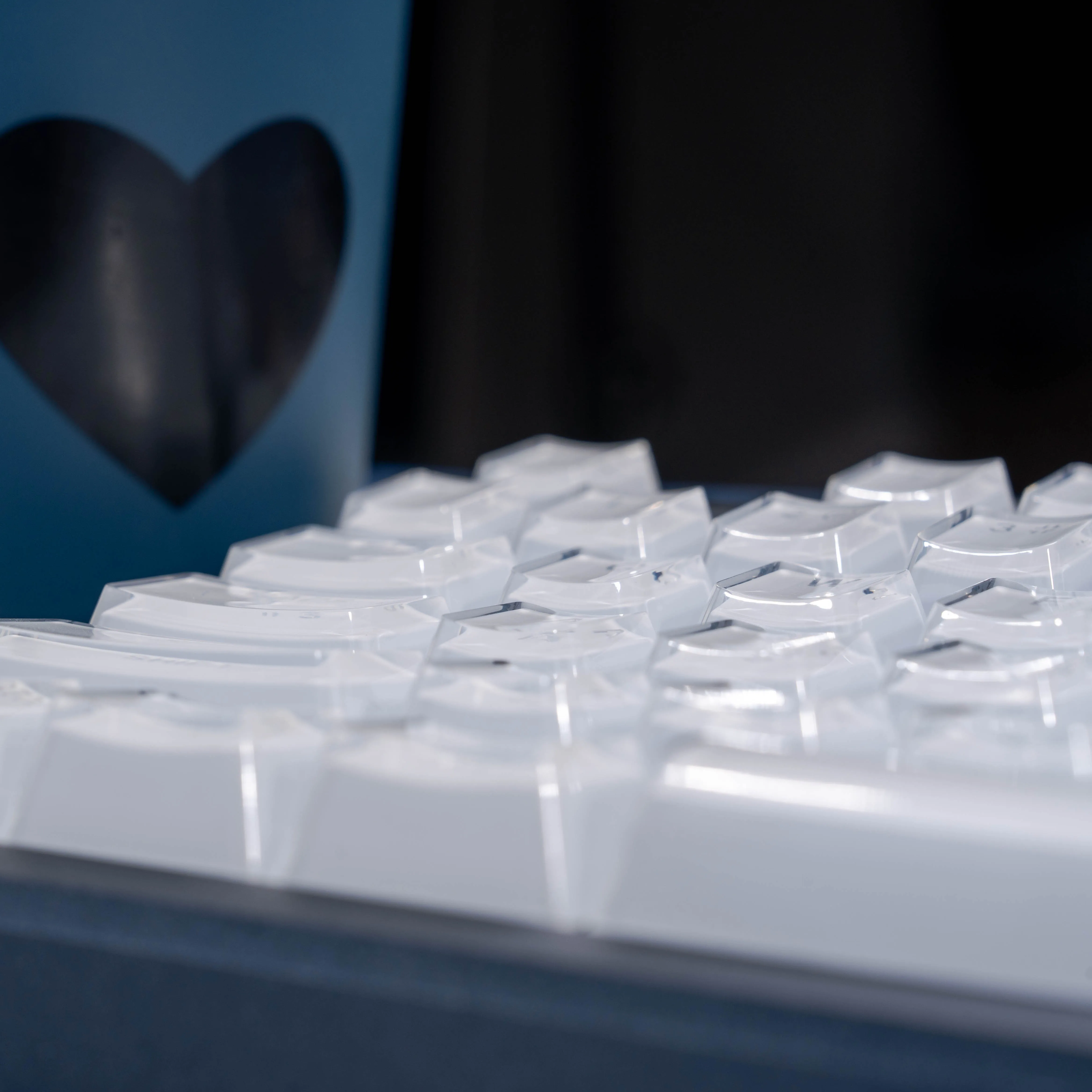 《Teclas de material de PC》Debido a las propiedades del material, las teclas transparentes pueden ser vulnerables a los rayones y dejar el sudor/aceite de las manos que el material PBT.