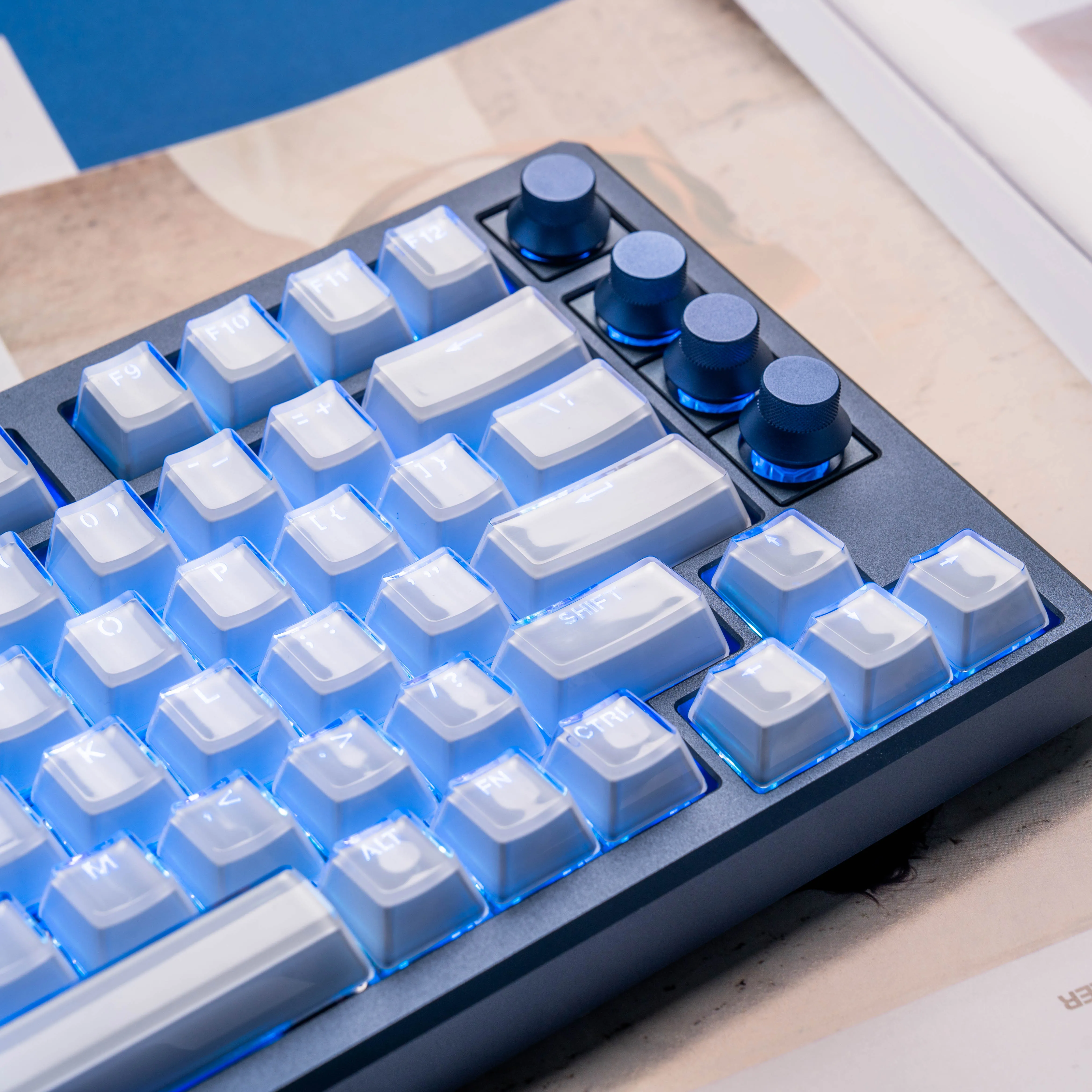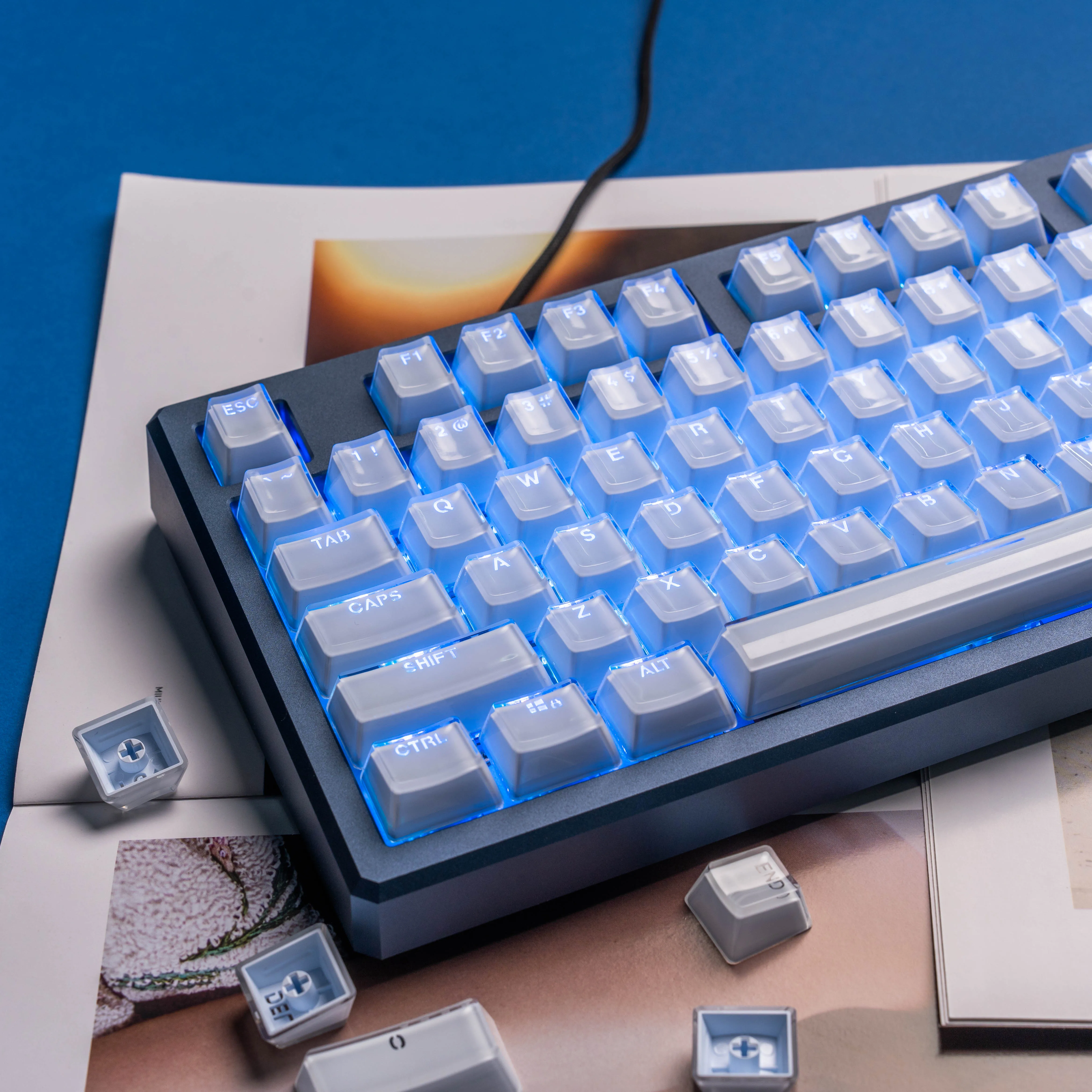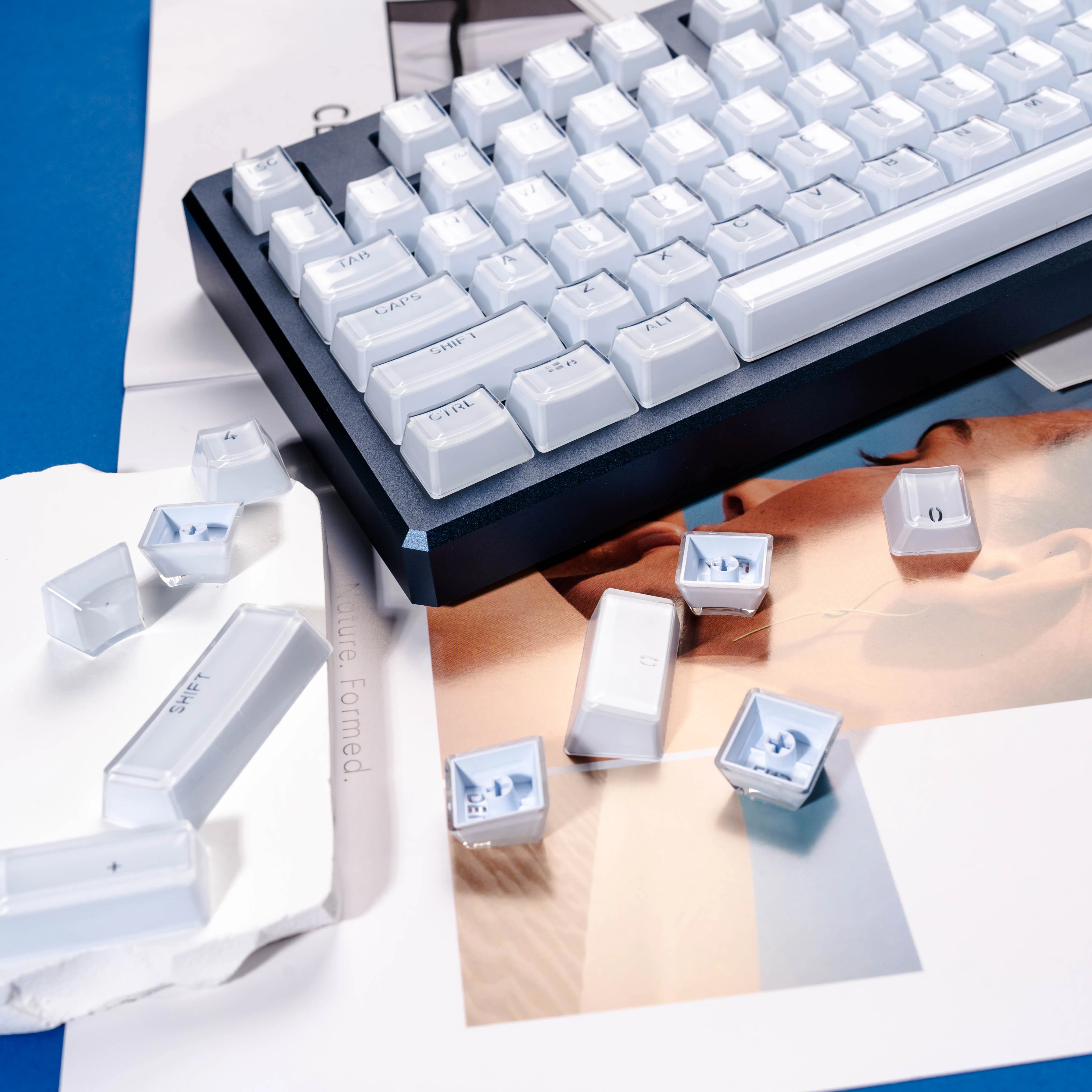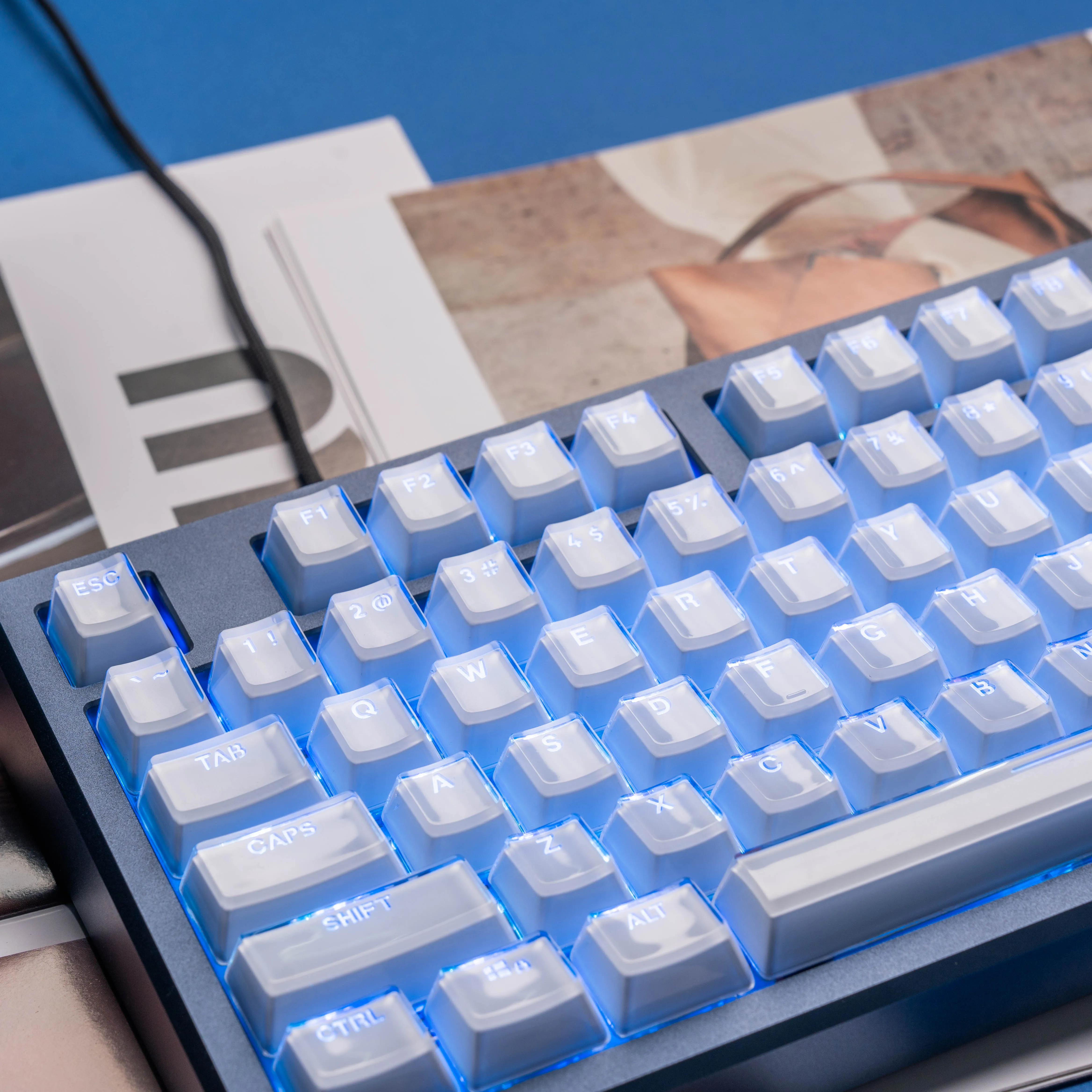 《Teclas de material de PC》Debido a las propiedades del material, las teclas transparentes pueden ser vulnerables a los rayones y dejar el sudor/aceite de las manos que el material PBT.