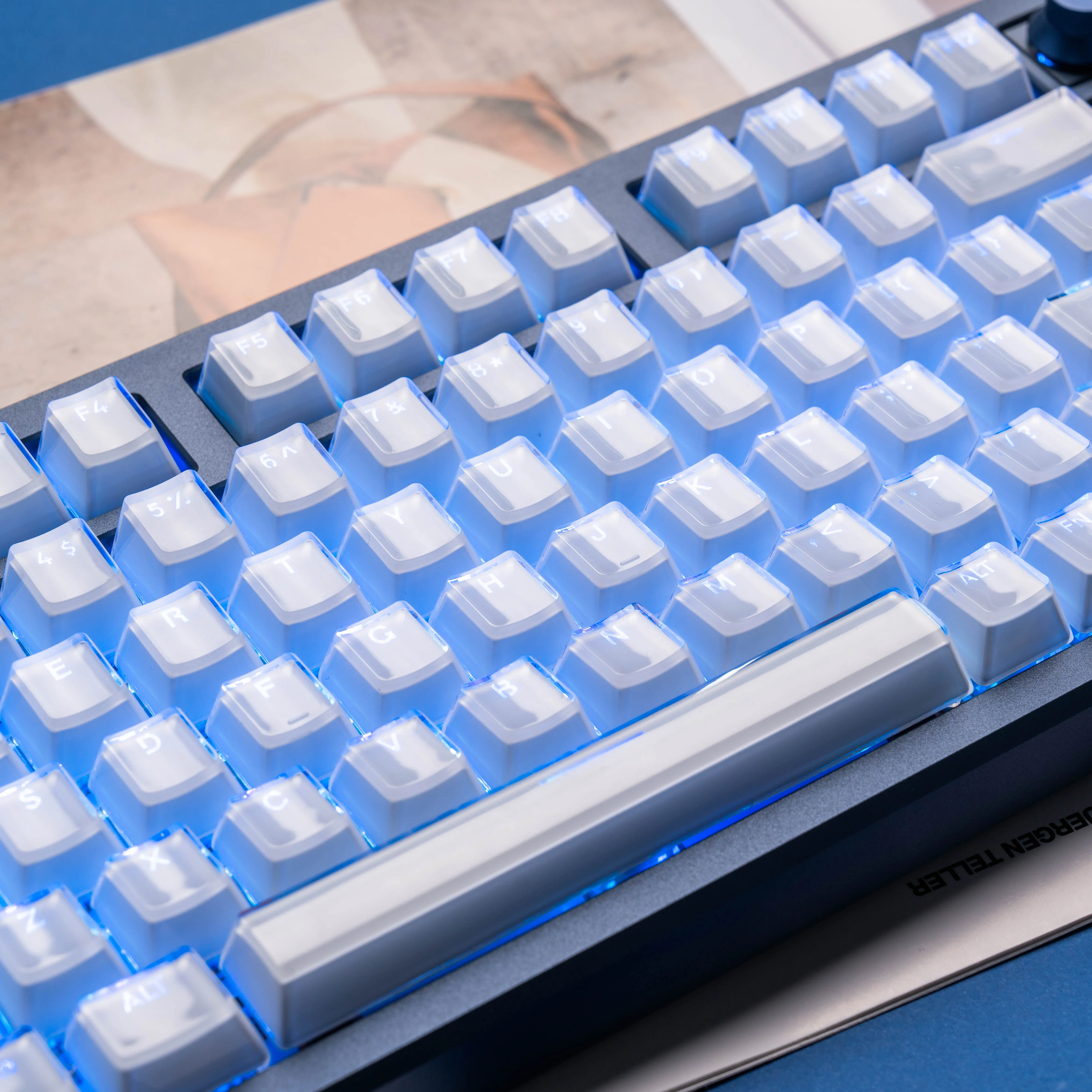Comprar Teclas superiores redondas de gelatina blanca de 113 teclas, tapa de llave de perfil OEM translúcido de cristal de hielo para teclado mecánico Cherry MX 61 68 104