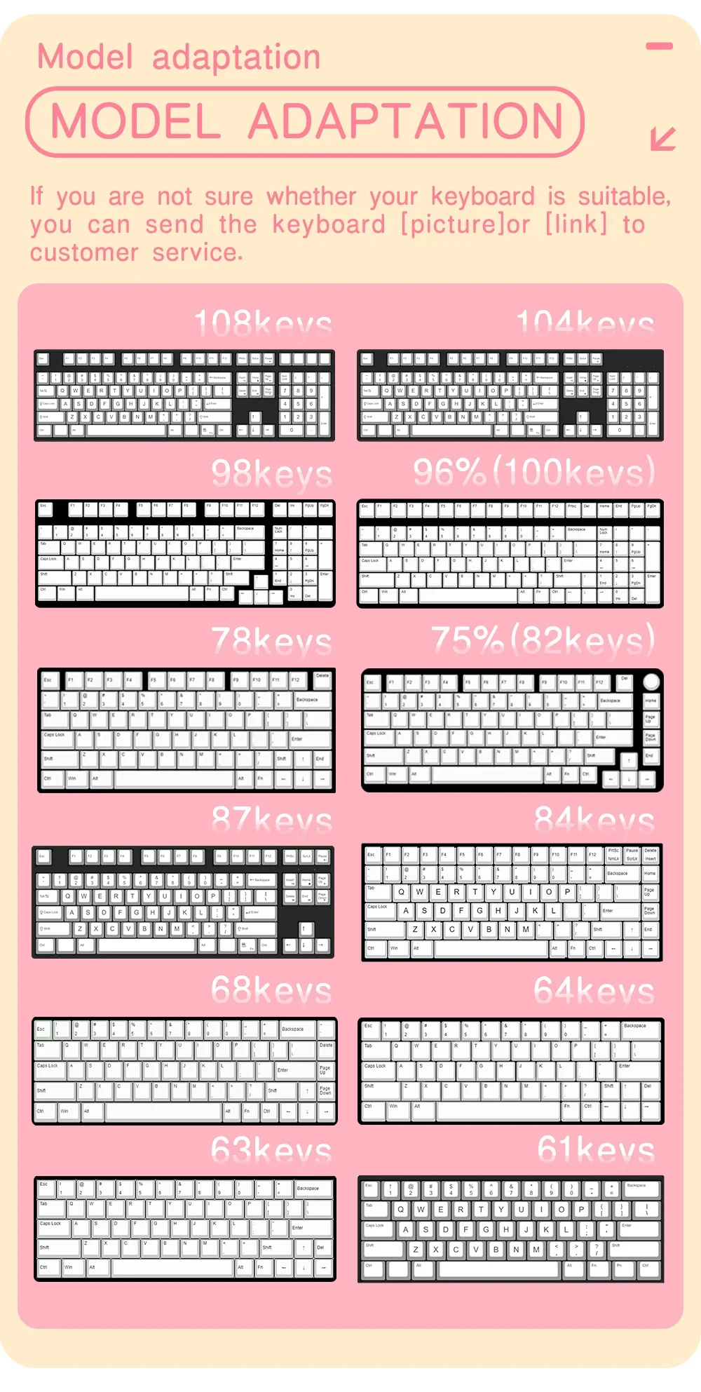 Adaptación: teclado mecánico 61/63/64/68175/82/84/87196/98/100/104/108