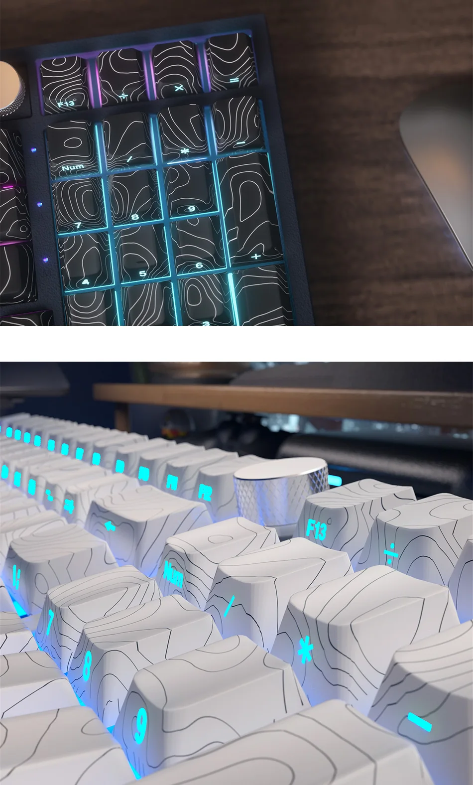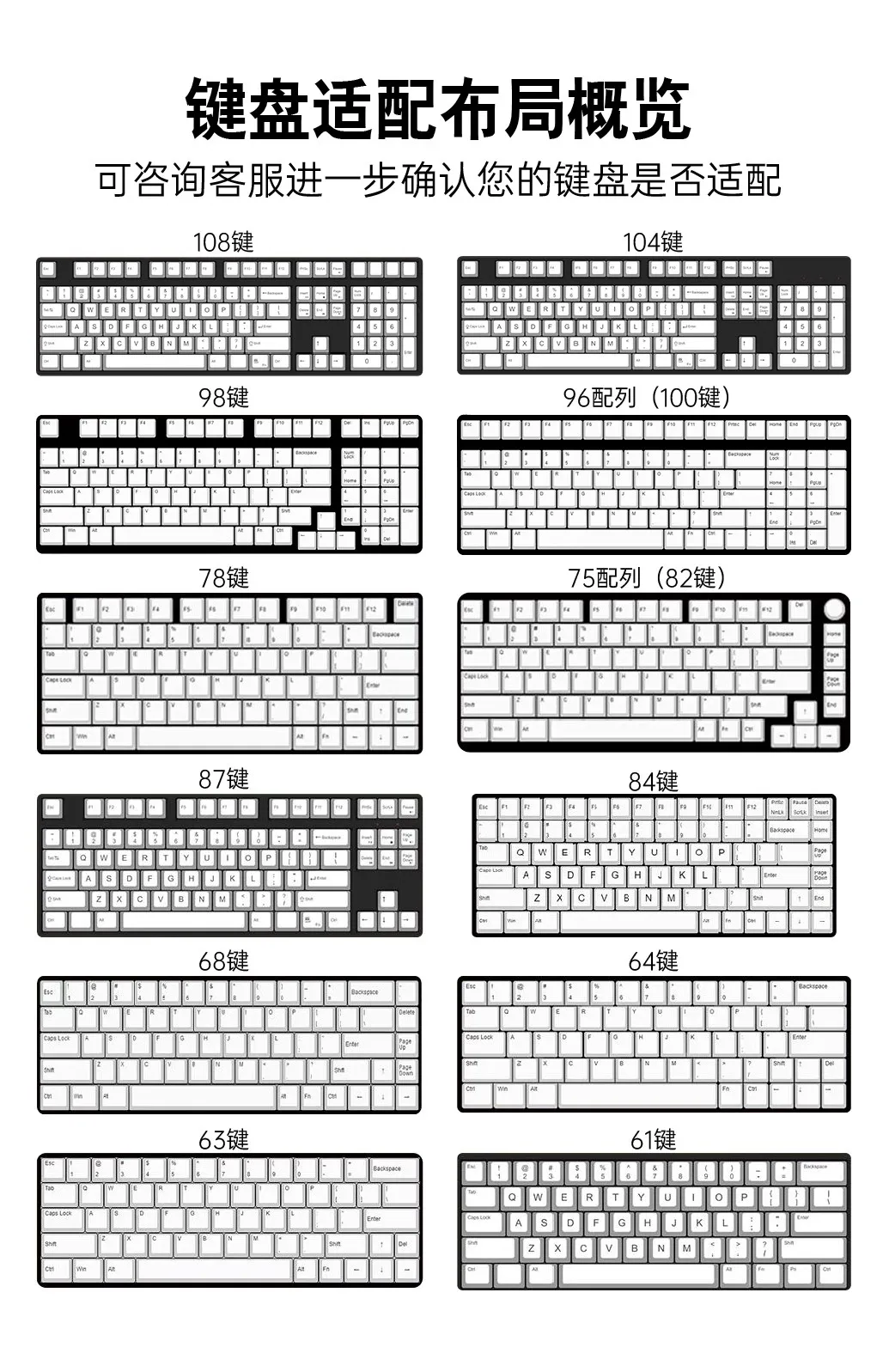 Diseño completo versátil-Amplia gama de compatibilidad con nuestras teclas compatibles con MX stick. Perfectas para teclados 100% de tamaño completo, 80% TKL y 60%, estas teclas PBT admiten diseños ANSI e ISO, lo que garantiza que se ajusten a las configuraciones estándar de la fila inferior para la comodidad de los juegos y la escritura.