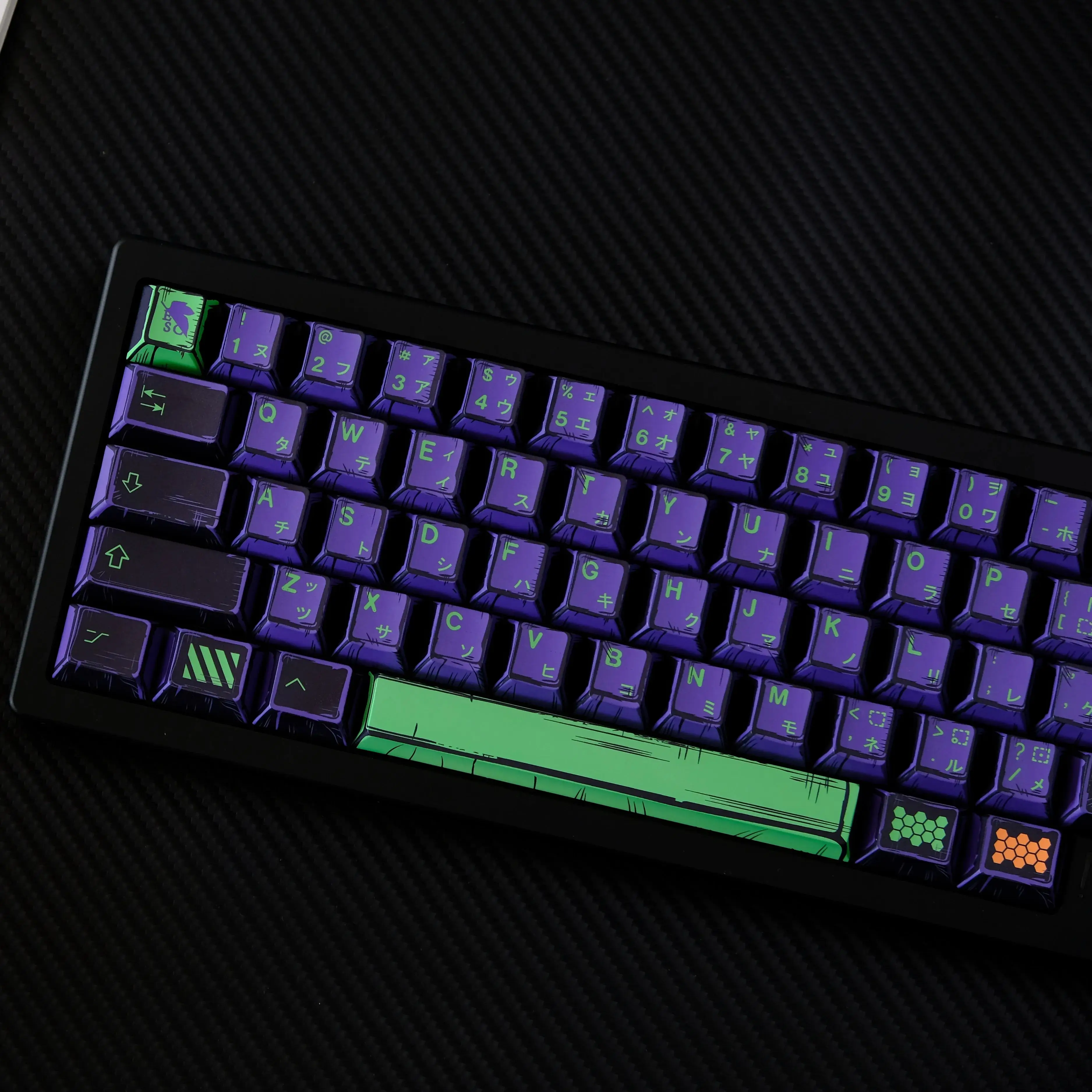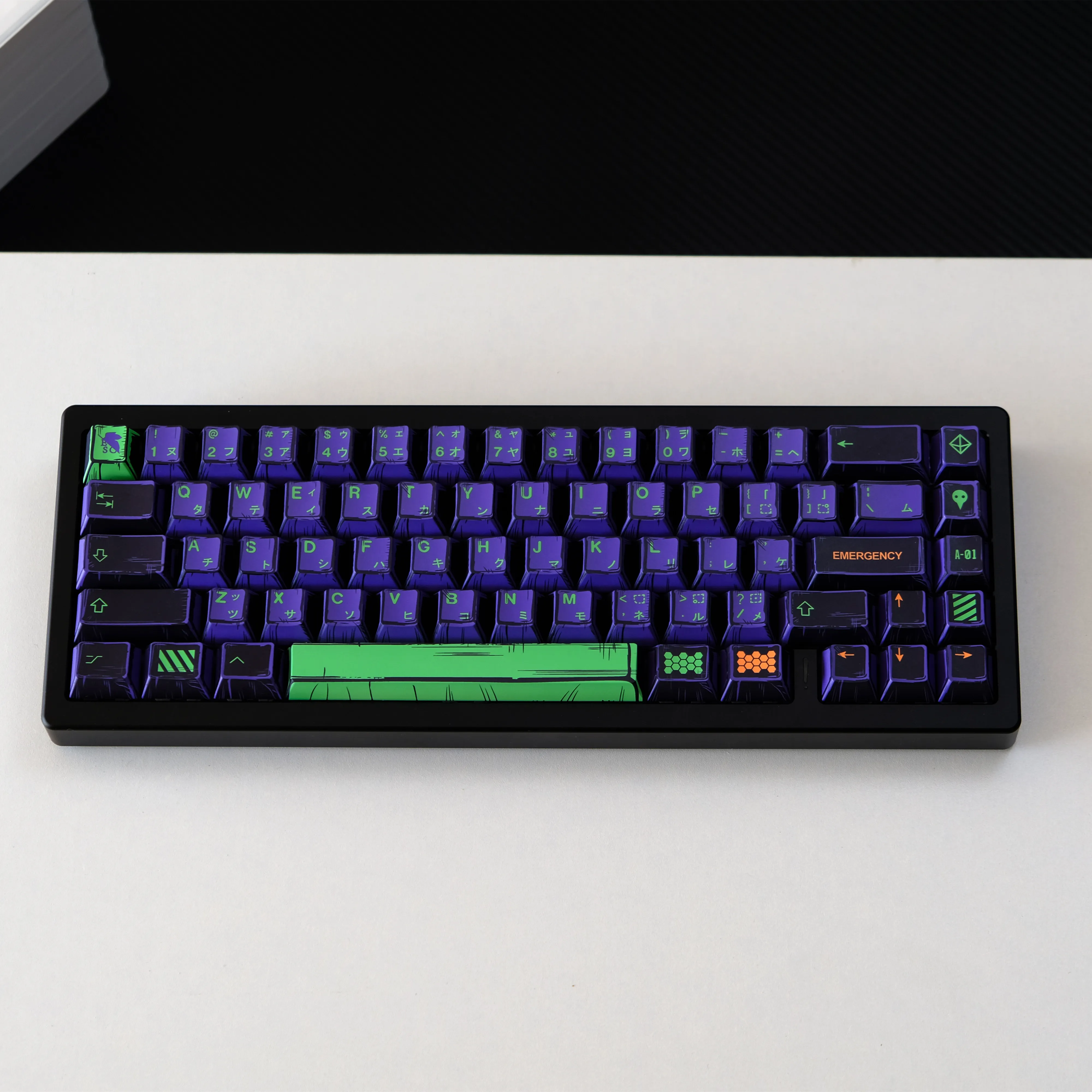 Teclas de excelente apariencia y alta calidad. Faltan las claves de Windows (aunque tiene un montón de claves de Mac). Curiosamente, la única tecla de bloqueo de mayúsculas también es la flecha hacia abajo.
