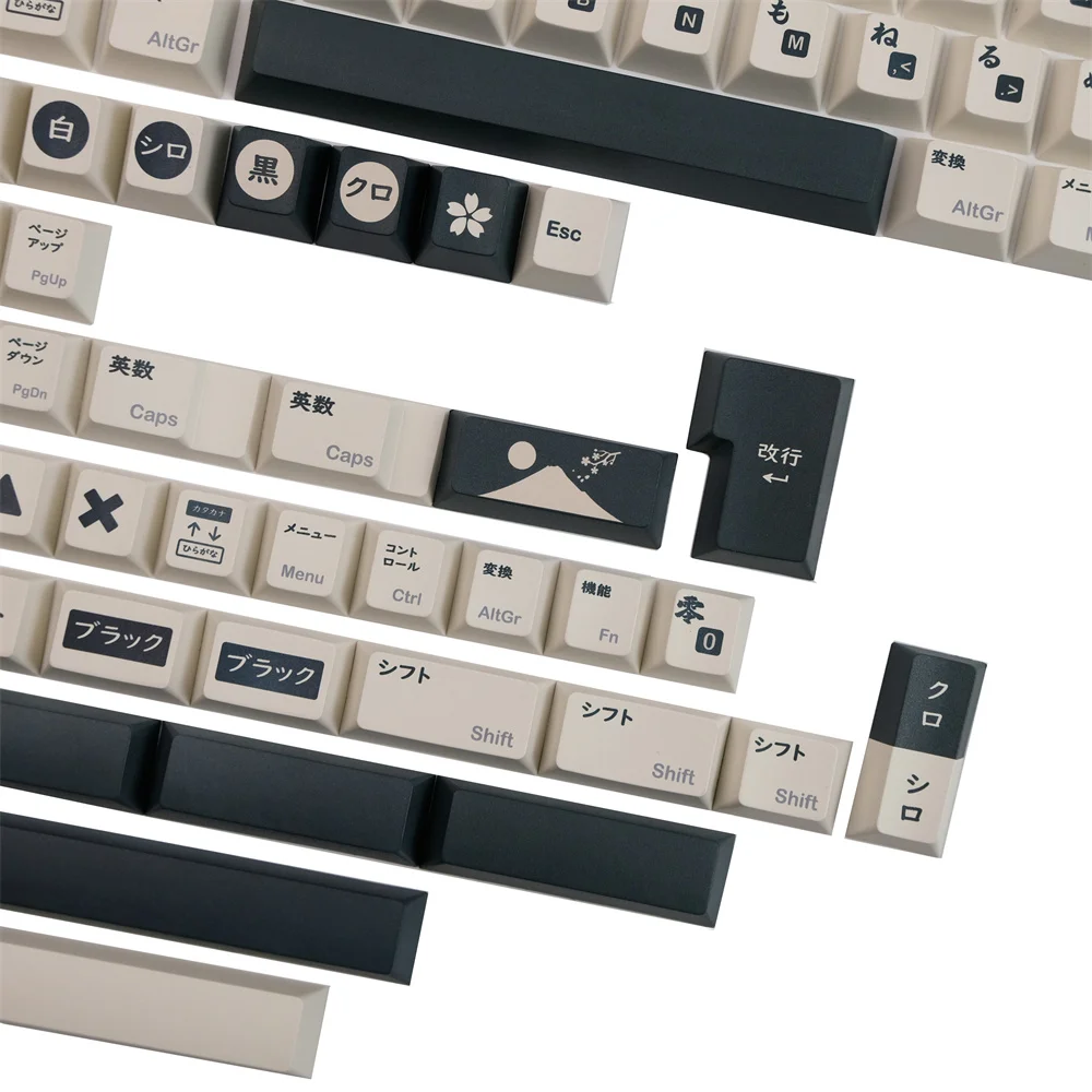 Black White Japanese PBT Keycap Cherry Profile DYE Sublimation Mechanical Keyboard Keycaps ANSI Layout ISO Enter Keys