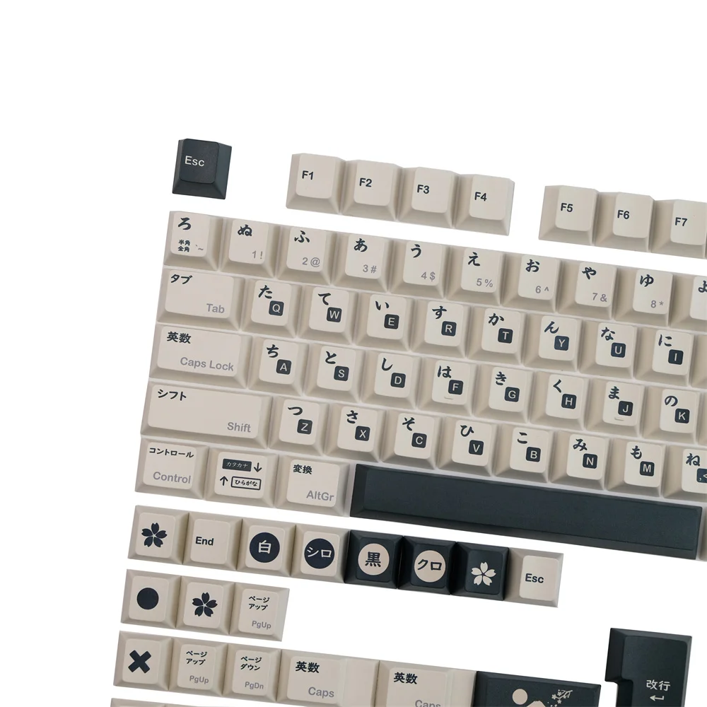 Black White Japanese PBT Keycap Cherry Profile DYE Sublimation Mechanical Keyboard Keycaps ANSI Layout ISO Enter Keys