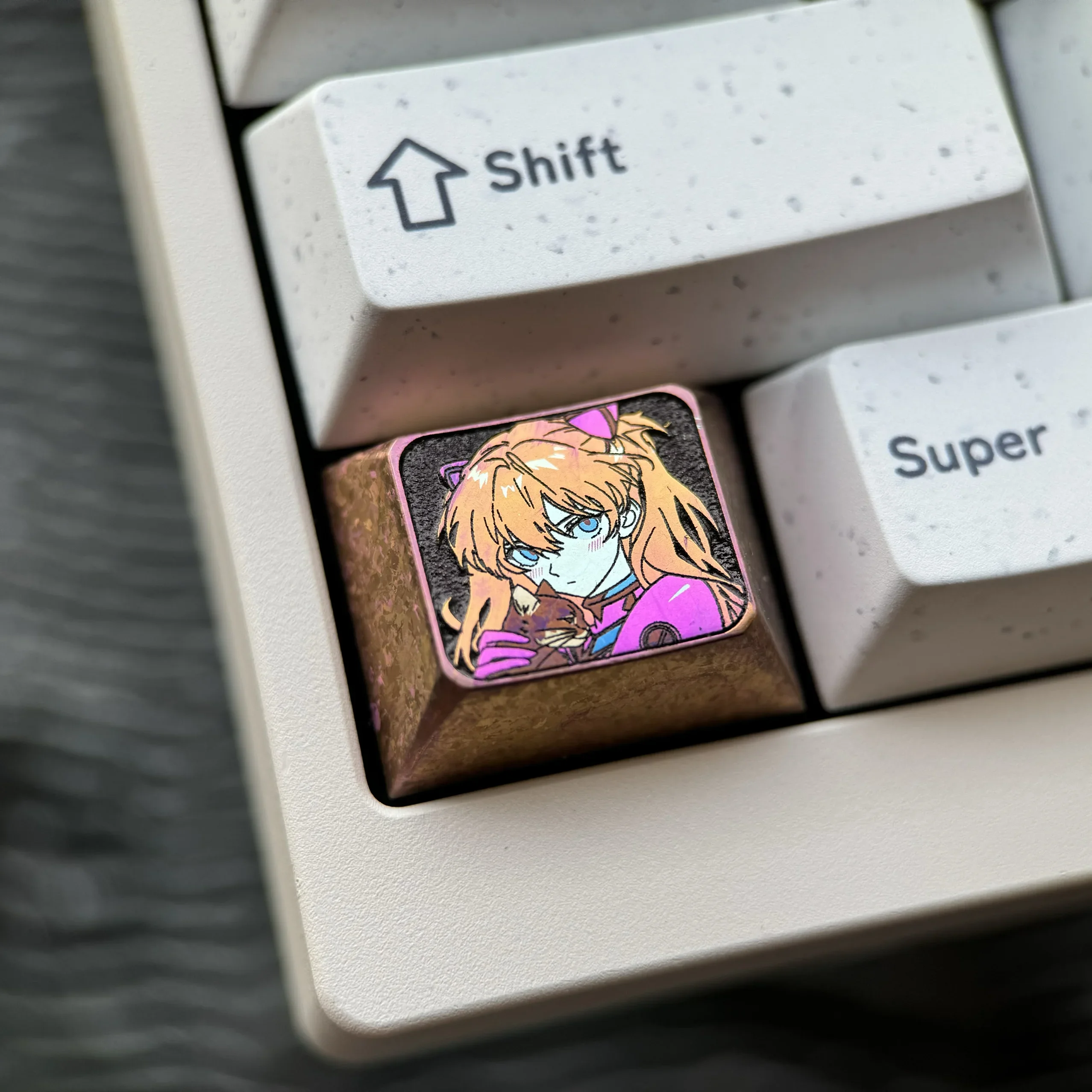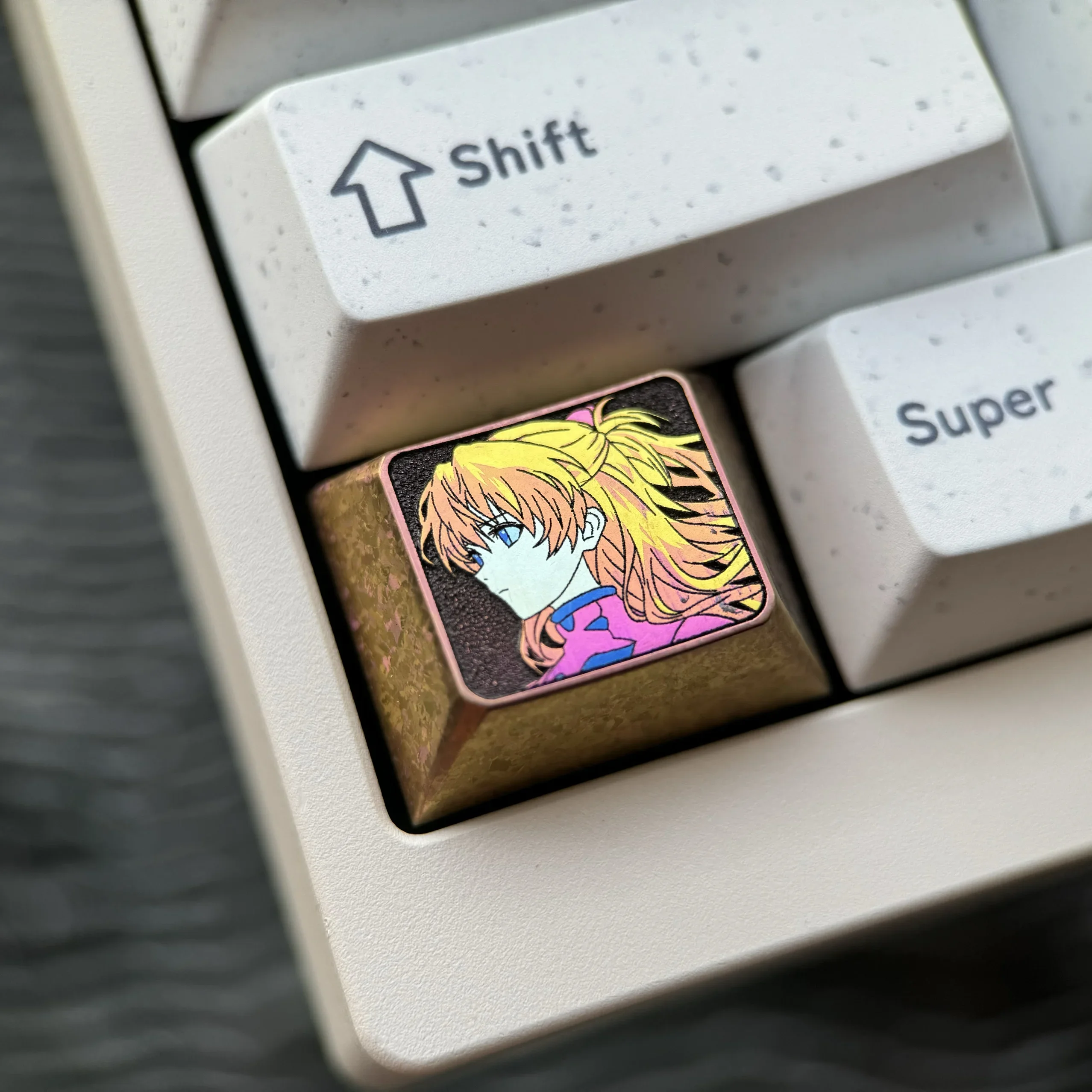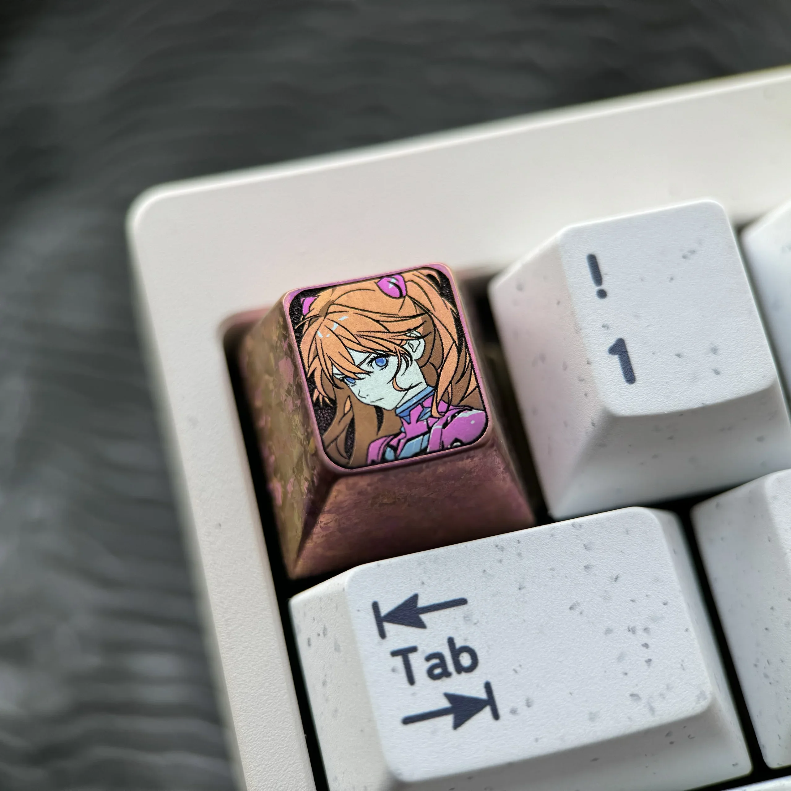 Teclas con tema de Anime EVA Asuka, perfil de cereza, teclas de aleación de titanio para teclado mecánico para juegos con llave ESC 1U, accesorios creativos