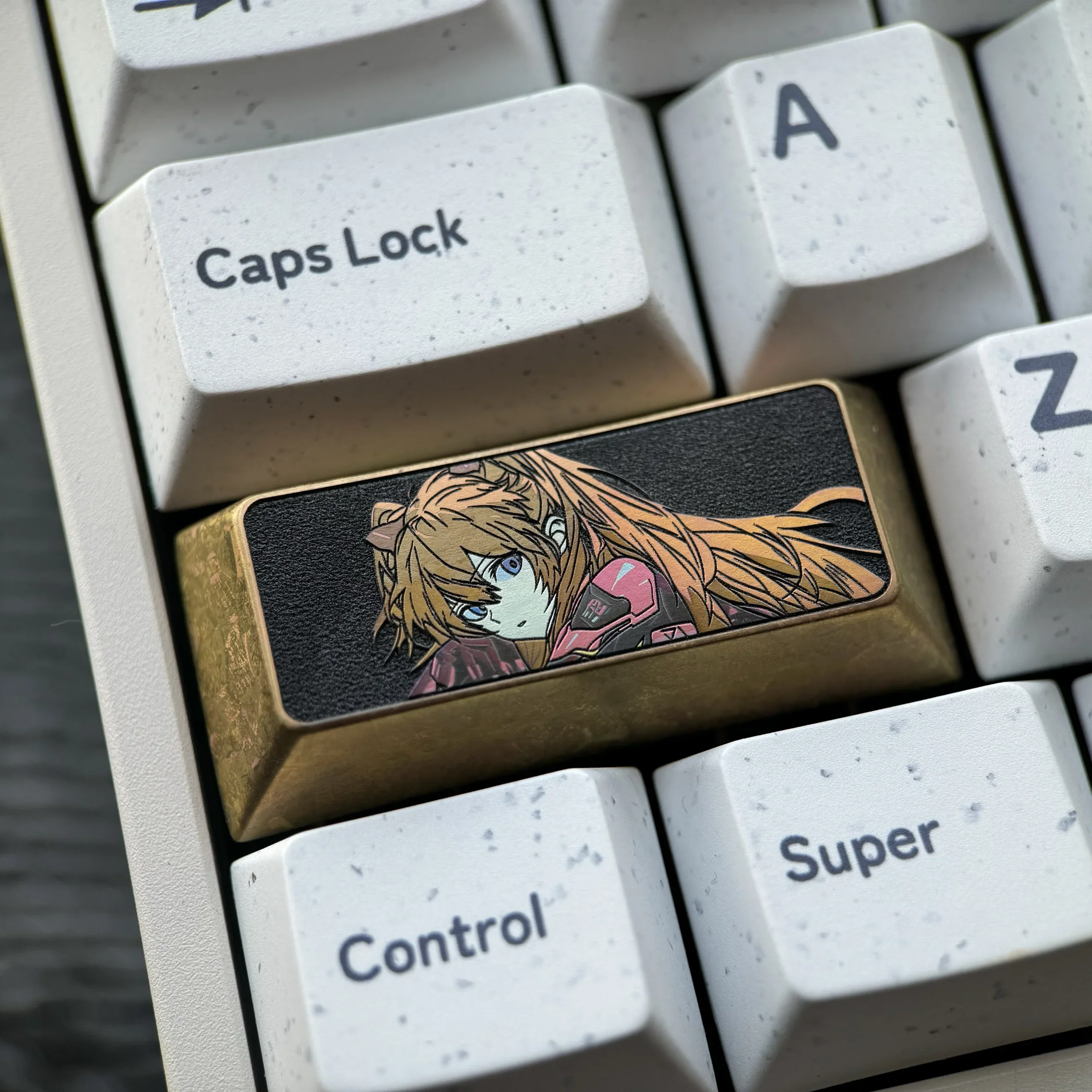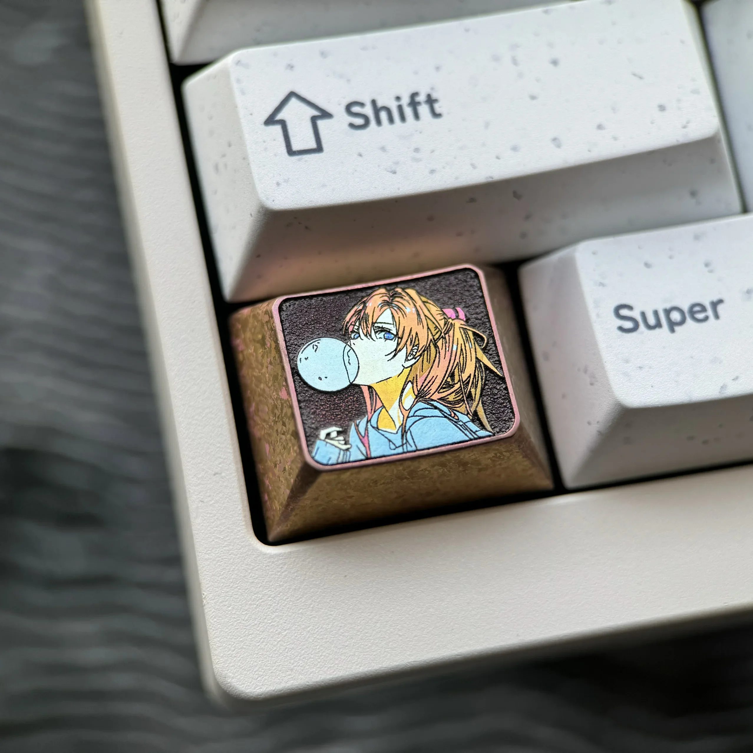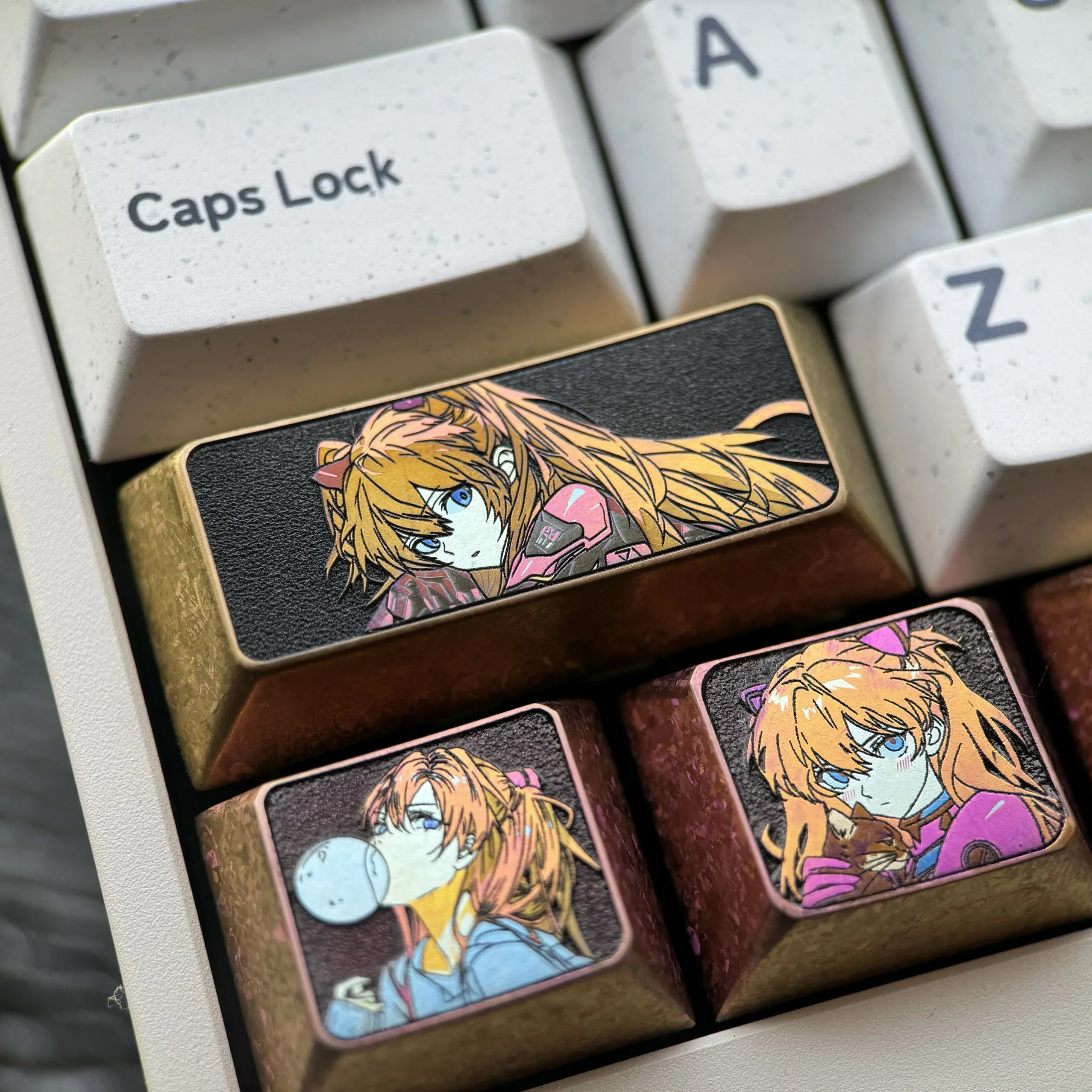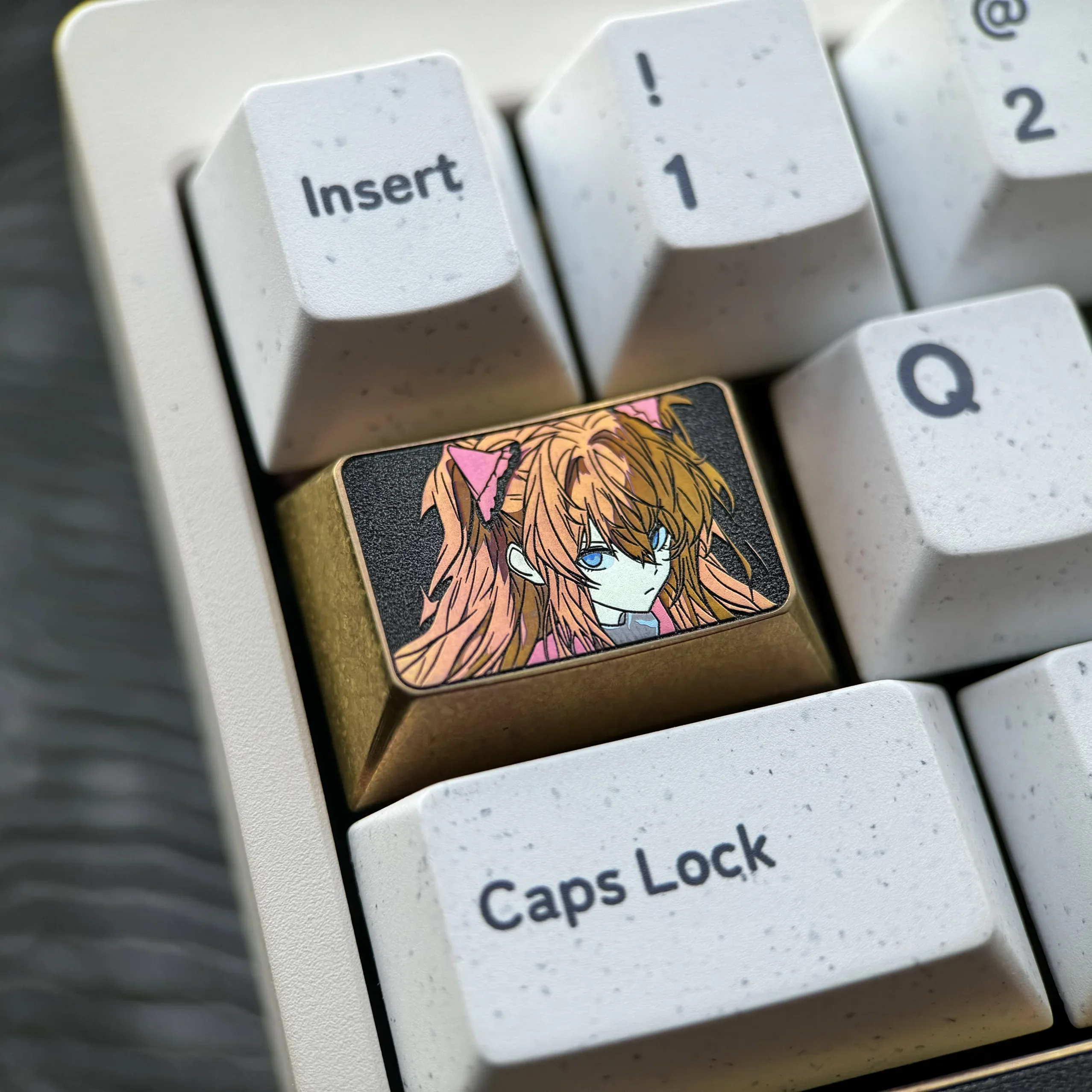 Teclas con tema de Anime EVA Asuka, perfil de cereza, teclas de aleación de titanio para teclado mecánico para juegos con llave ESC 1U, accesorios creativos