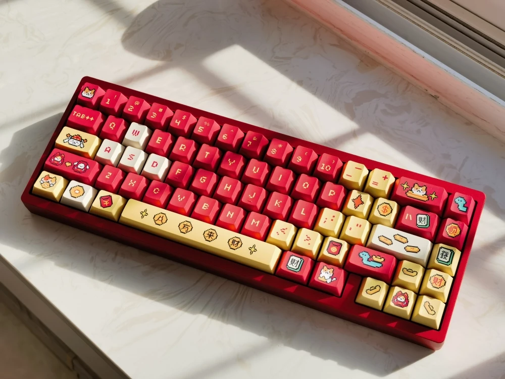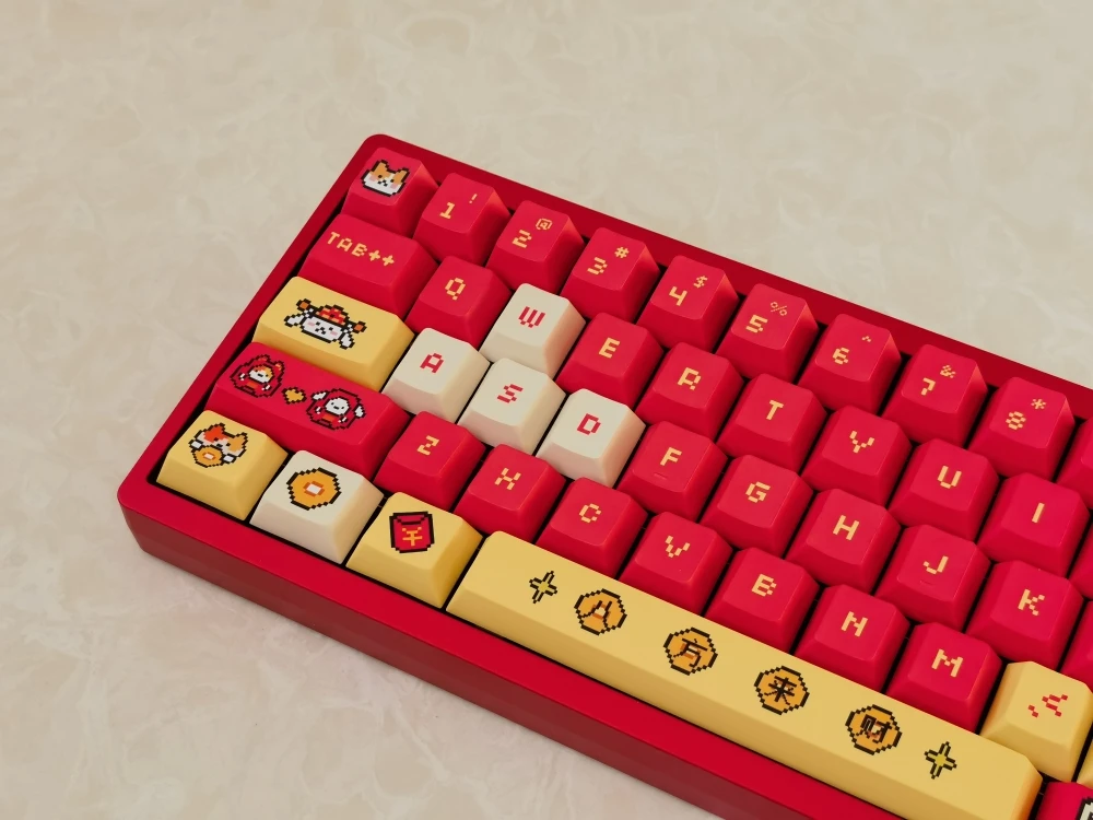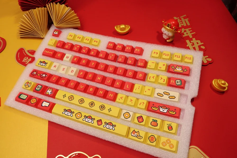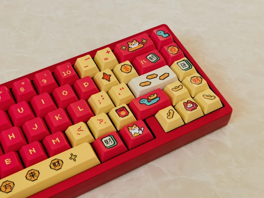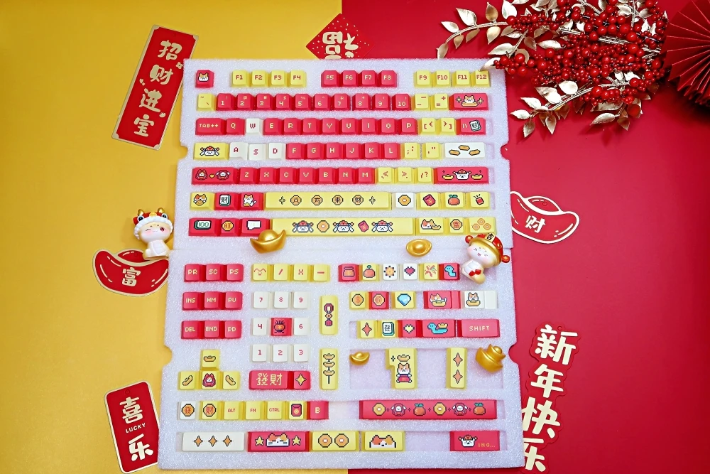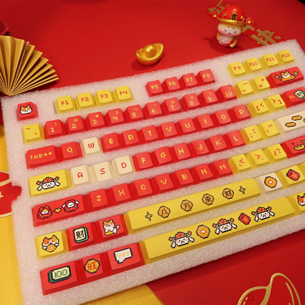 Teclas temáticas de Año Nuevo Chino, perfil de cereza, tinte sumergido, 142 teclas Joyous para interruptores Mx, teclado mecánico