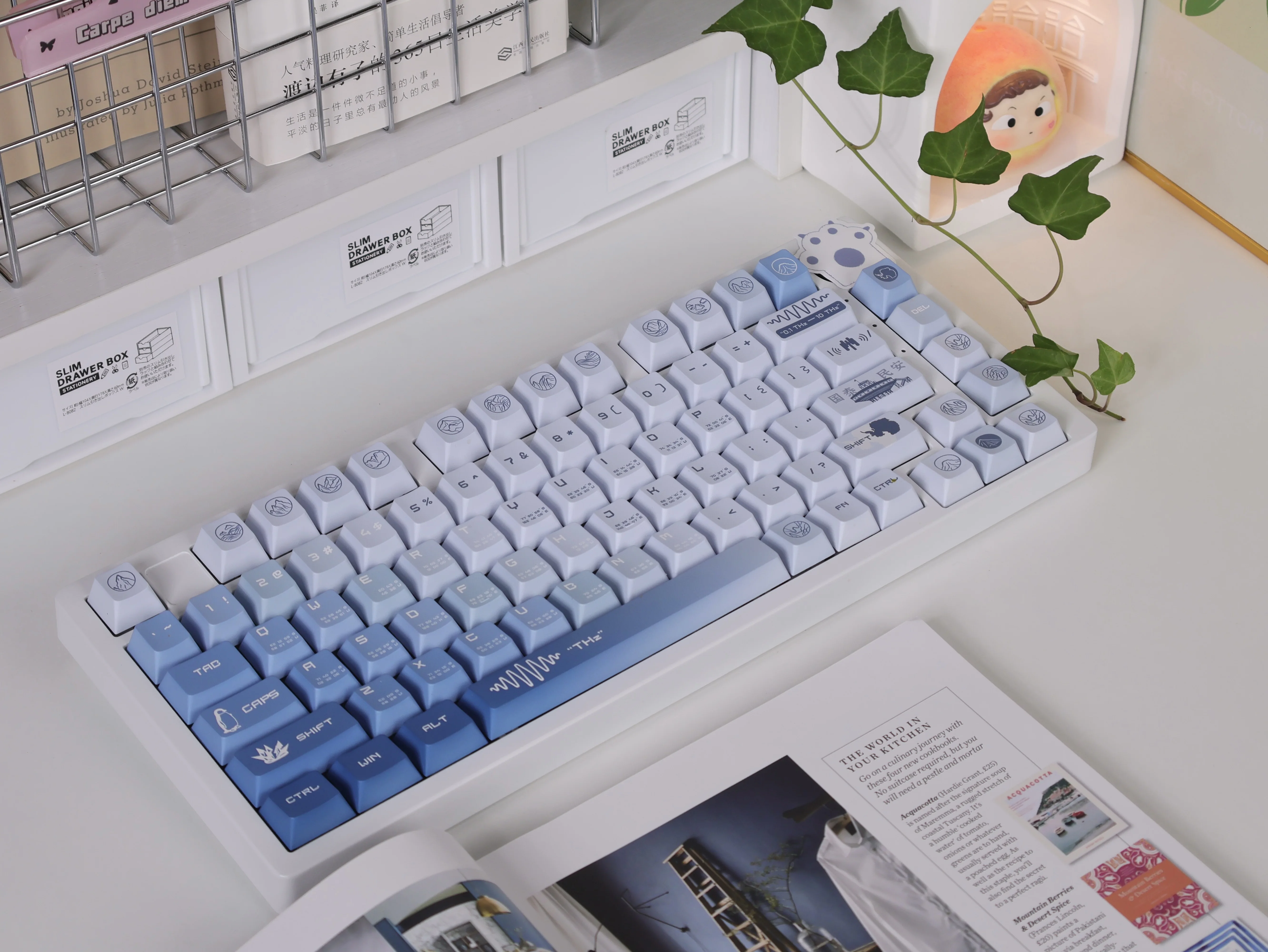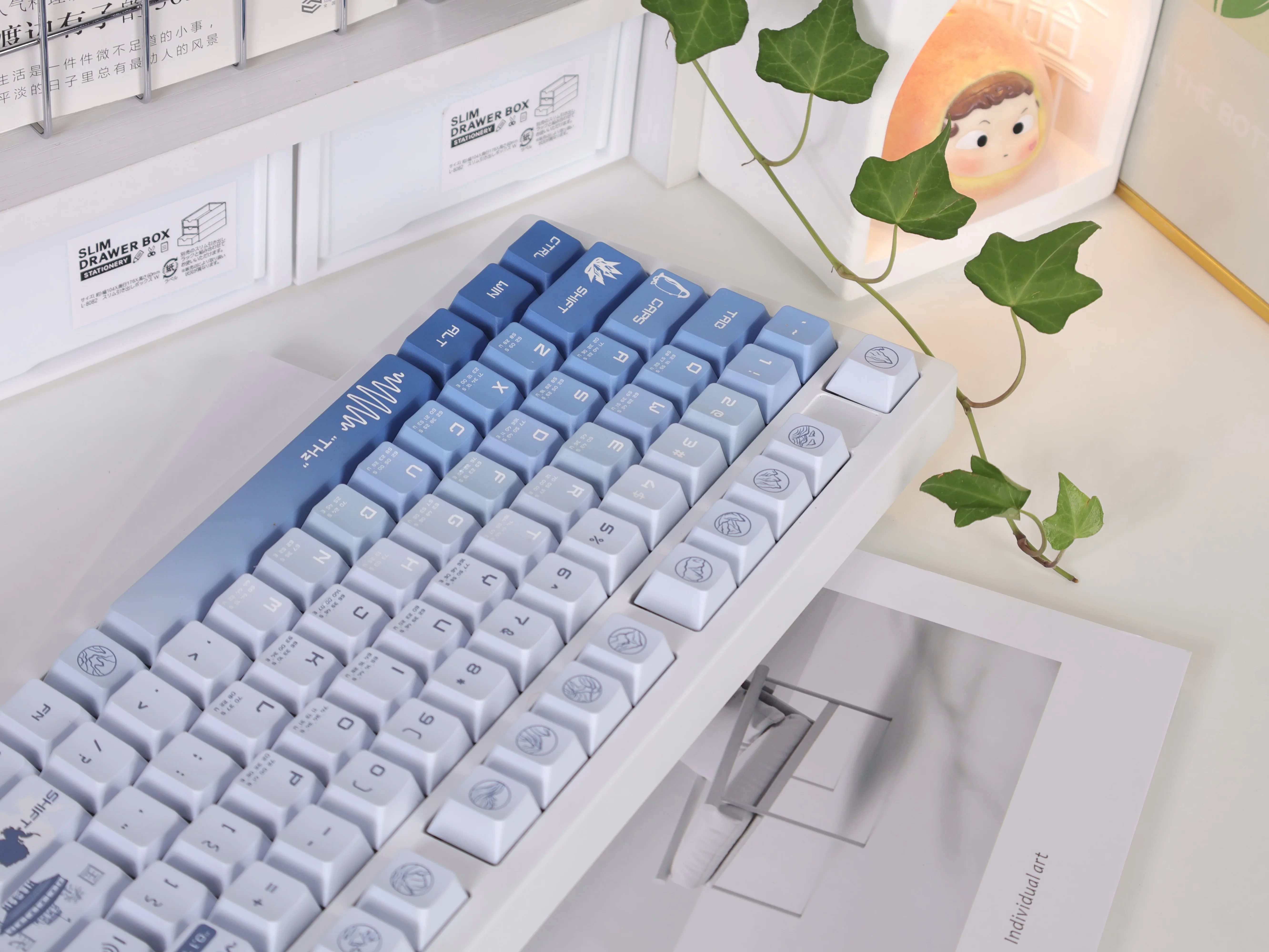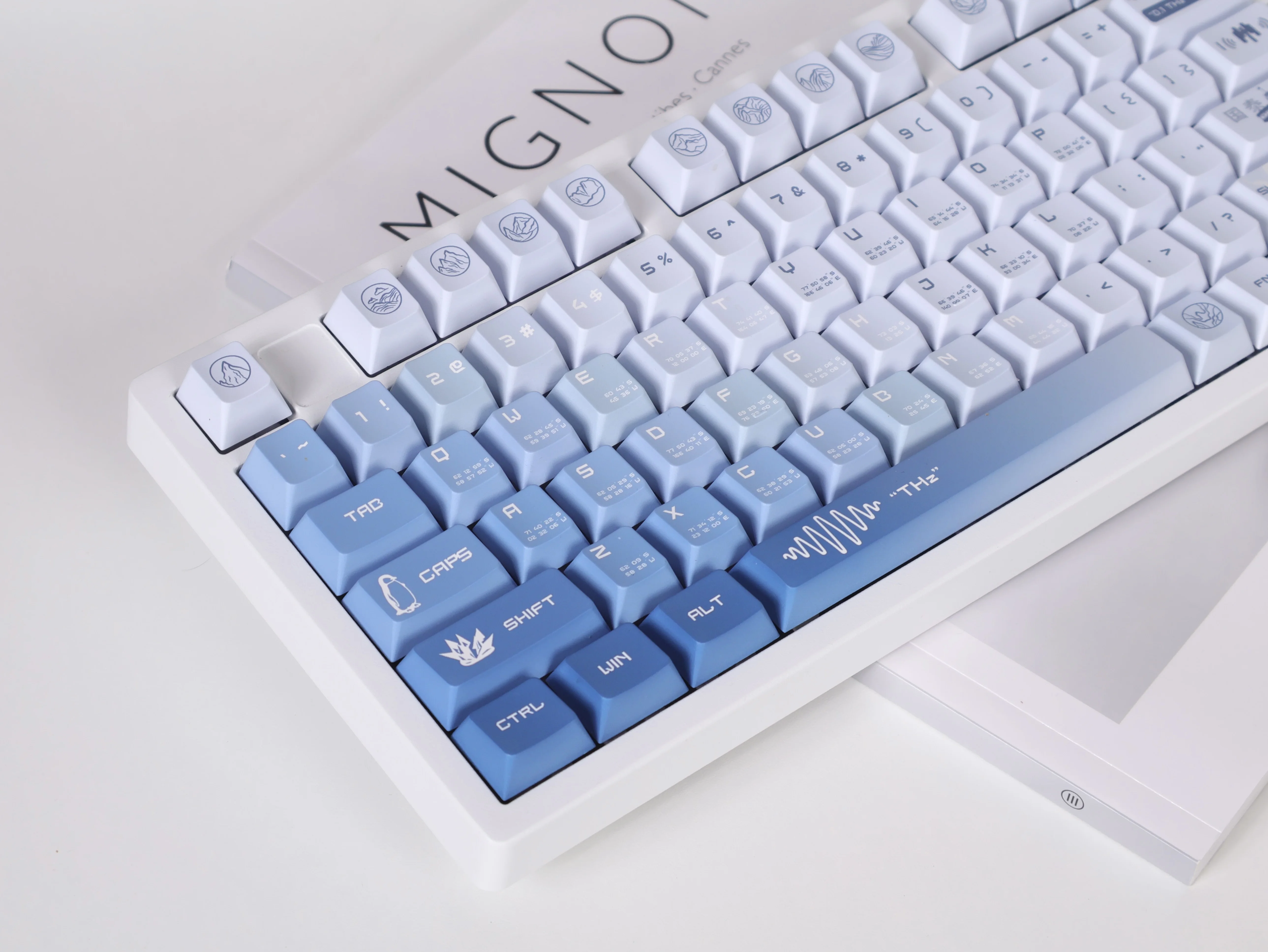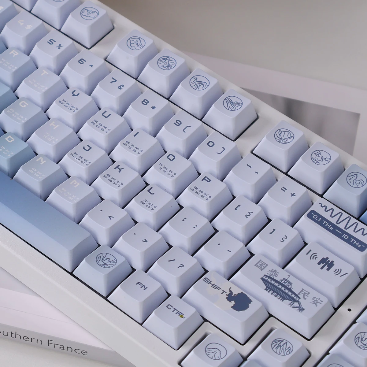 Teclas con tema de Audio antártico, 152 teclas, PBT grueso, teclas de sublimación de cinco lados, perfil de cereza, tapas de teclado con gradiente azul