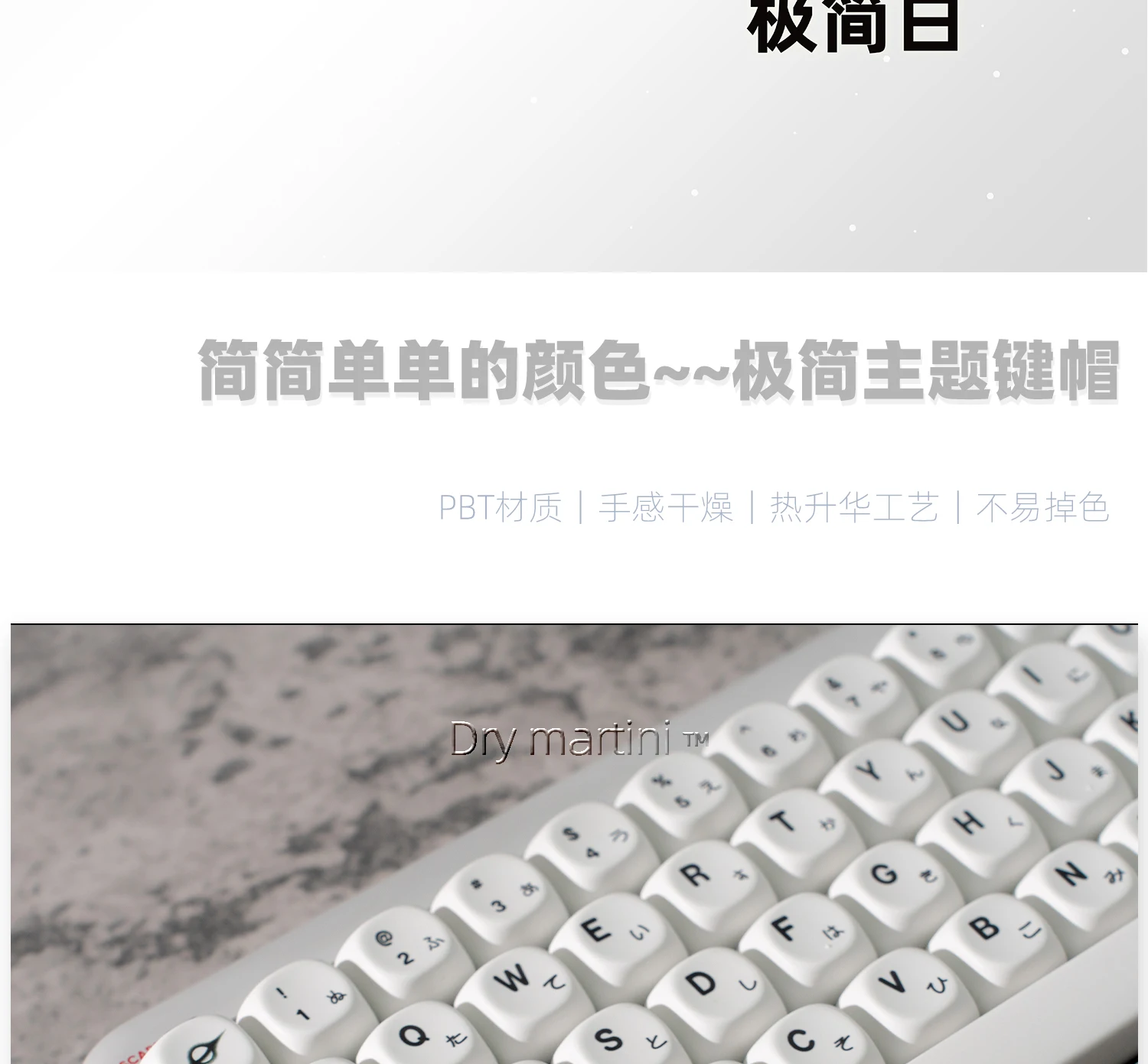 Comprar Teclas con tema blanco minimalista, perfil MO, sublimación de calor PBT, teclas radicas apanesas personalizadas para teclados 61/68/75/87/108