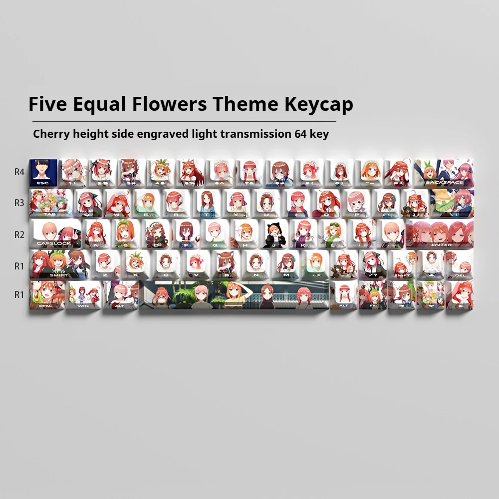 Teclas con tema de cinco flores iguales de Anime, teclas de sublimación de tinte con perfil de cereza PBT para Rs8 ATK Rs6 Ultra Ace68 Mad 60he Keyboarad