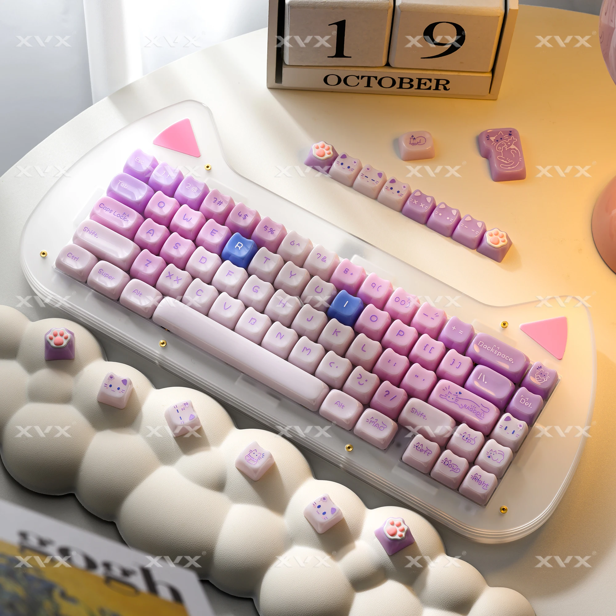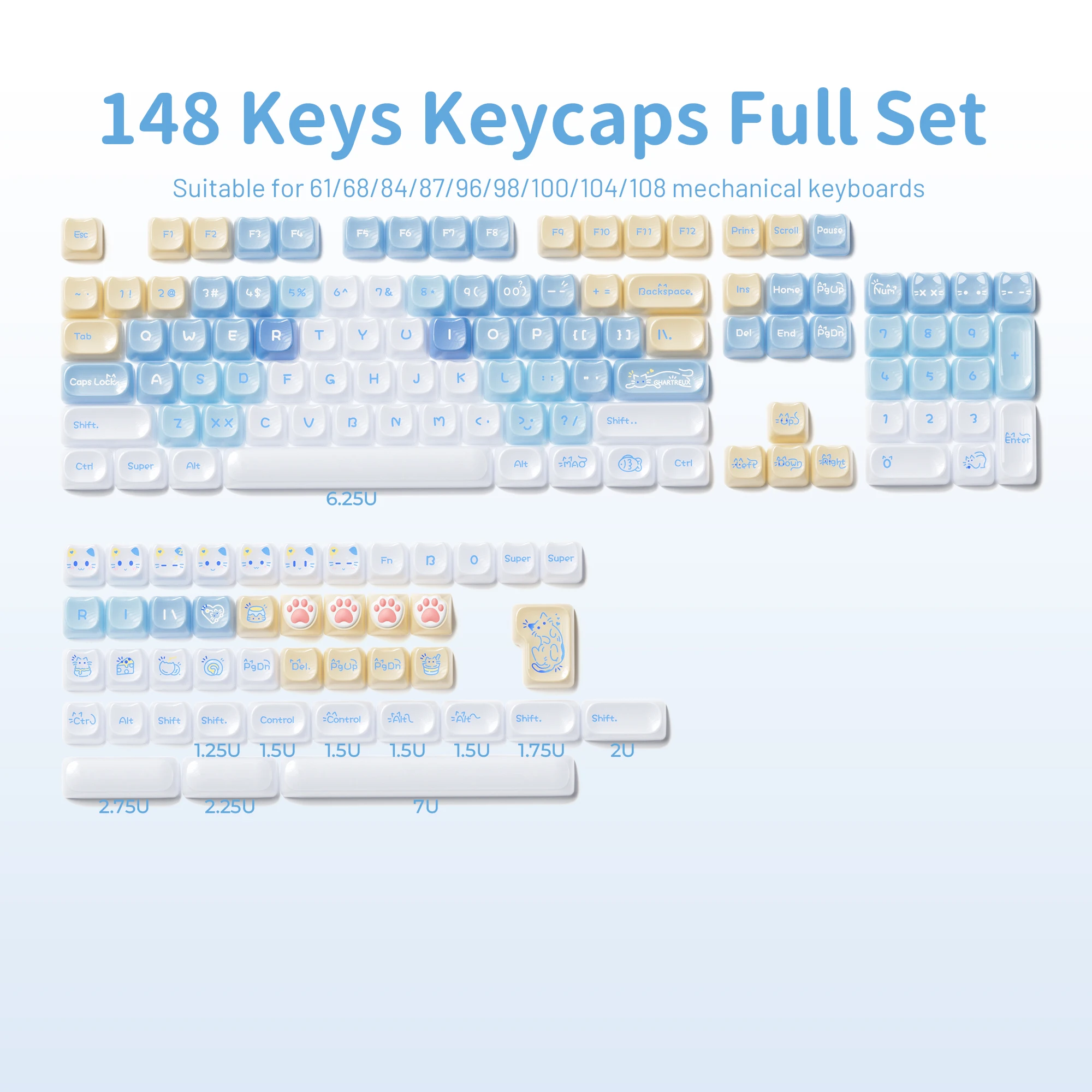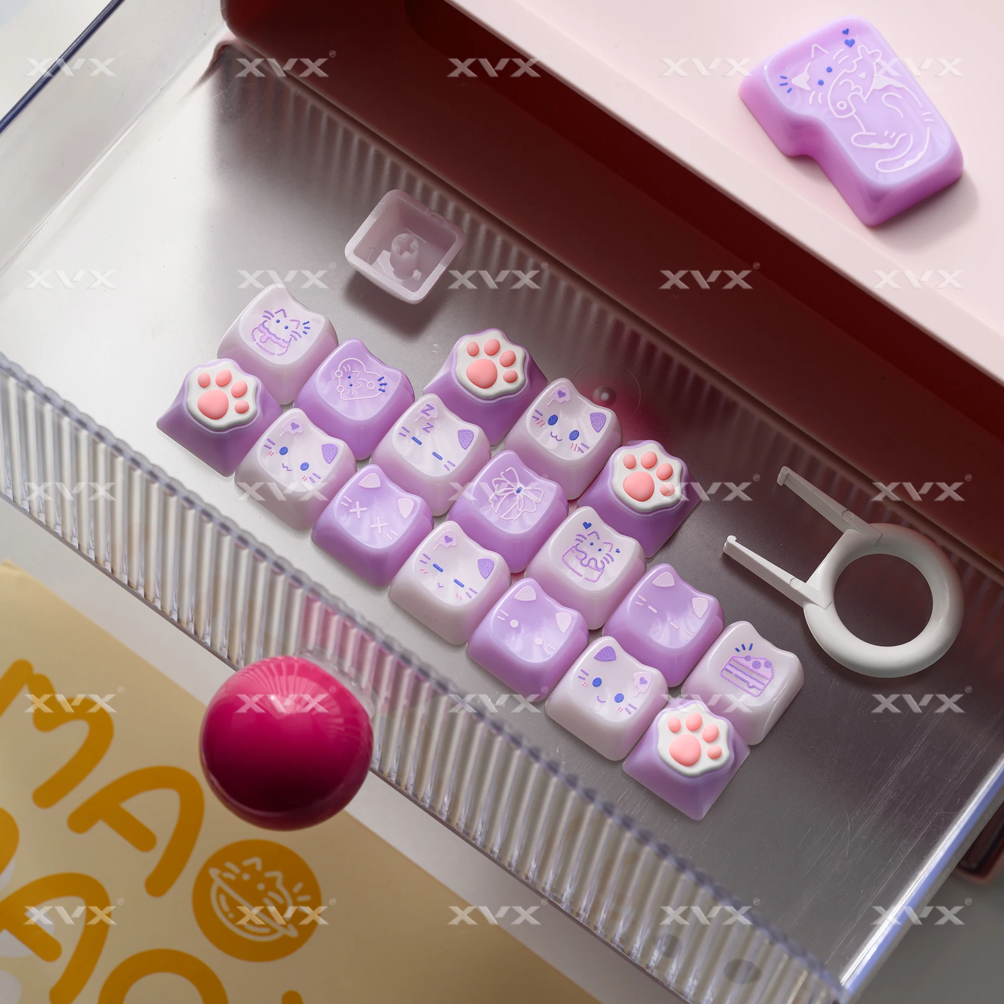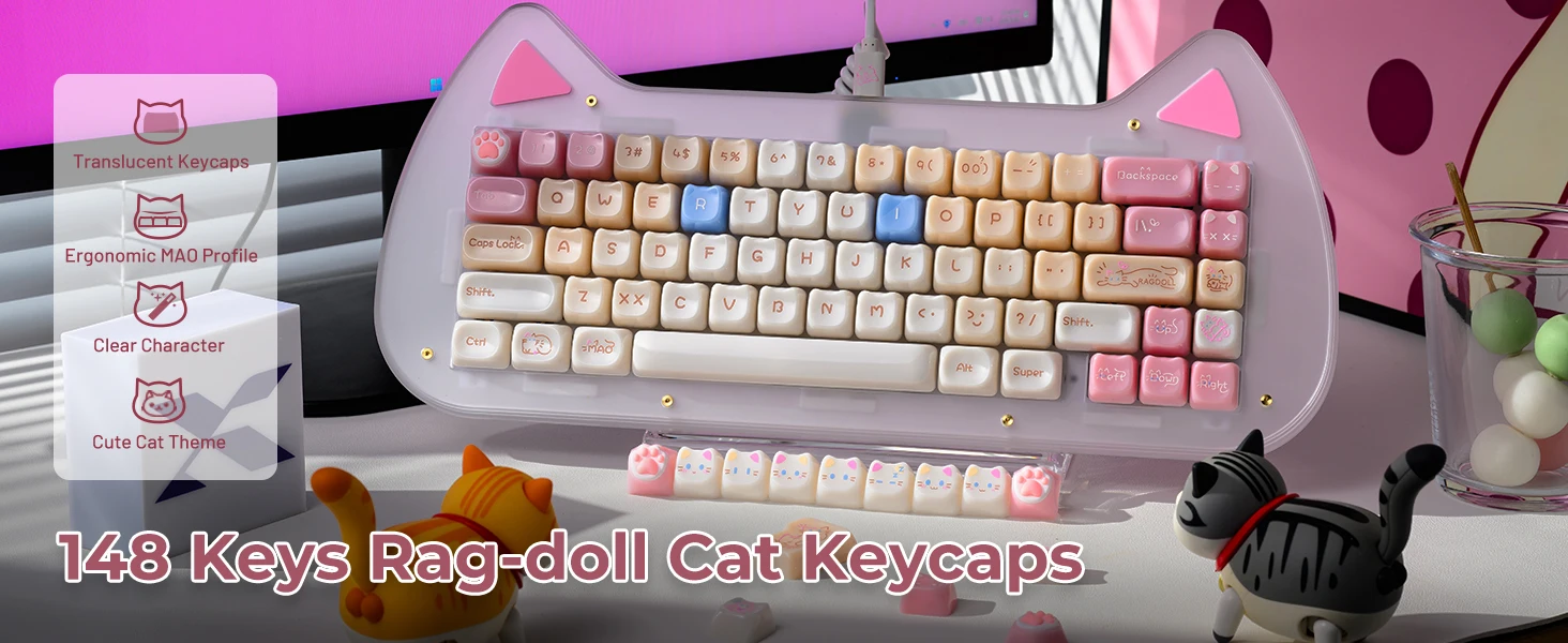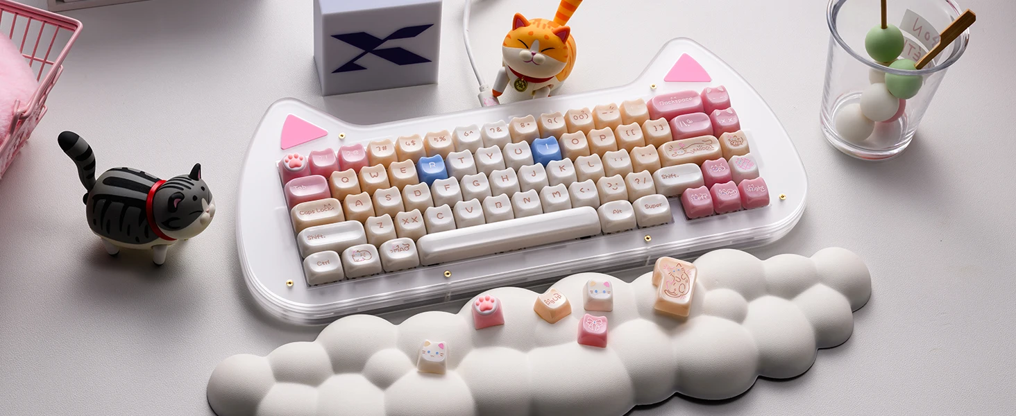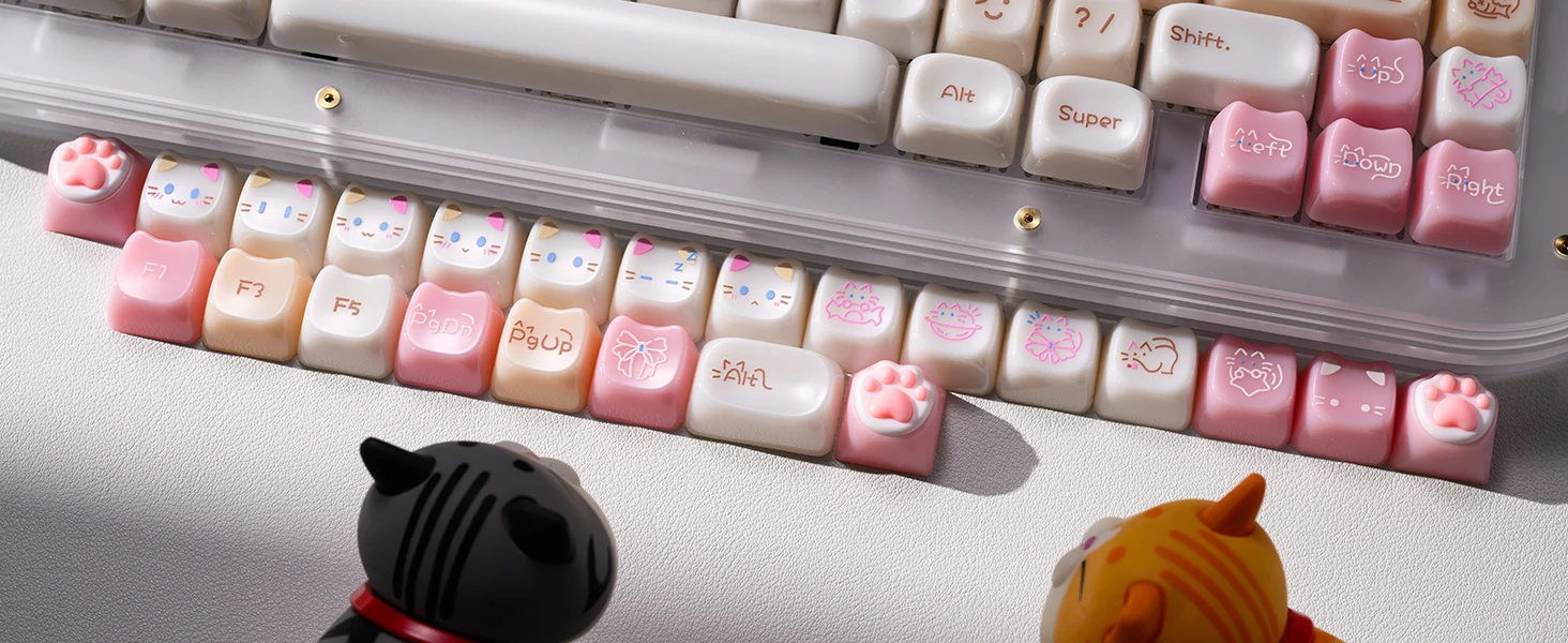【Teclas de jade】 Estas lindas teclas de gato están diseñadas con colores únicos.Tan hermosa como el jade, cada pulsación de tecla se siente como acariciar porcelana delicada, dando una sensación de muy alta clase, profundamente amada por muchos entusiastas del bricolaje de teclados.
