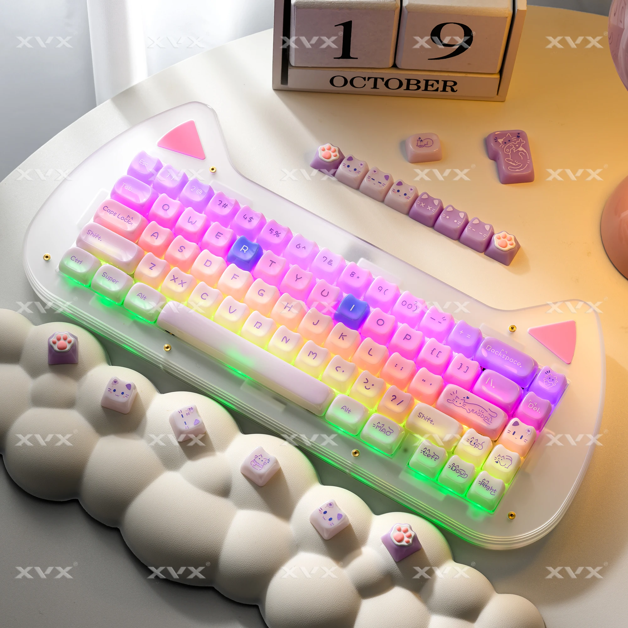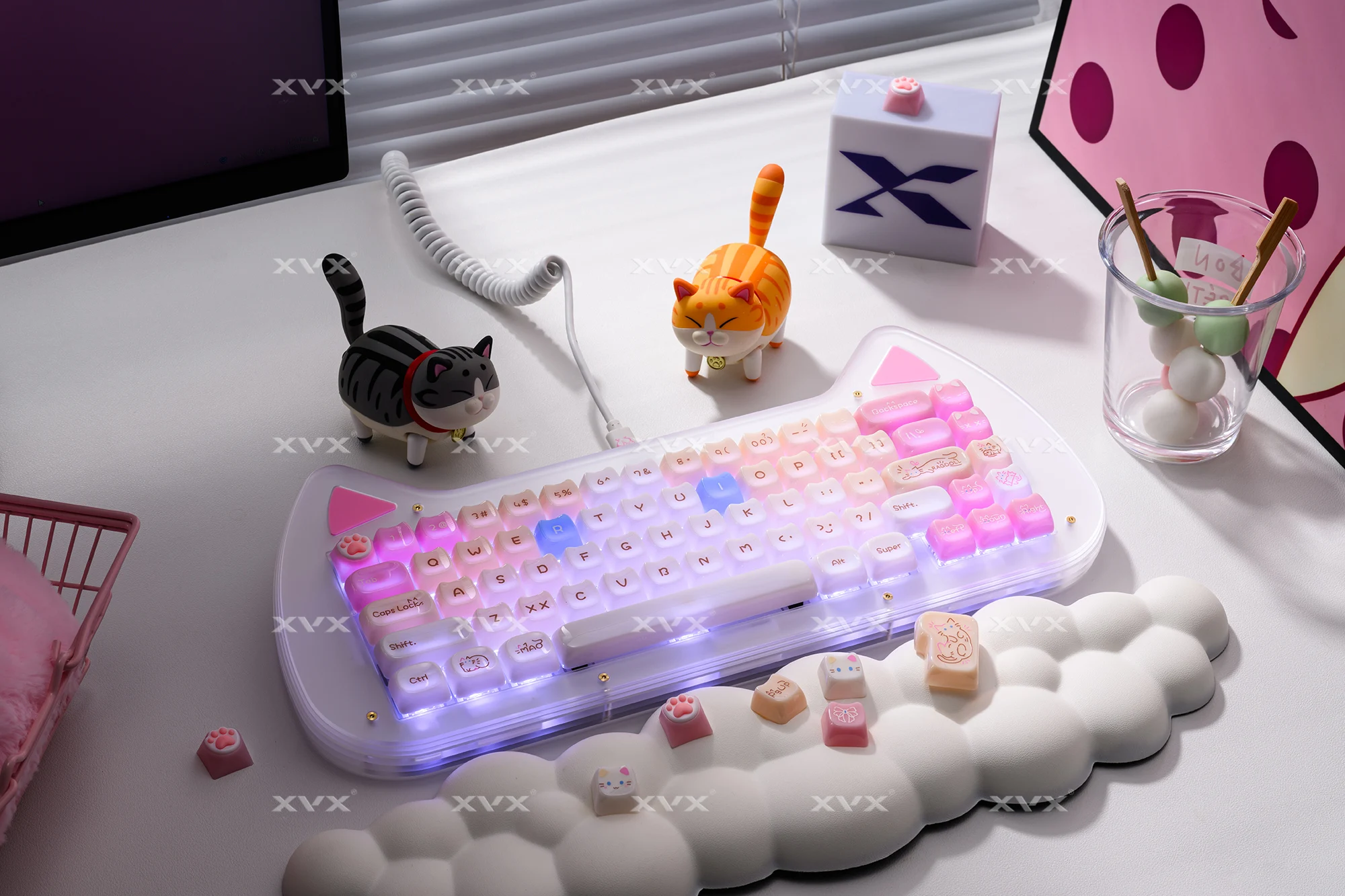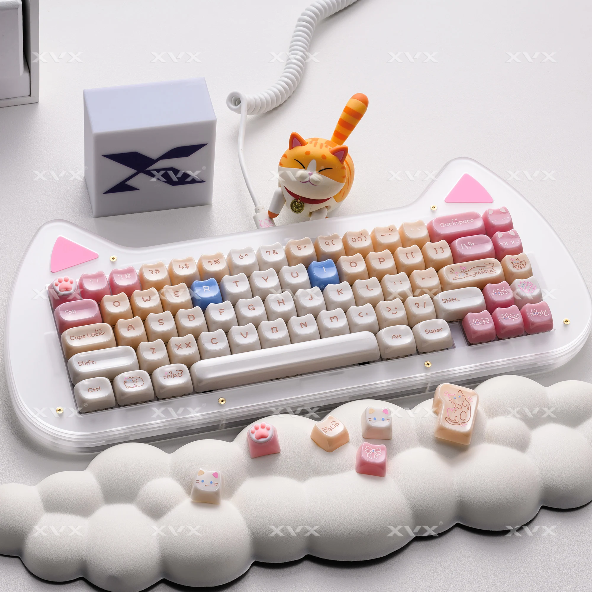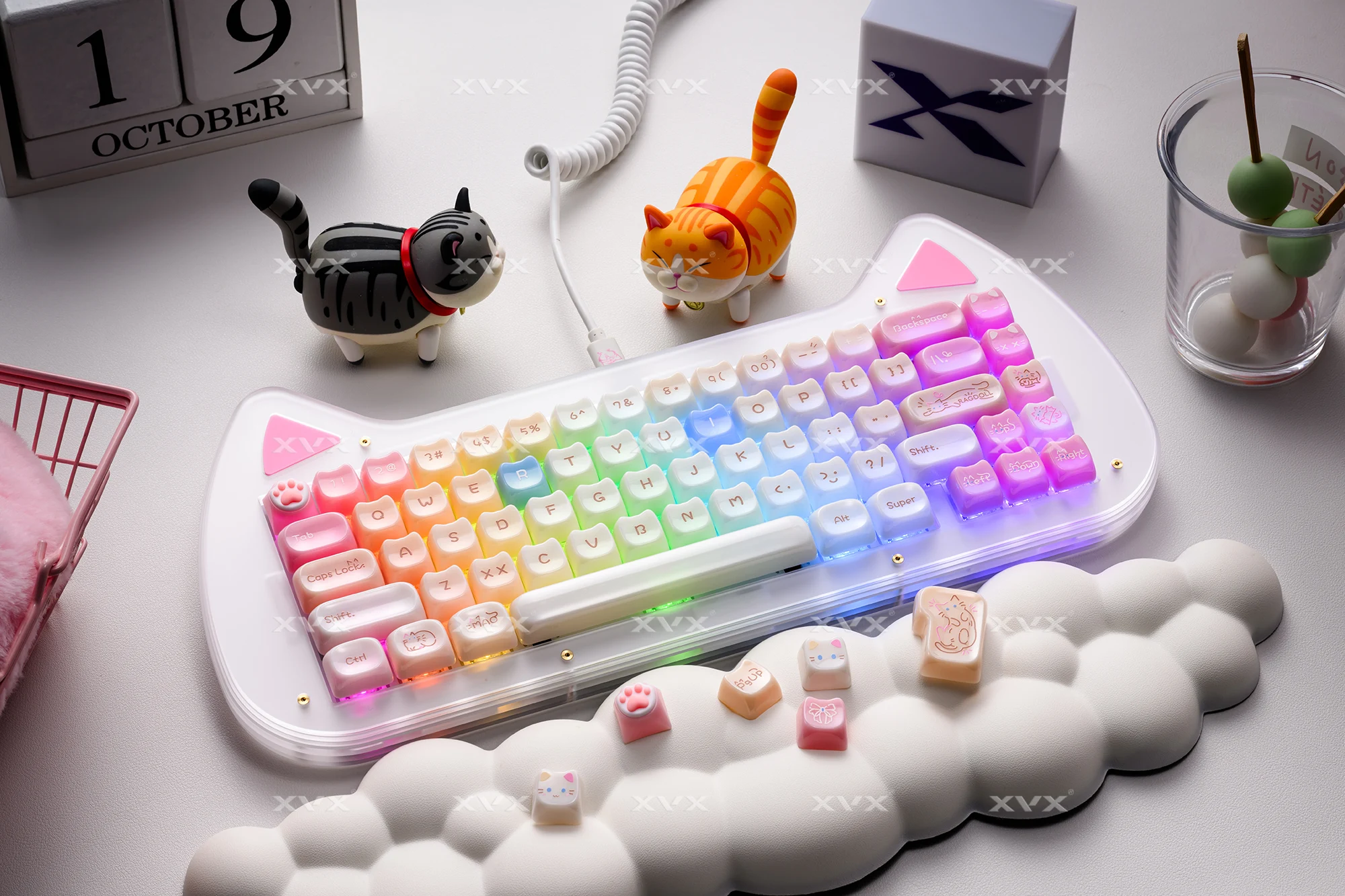 【Teclas de jade】 Estas lindas teclas de gato están diseñadas con colores únicos.Tan hermosa como el jade, cada pulsación de tecla se siente como acariciar porcelana delicada, dando una sensación de muy alta clase, profundamente amada por muchos entusiastas del bricolaje de teclados.