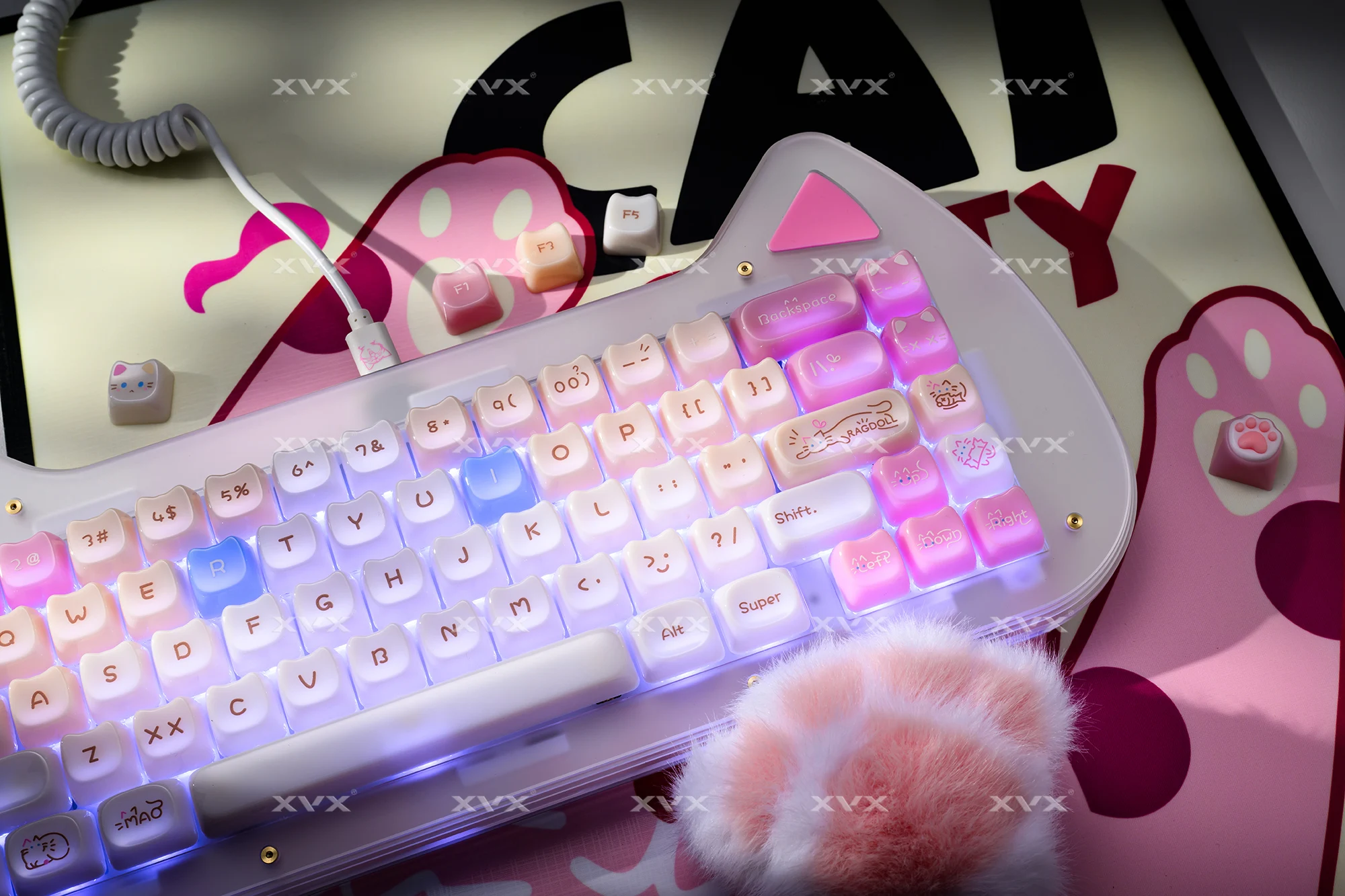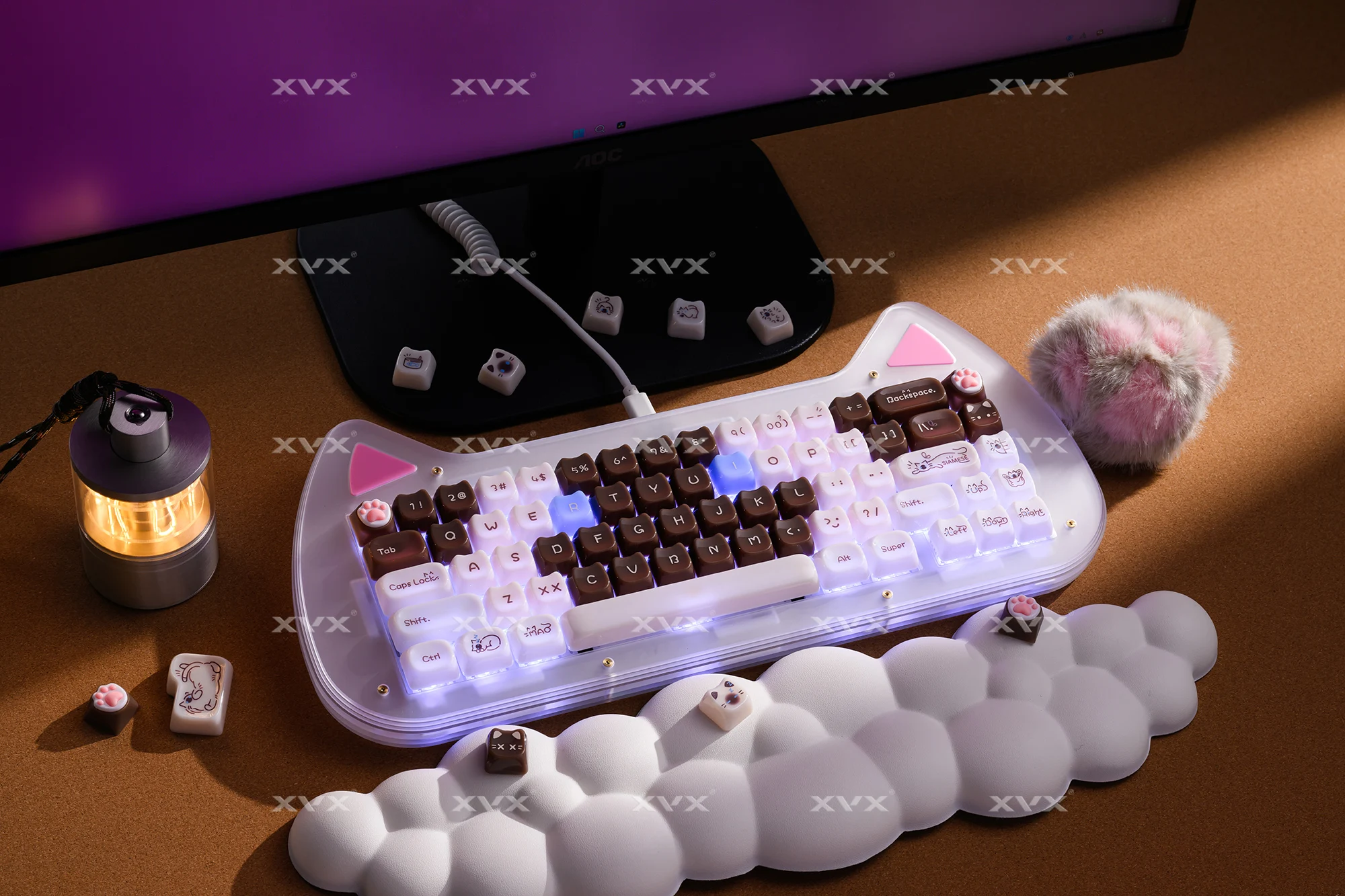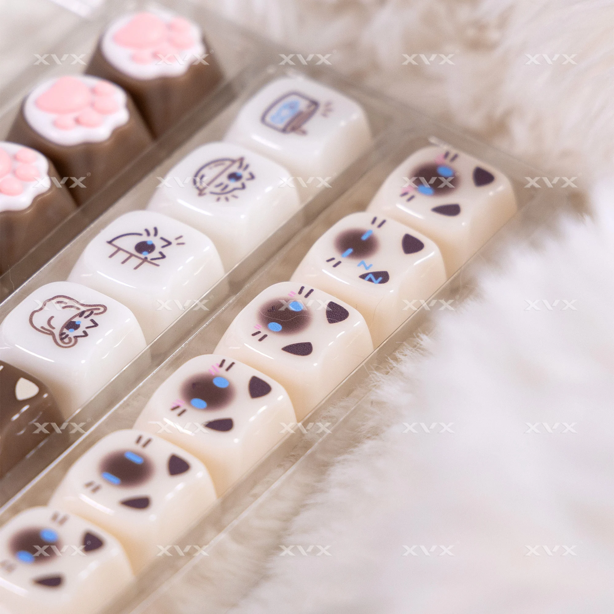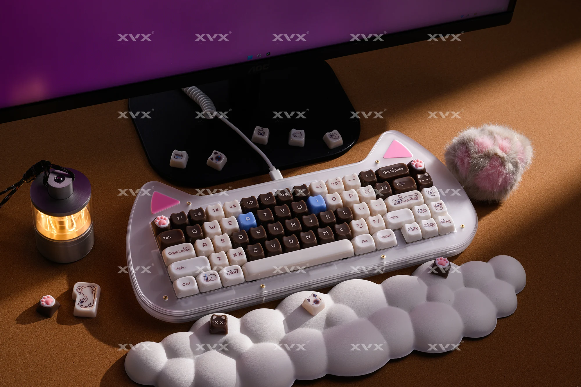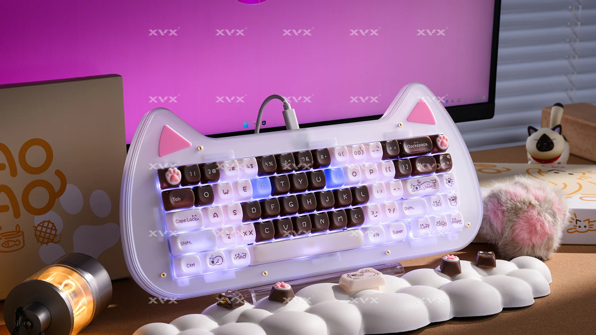 【Teclas de jade】 Estas lindas teclas de gato están diseñadas con colores únicos.Tan hermosa como el jade, cada pulsación de tecla se siente como acariciar porcelana delicada, dando una sensación de muy alta clase, profundamente amada por muchos entusiastas del bricolaje de teclados.
