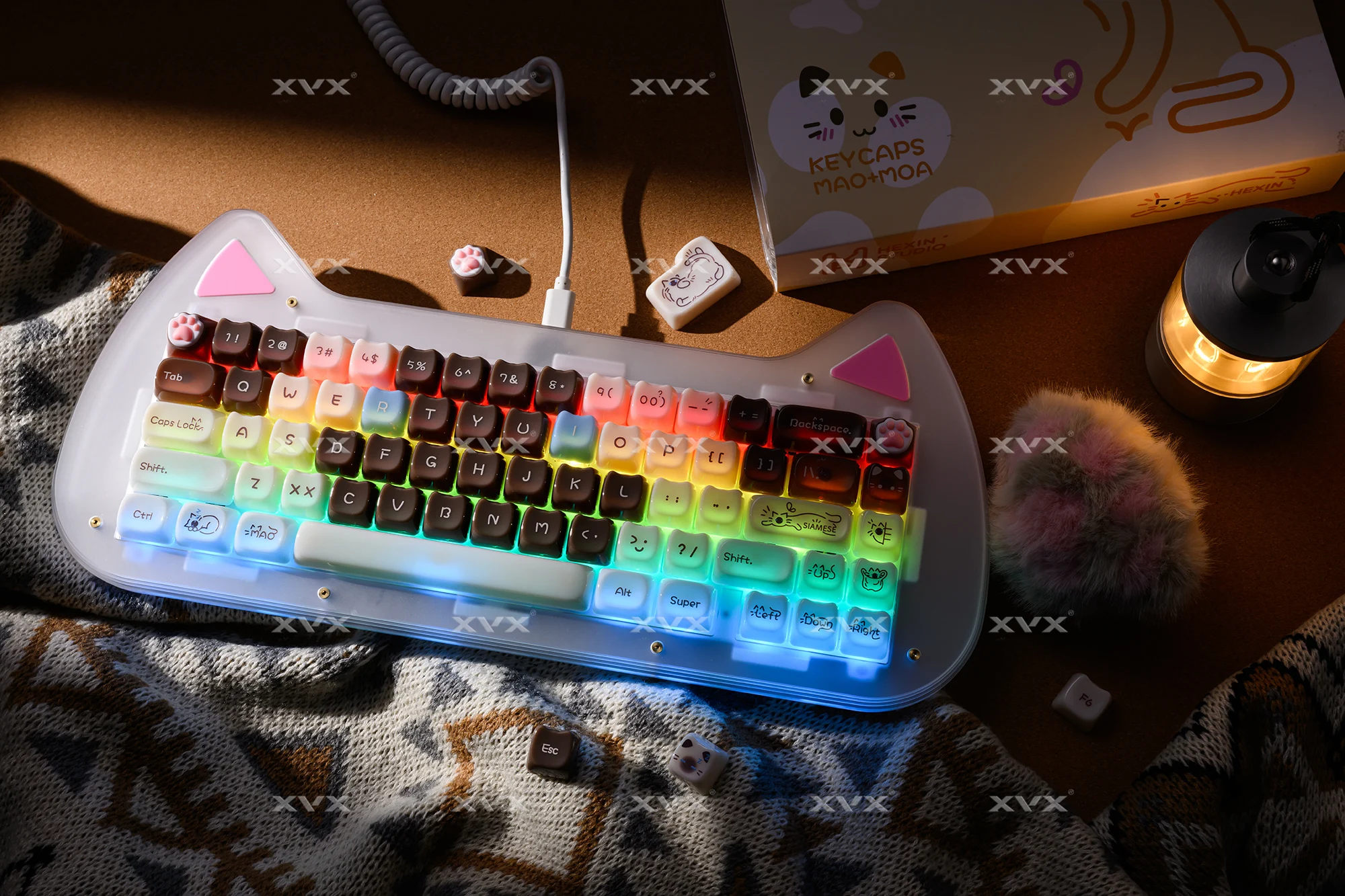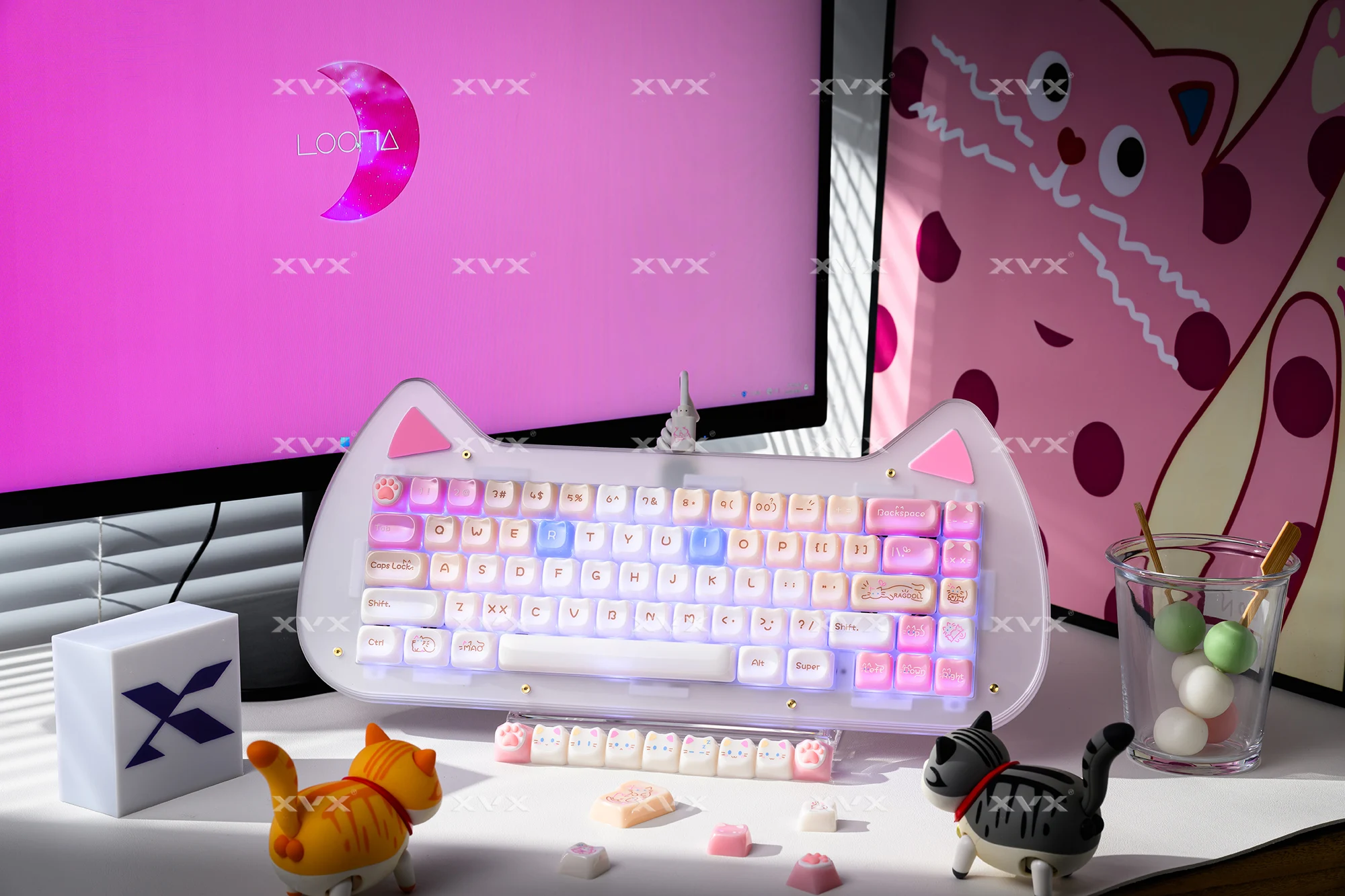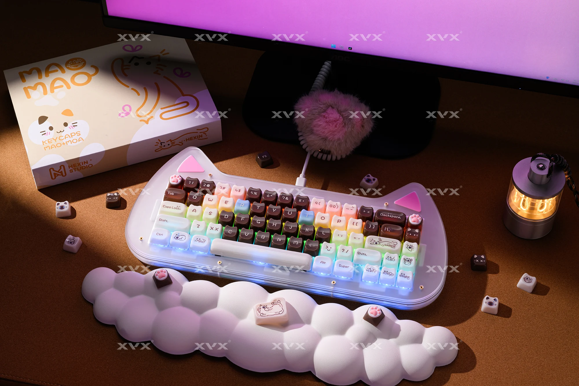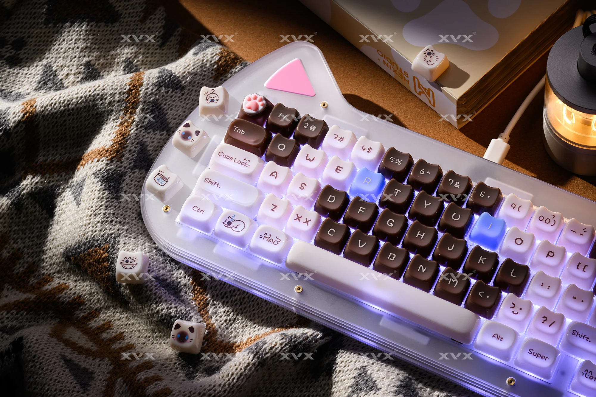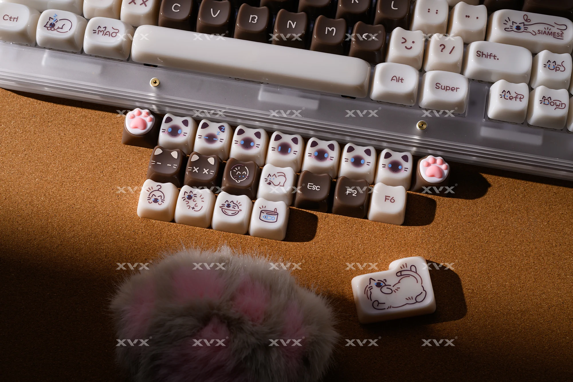 【Teclas de jade】 Estas lindas teclas de gato están diseñadas con colores únicos.Tan hermosa como el jade, cada pulsación de tecla se siente como acariciar porcelana delicada, dando una sensación de muy alta clase, profundamente amada por muchos entusiastas del bricolaje de teclados.