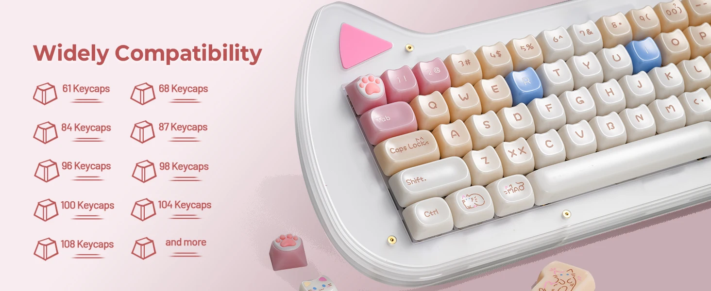 【Teclas de perfil MAO】 Las lindas teclas diseñadas con el perfil MAO y aumentan la superficie de contacto entre la tecla y los dedos, no se sentirá fatigado al usarlo durante mucho tiempo durante el trabajo.