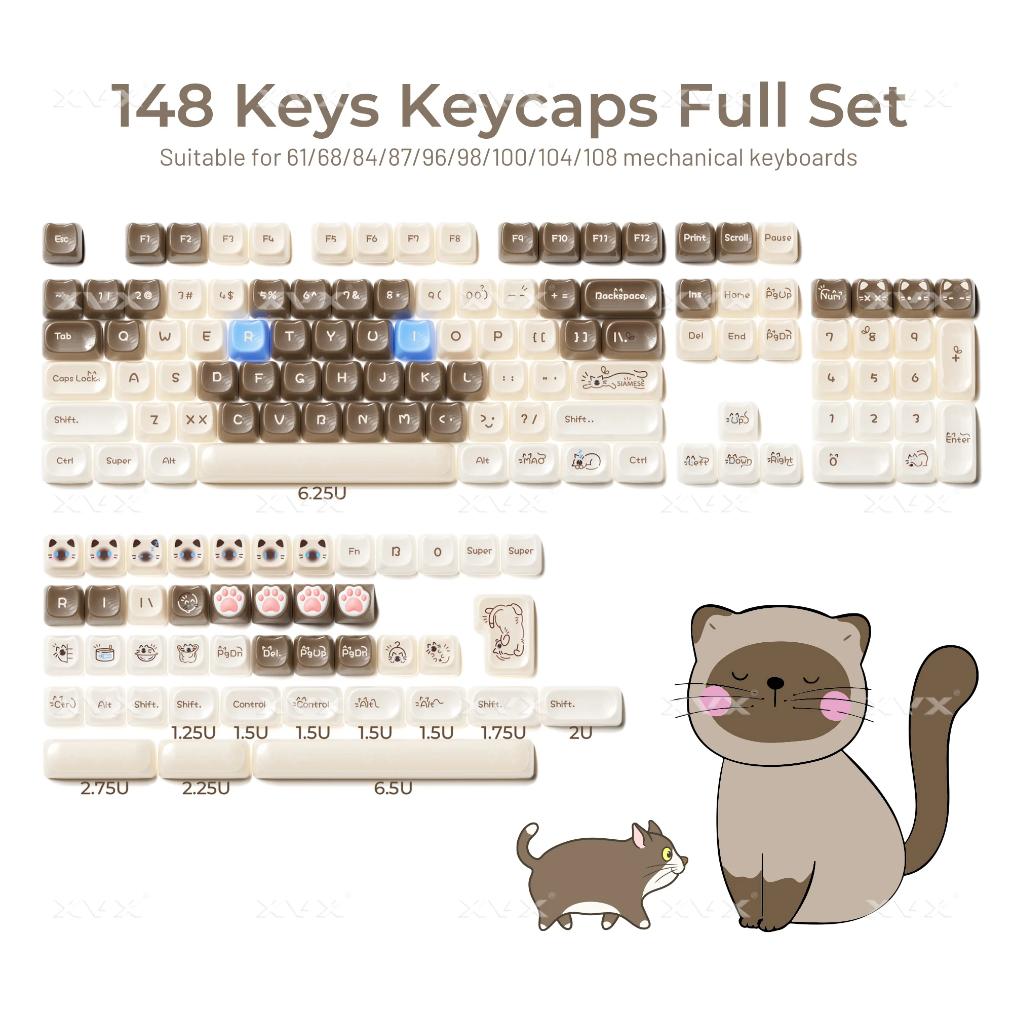 【Ampliamente compatible】 Las teclas pbt de 148 teclas se pueden usar para la mayoría de los teclados mecánicos Cherry MX Switch y cualquier tecla con interruptores "+", pueden adaptarse a teclados mecánicos 61/64/68/75/84/87/96/98/104/8". (SOLO TECLADO)