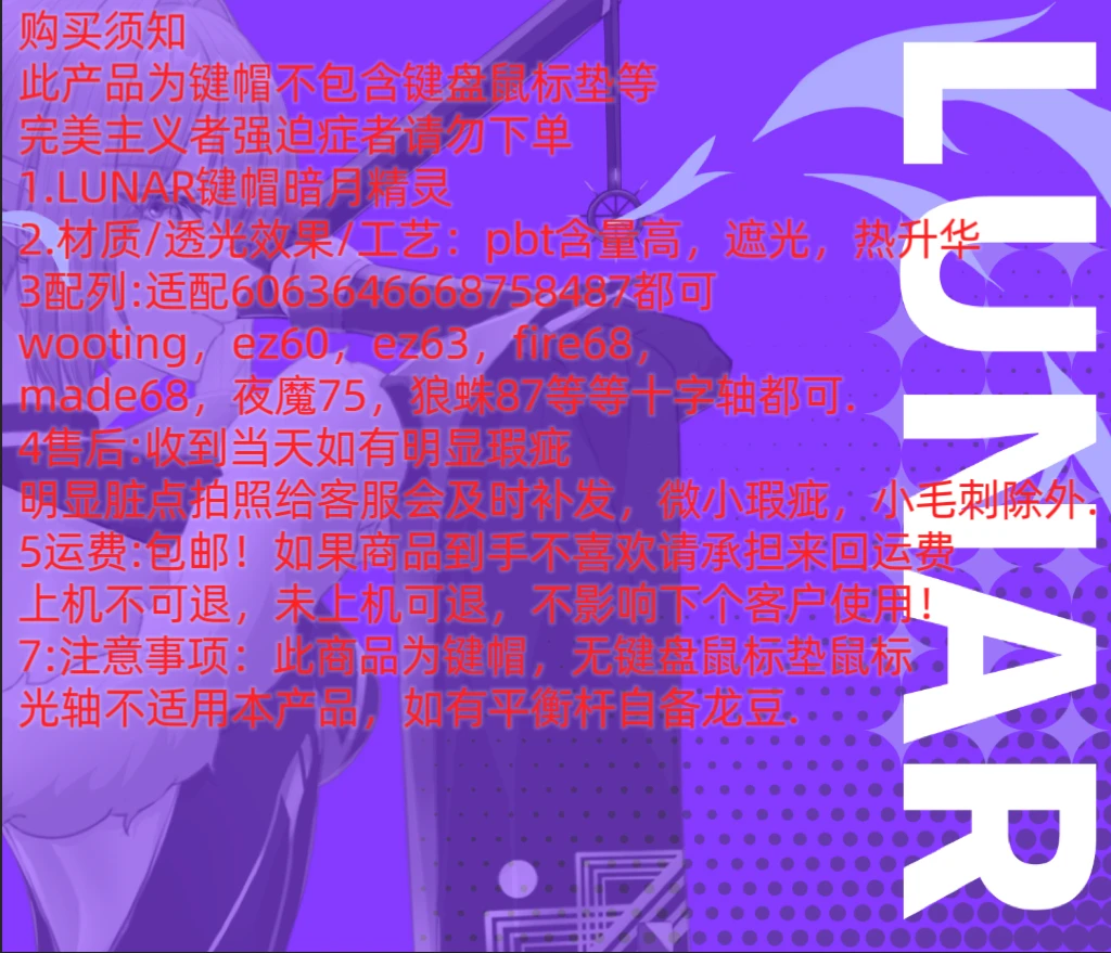 Comprar Teclas con tema Lunar de Anime, 87 teclas, teclas de Anime, PBT, perfil de cereza, Teclado mecánico Made68 Mad68 Wooting 60