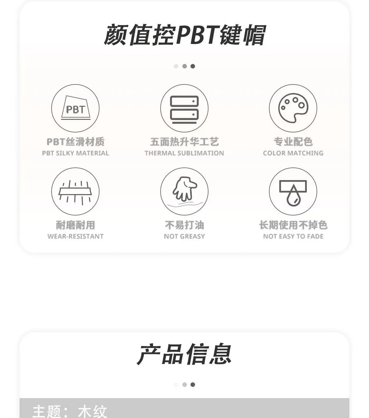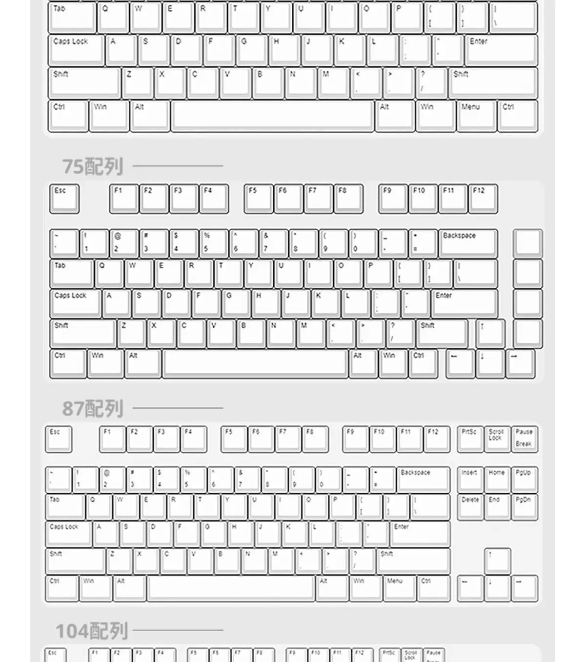 Teclas: 130 teclas, transmisión de luz lateral Altura: perfil de contraste Transmisión de luz: transmisión de luz con grabado lateral (adecuada para la posición de luz inferior o sin luz encendida) Material: PBT Proceso: sublimación de cinco caras Compatible:ANSI 100%,80%,60% 96,75%,65%