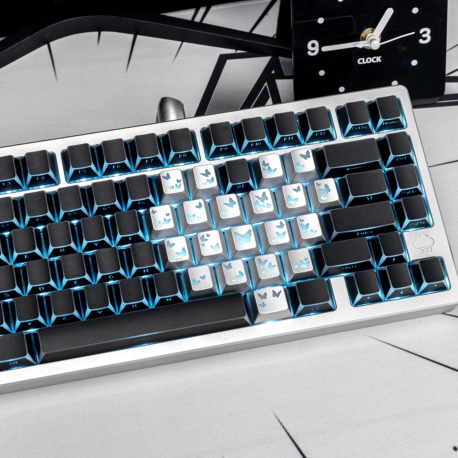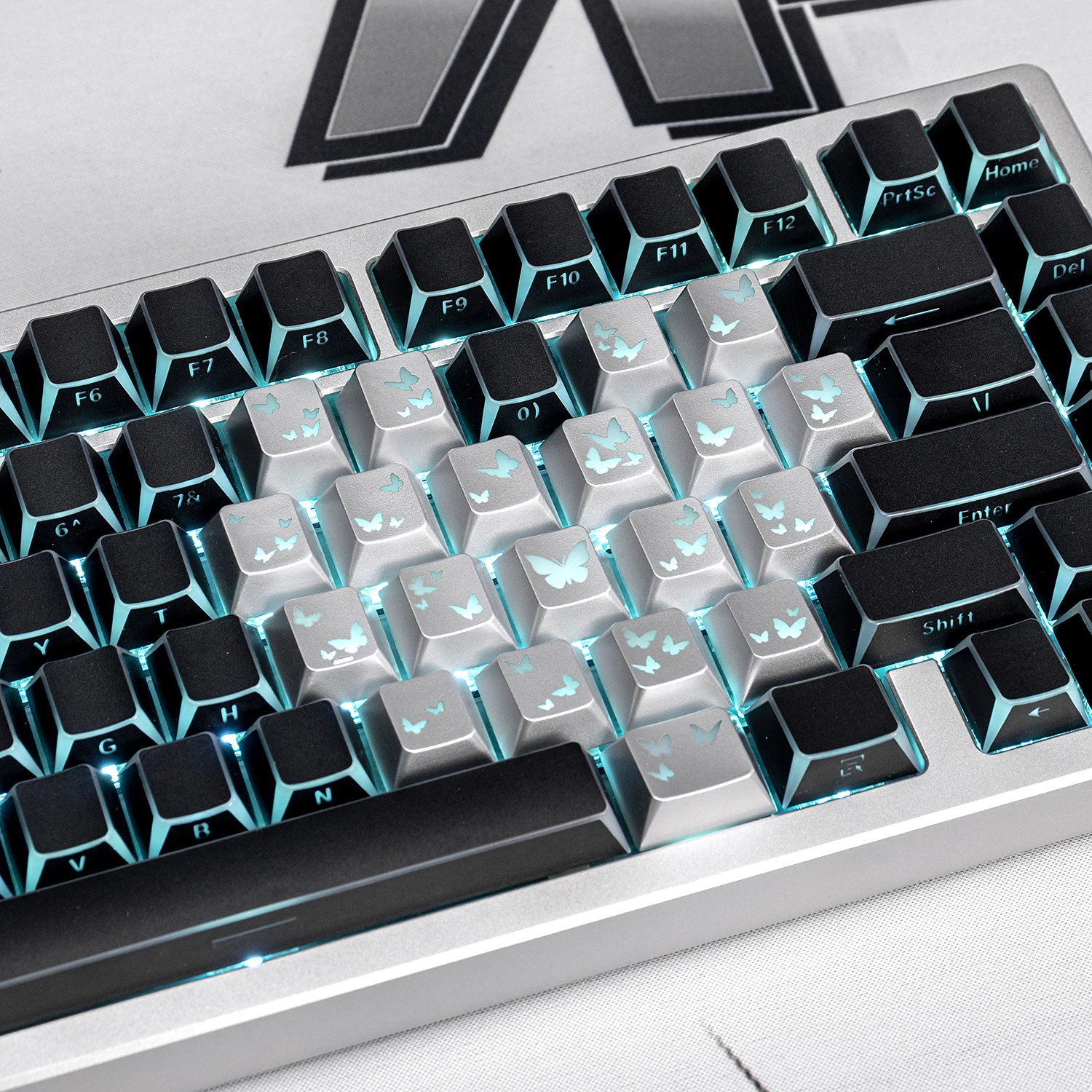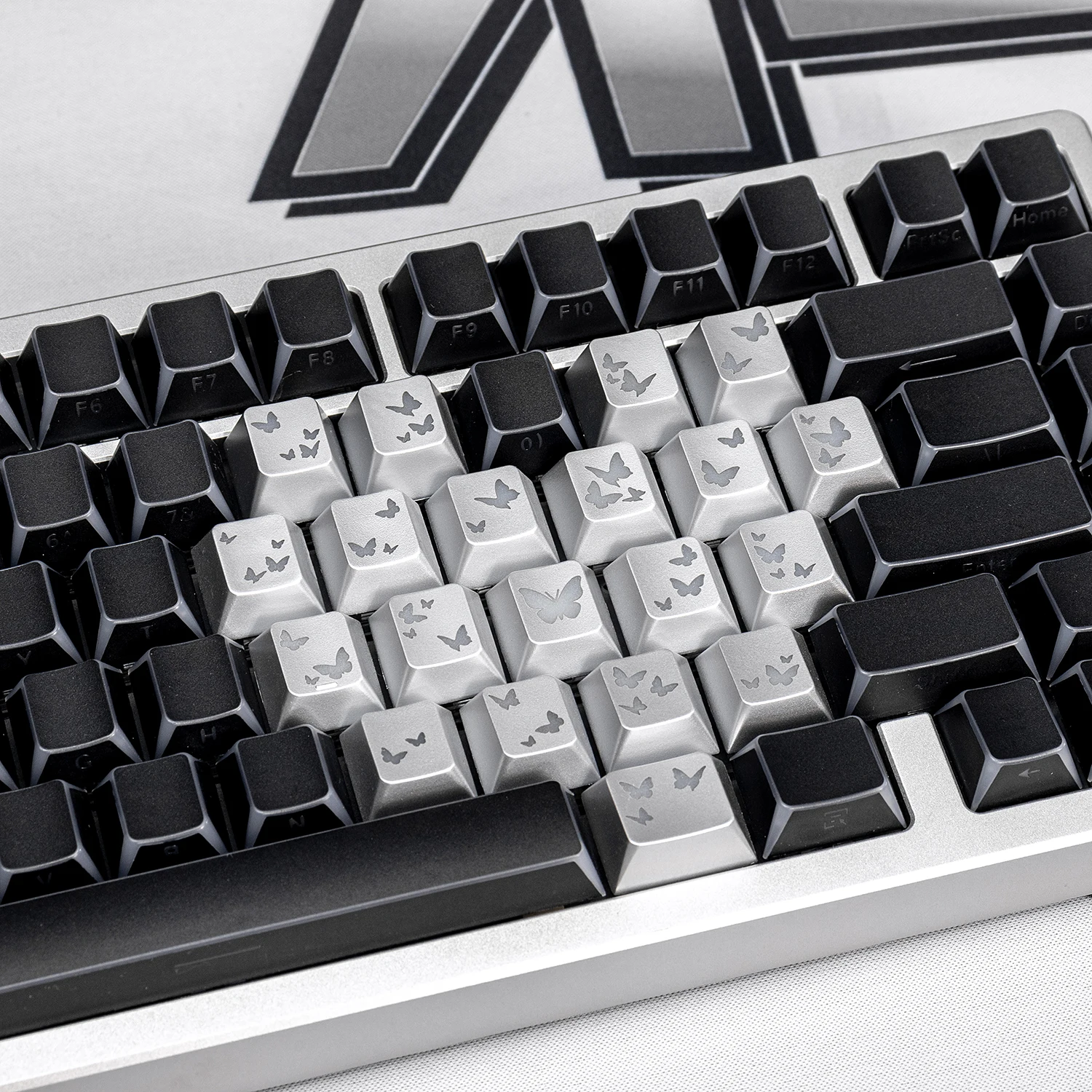 Teclas con temática sombreada negra, perfil de cereza PBT, teclado personalizado con forma de corazón y mariposa para juegos, regalo de teclado mecánico