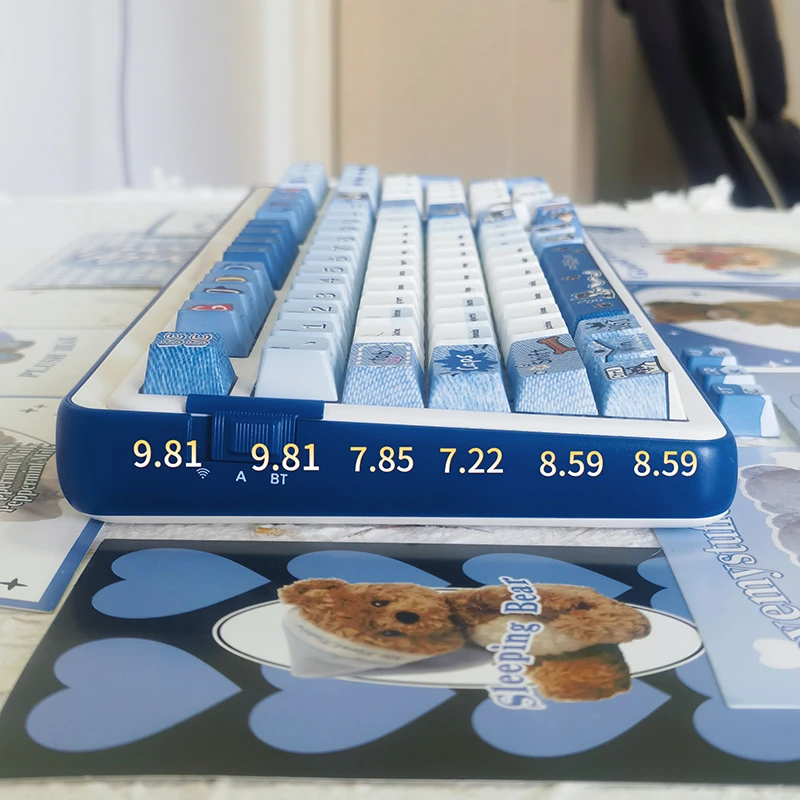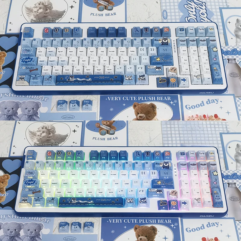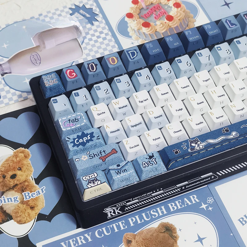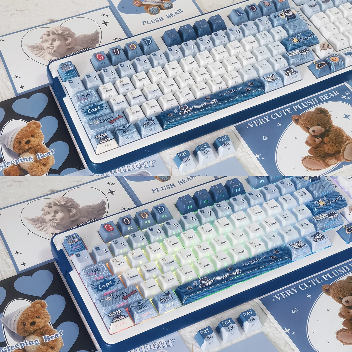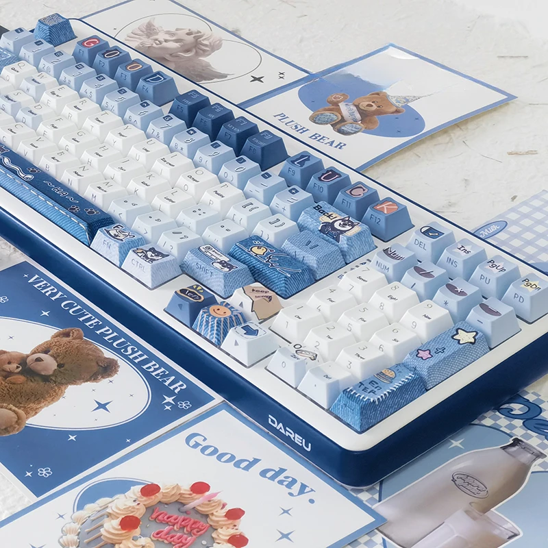 Teclas con temática de Cowboy Shiba Inu, teclas azules con grabado lateral de perfil de cereza, PBT, sublimación de calor, bonitas tapas para teclado de cachorro, 120 teclas