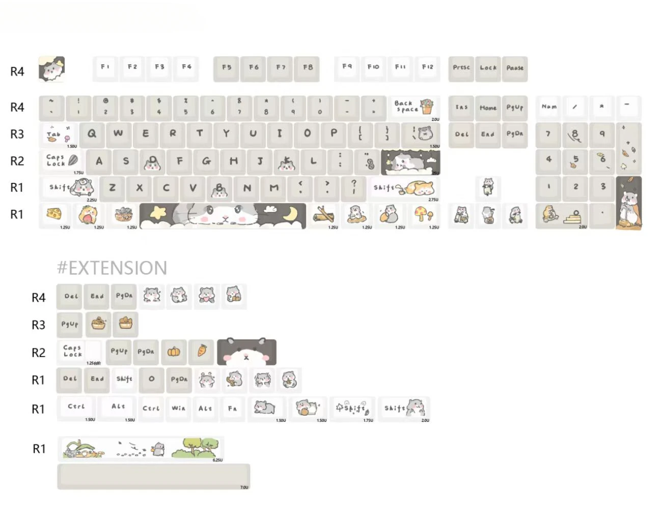 Comprar Teclas con temática de hámster, teclas XDA/Cherry, sublimación de perfil PBT, Material gris de dibujos animados para teclado mecánico MX Switch