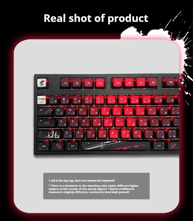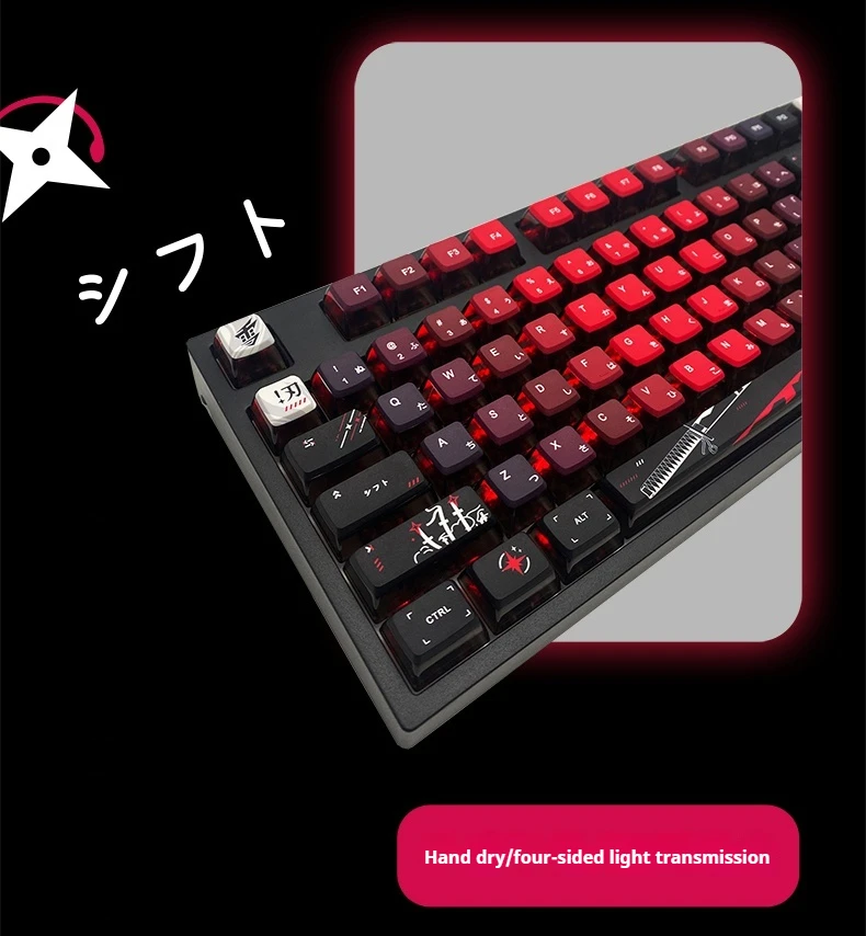 Comprar Teclas con temática samurái japonesa, sublimación de texto japonés, cuatro caras, transparentes, Pbt, Teclado mecánico personalizado, 2024
