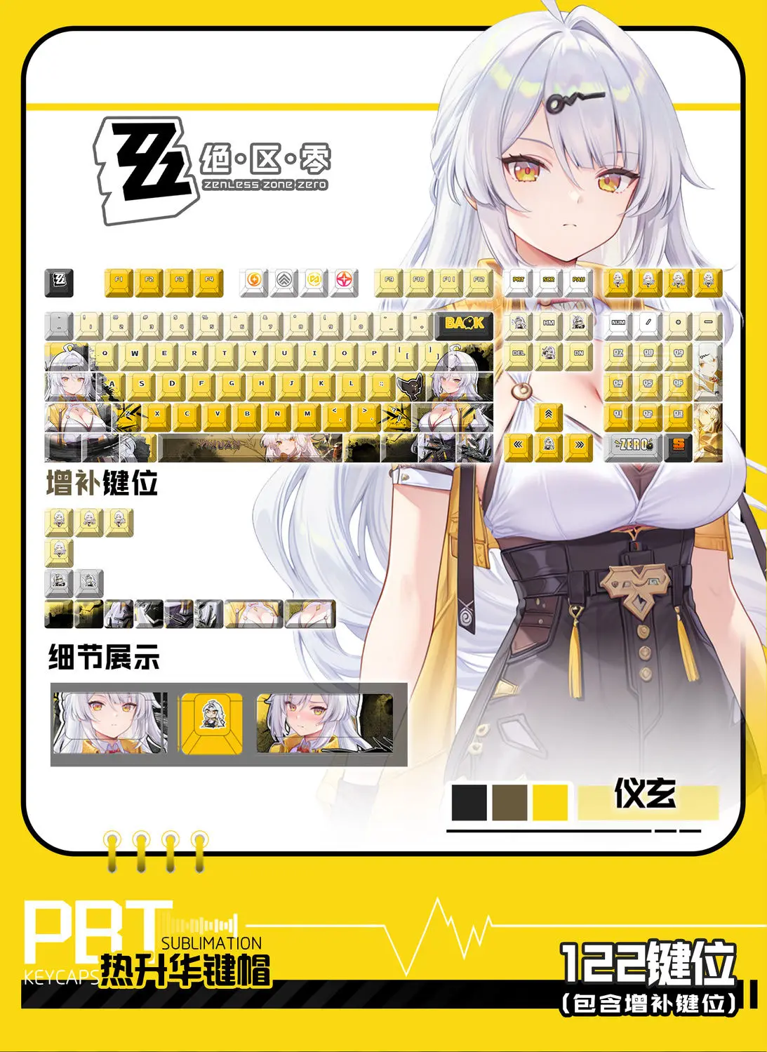Teclas temáticas de juego ZZZ, 122 teclas, teclas PBT, perfil de cereza para teclado mecánico AULA F75 F108, teclado de diseño DIY 61 68 75 108
