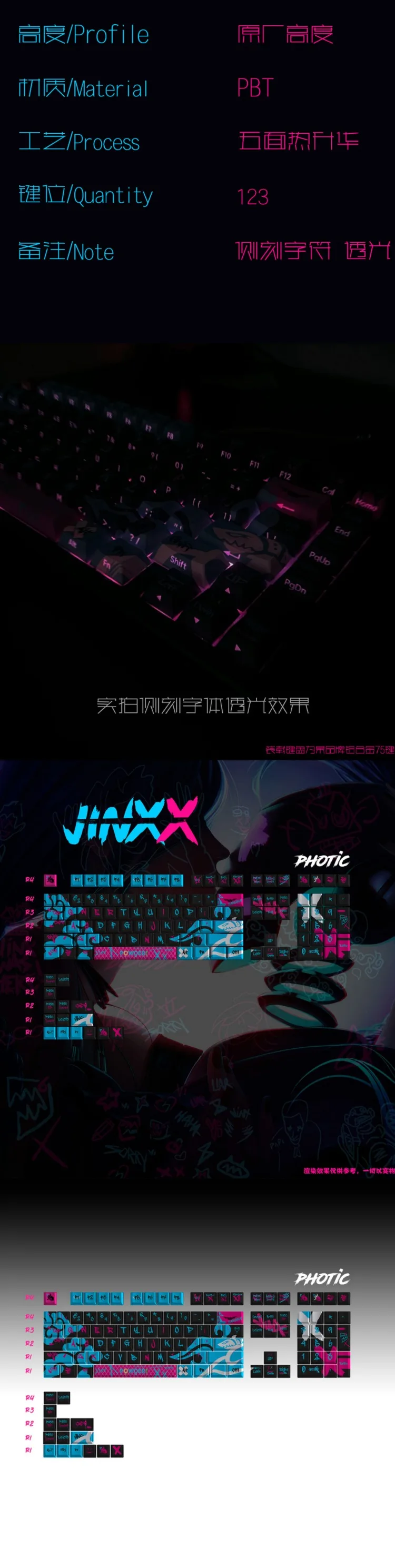 MiFuny Arance Jinx Keycap temático 123 teclas lado grabado PBT Cherry/MDA perfil teclado de juego personalizado para teclado mecánico regalo