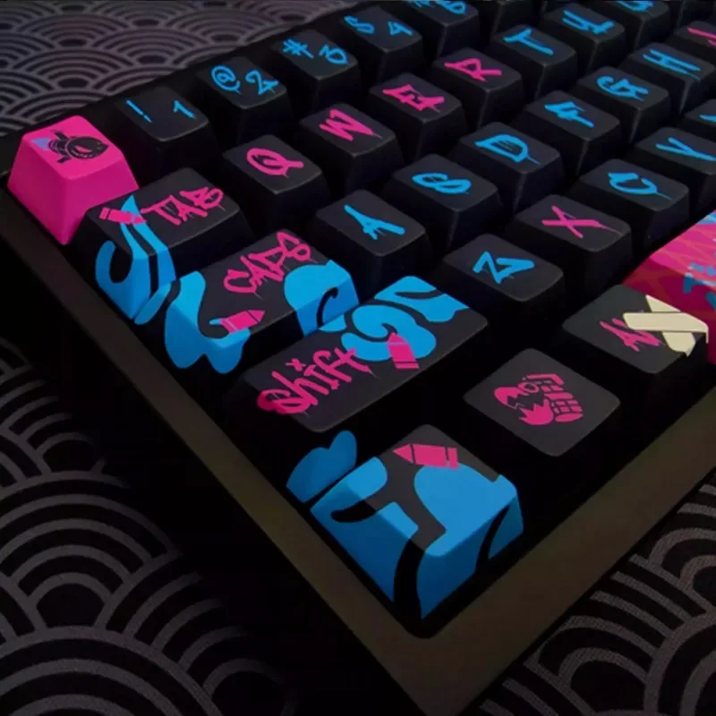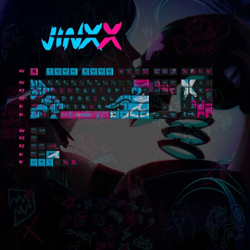 MiFuny Arance Jinx Keycap temático 123 teclas lado grabado PBT Cherry/MDA perfil teclado de juego personalizado para teclado mecánico regalo