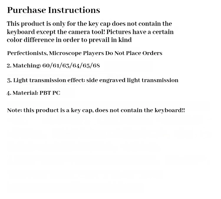 5.Después de la venta: Como la tecla en sí es un producto artesanal con marcas de chorro de agua, rebabas, leves puntos negros y puntos blancos son fenómenos normales.No compre si le importa.