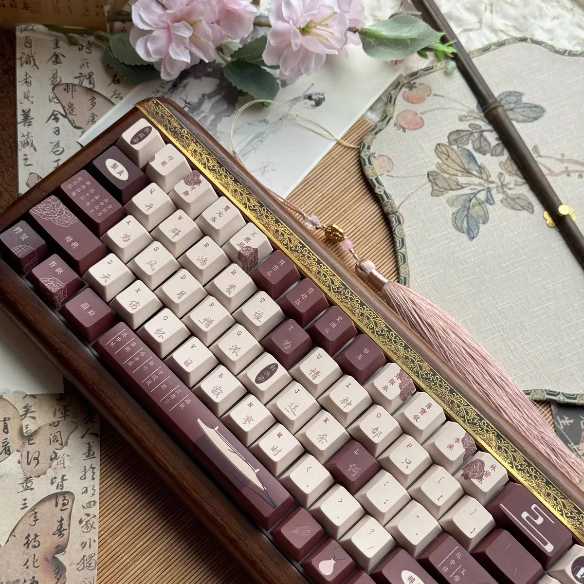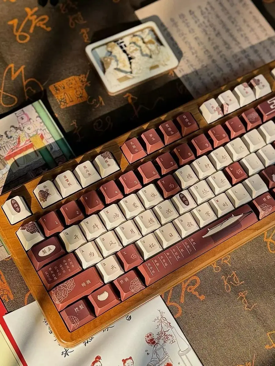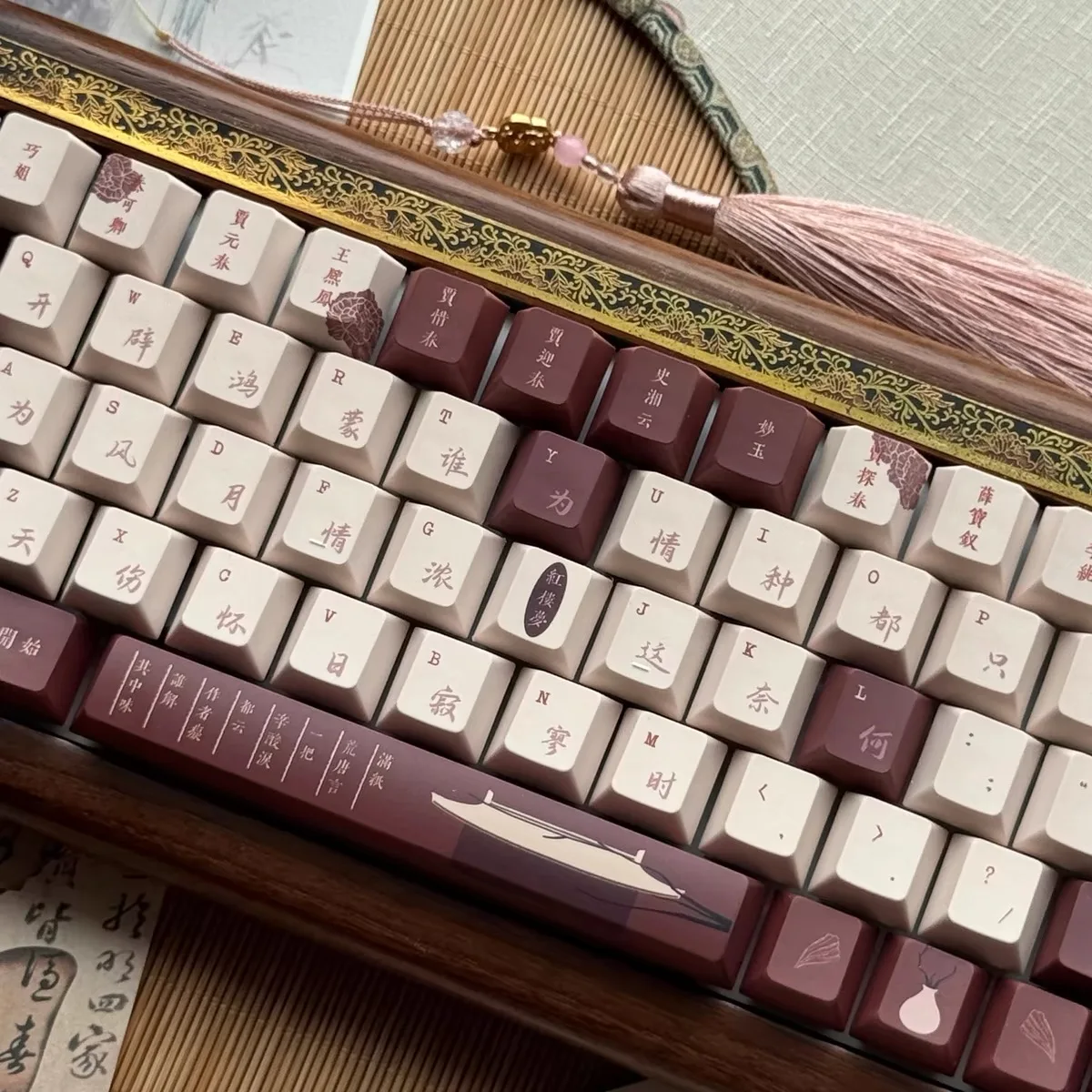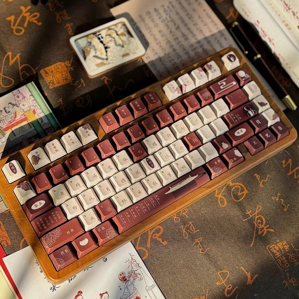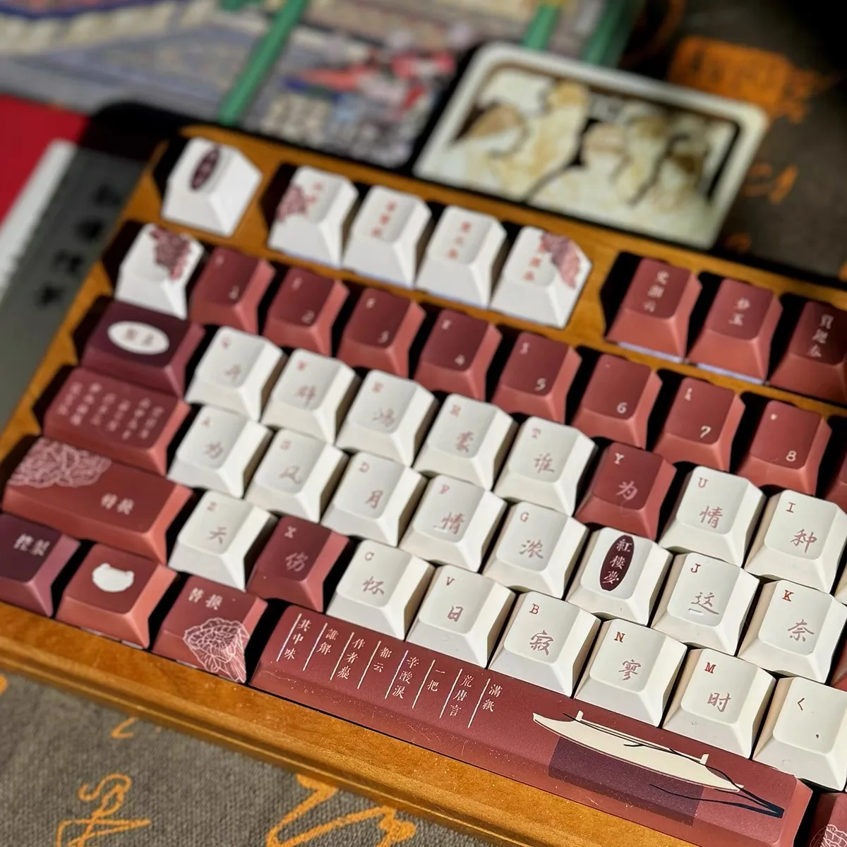 Comprar Teclas The Dream Of Red Mansion, teclas de perfil de cereza, sublimación de tinte PBT, teclado para juegos mecánicos MX, 67, 75, 87, 142 teclas