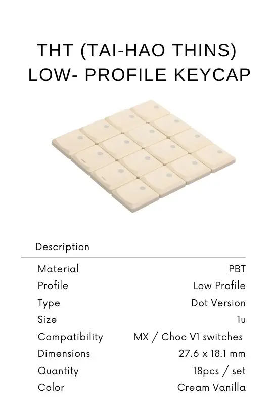 Teclas THT de perfil bajo, sin teclas grabadas para juegos, teclado mecánico, teclas de interruptor bajo, adecuadas para MX y Choc V1 Switch