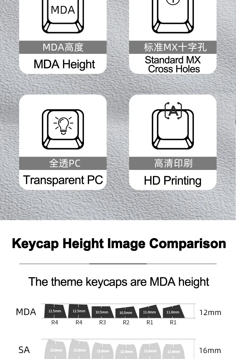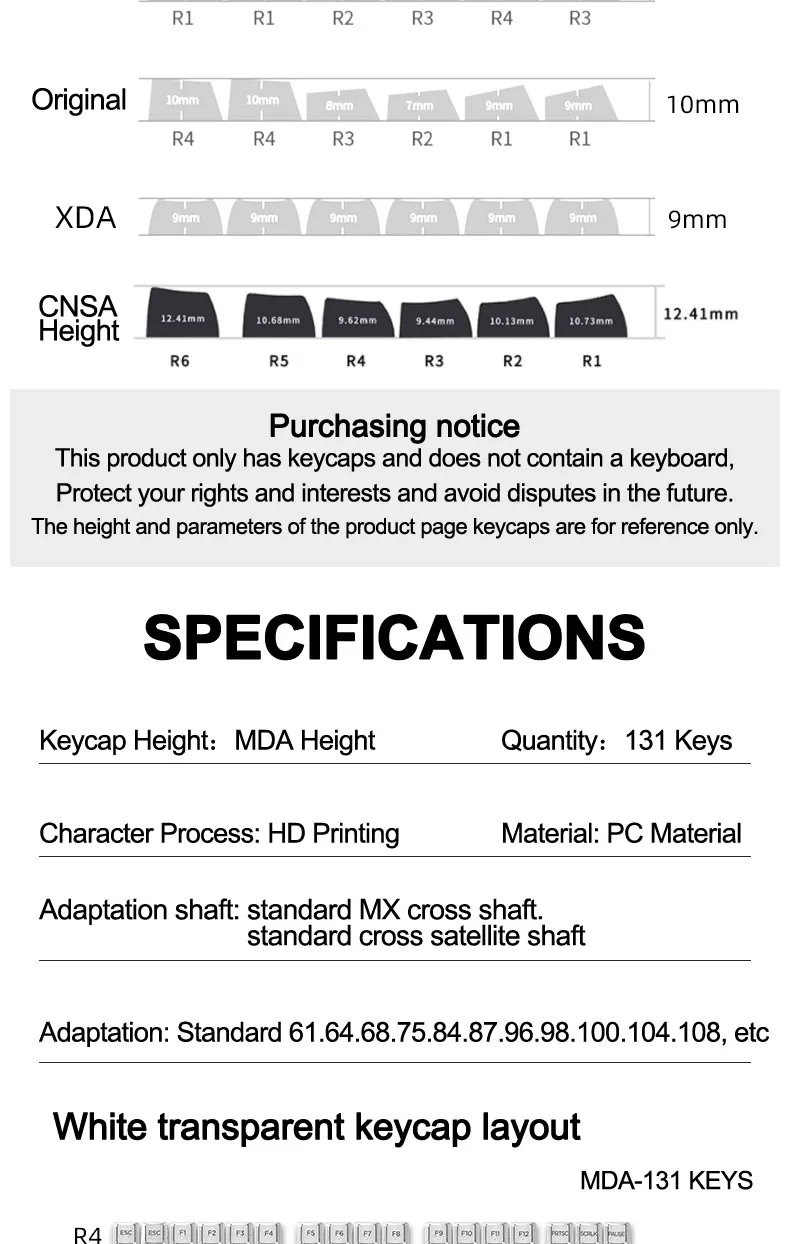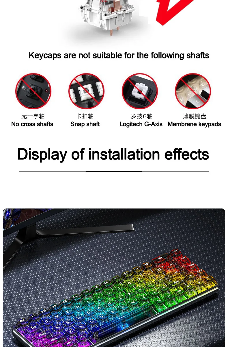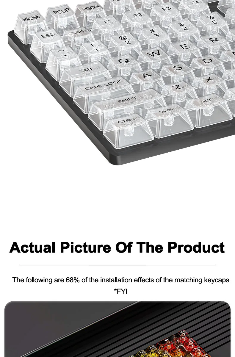 Comprar Teclas translúcidas de cristal de hielo, Cbsa Mda, Pc, interruptor mecánico, púrpura, rosa, naranja, 68, 75, 87, 98/108 teclas