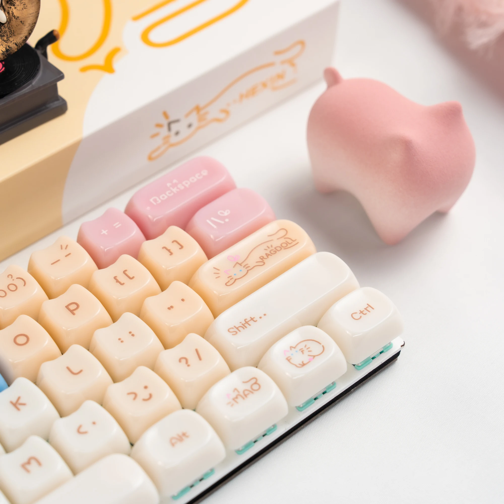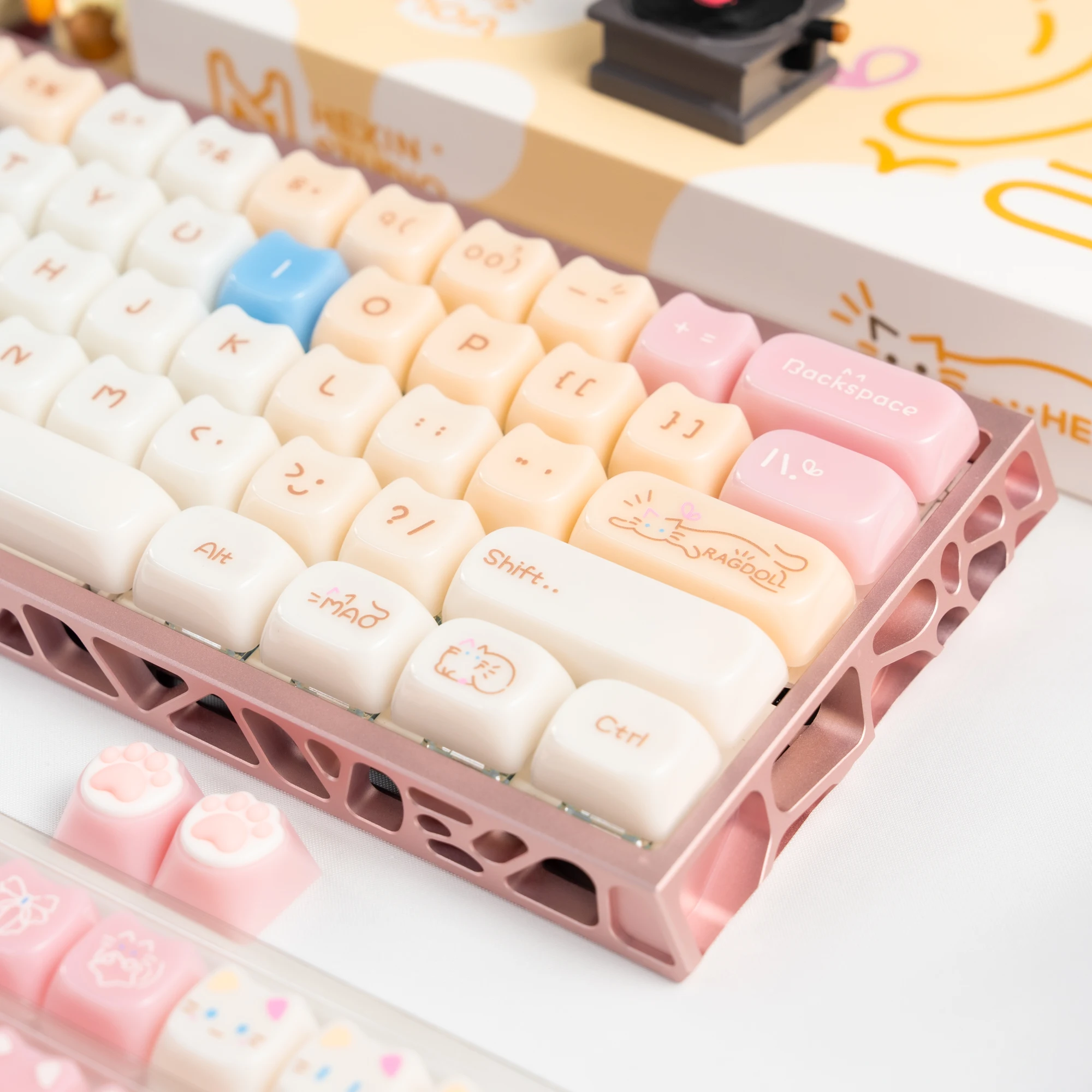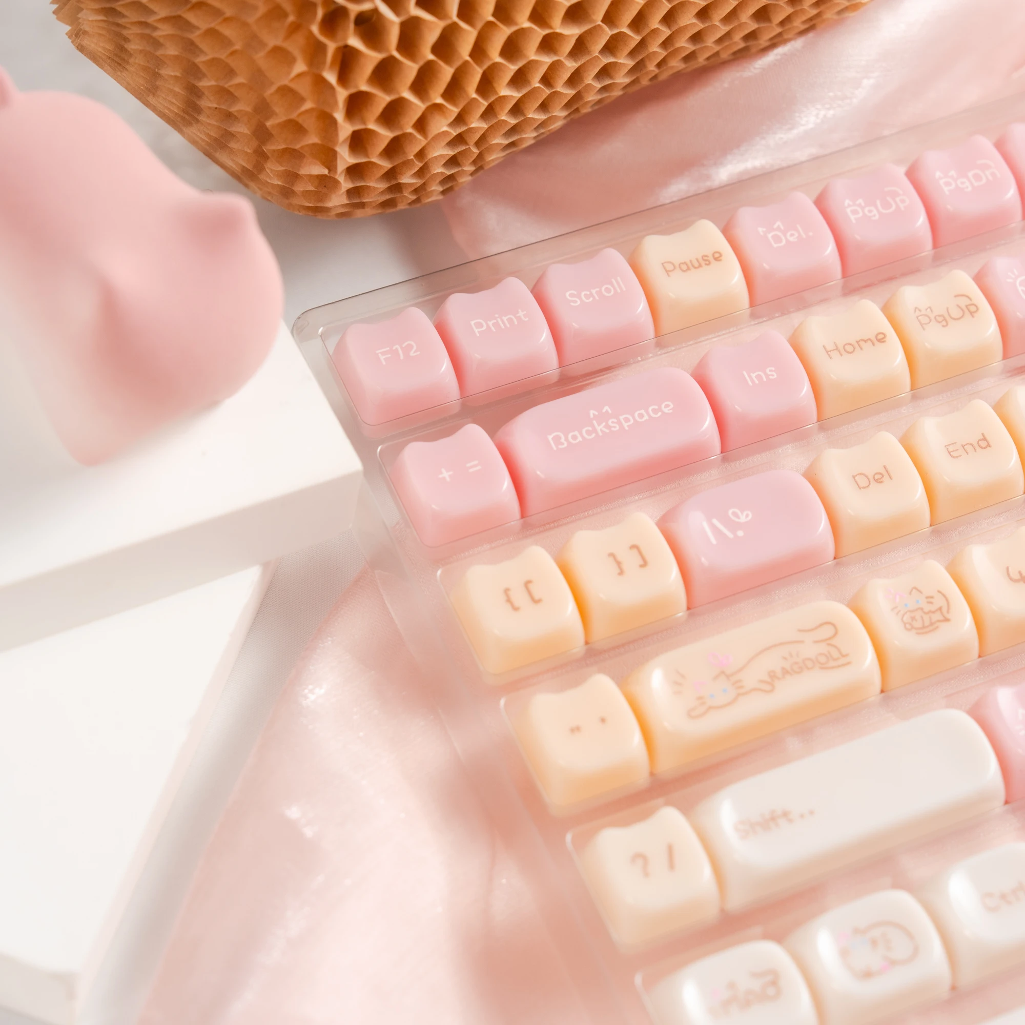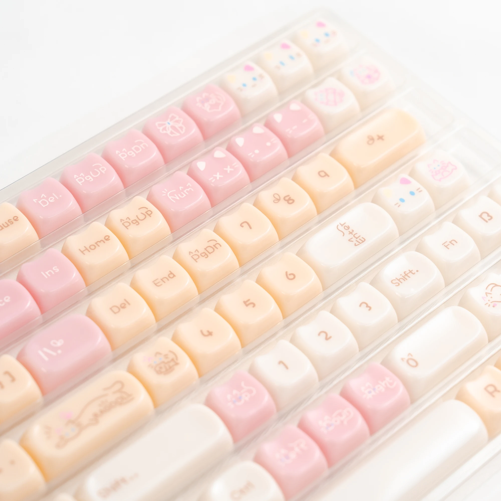 Comprar Teclas translúcidas de cristal de hielo rosa de 148 teclas, teclas con tema de gato gelatina, perfil MAO para interruptores Cherry MX, Teclado mecánico