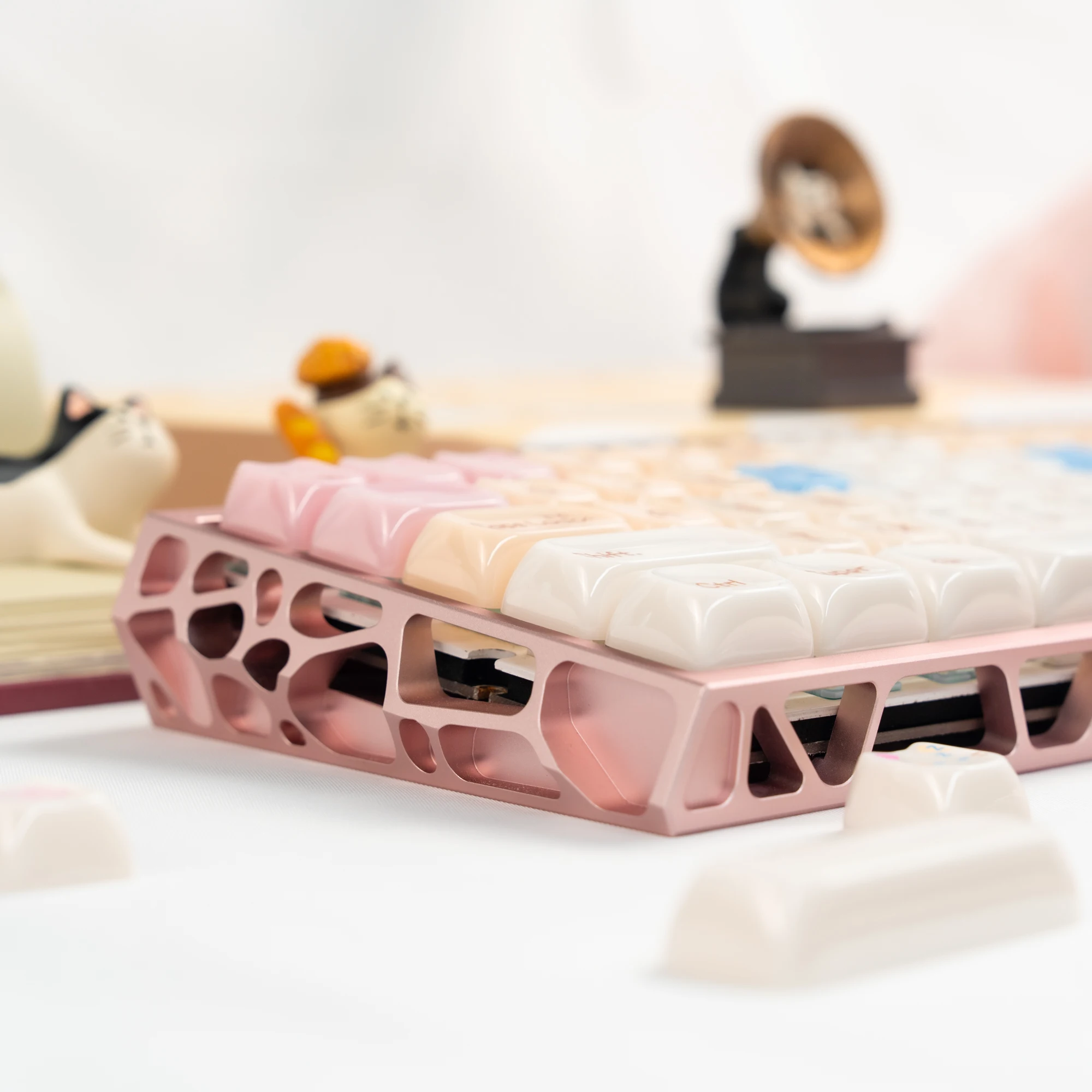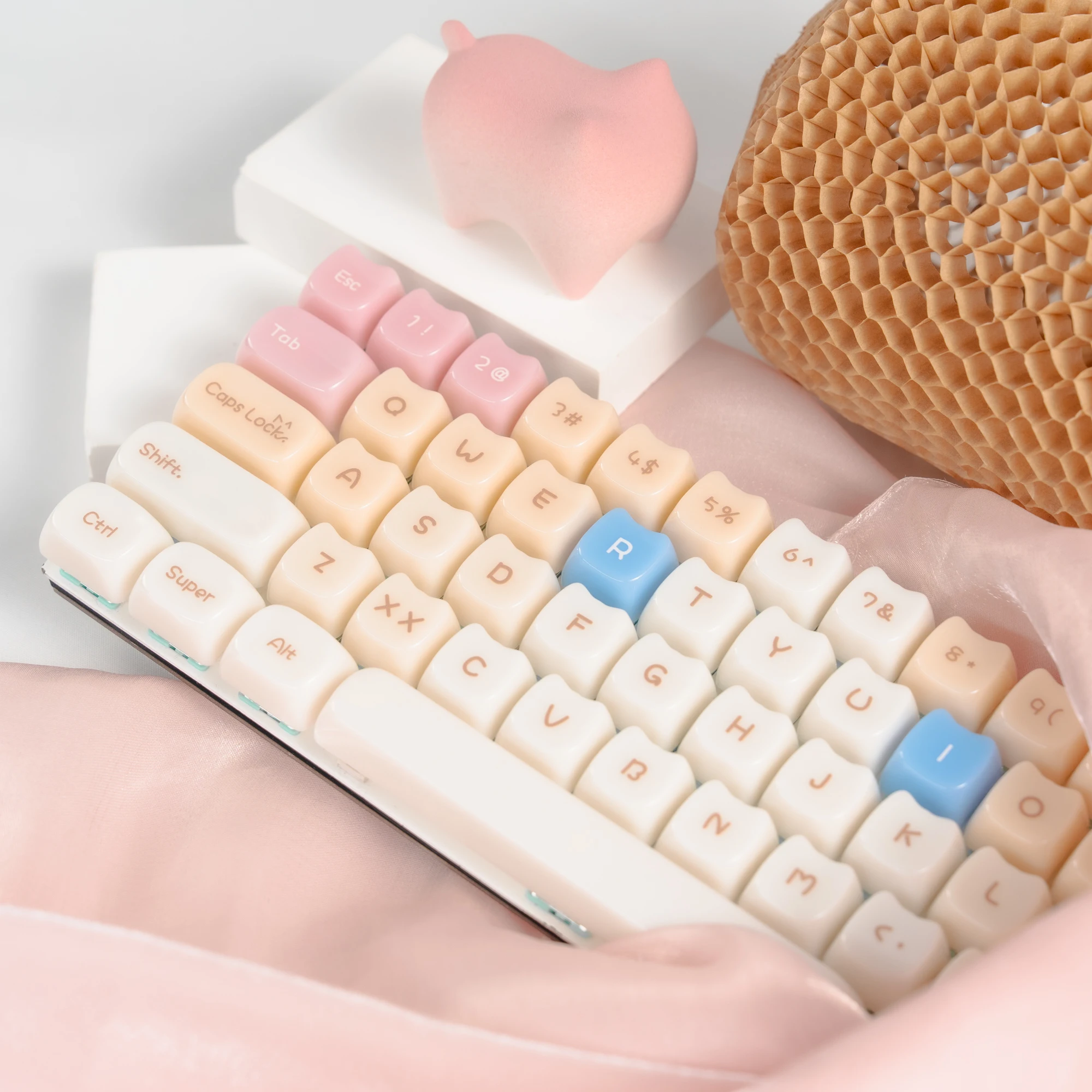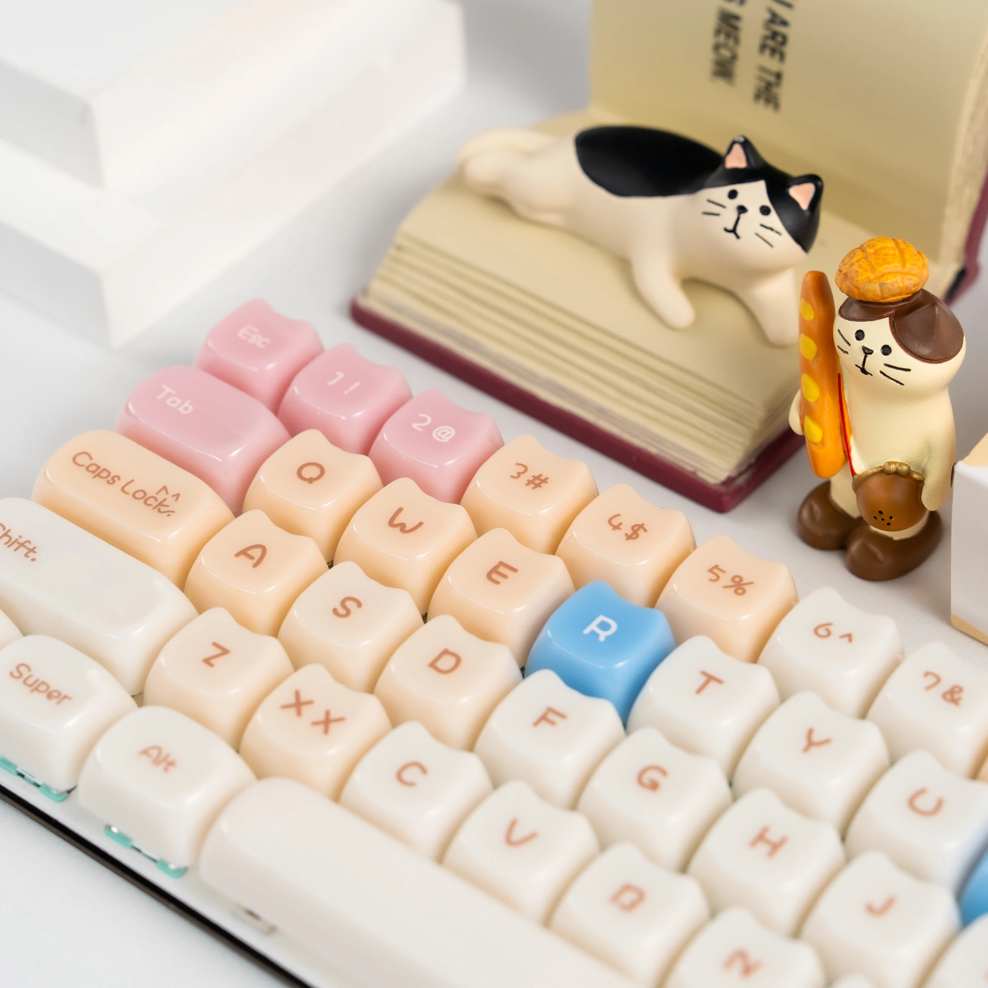 Comprar Teclas translúcidas de cristal de hielo rosa de 148 teclas, teclas con tema de gato gelatina, perfil MAO para interruptores Cherry MX, Teclado mecánico