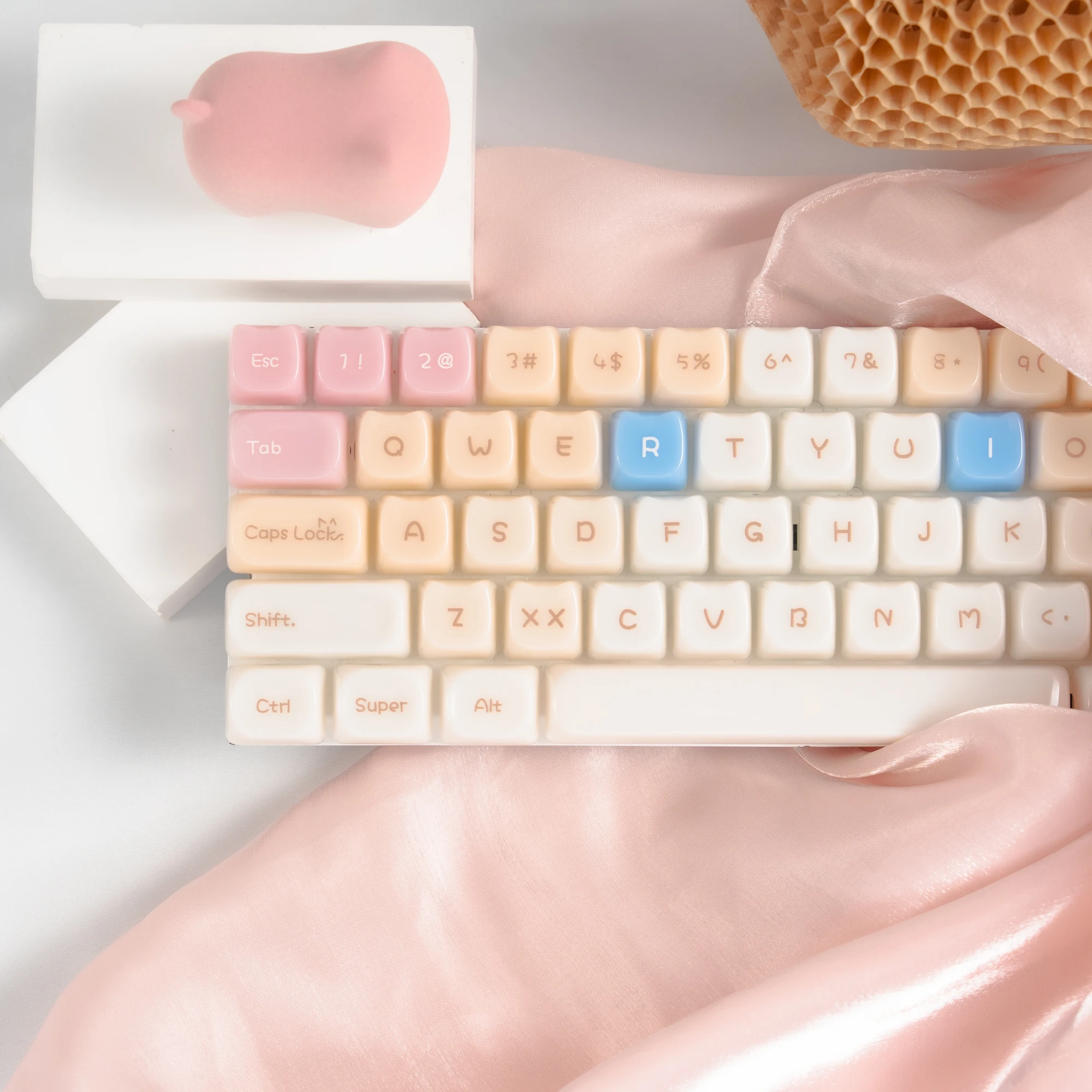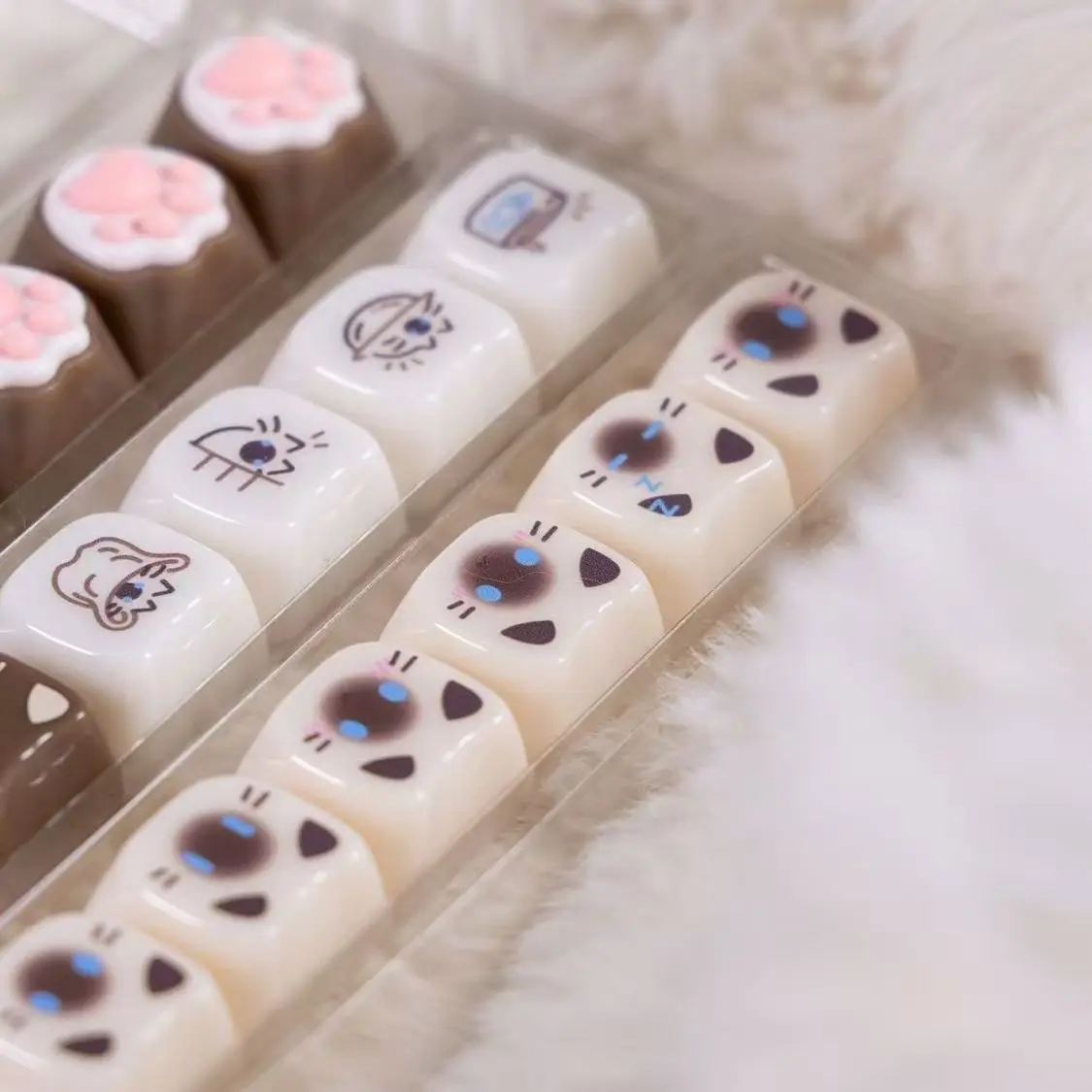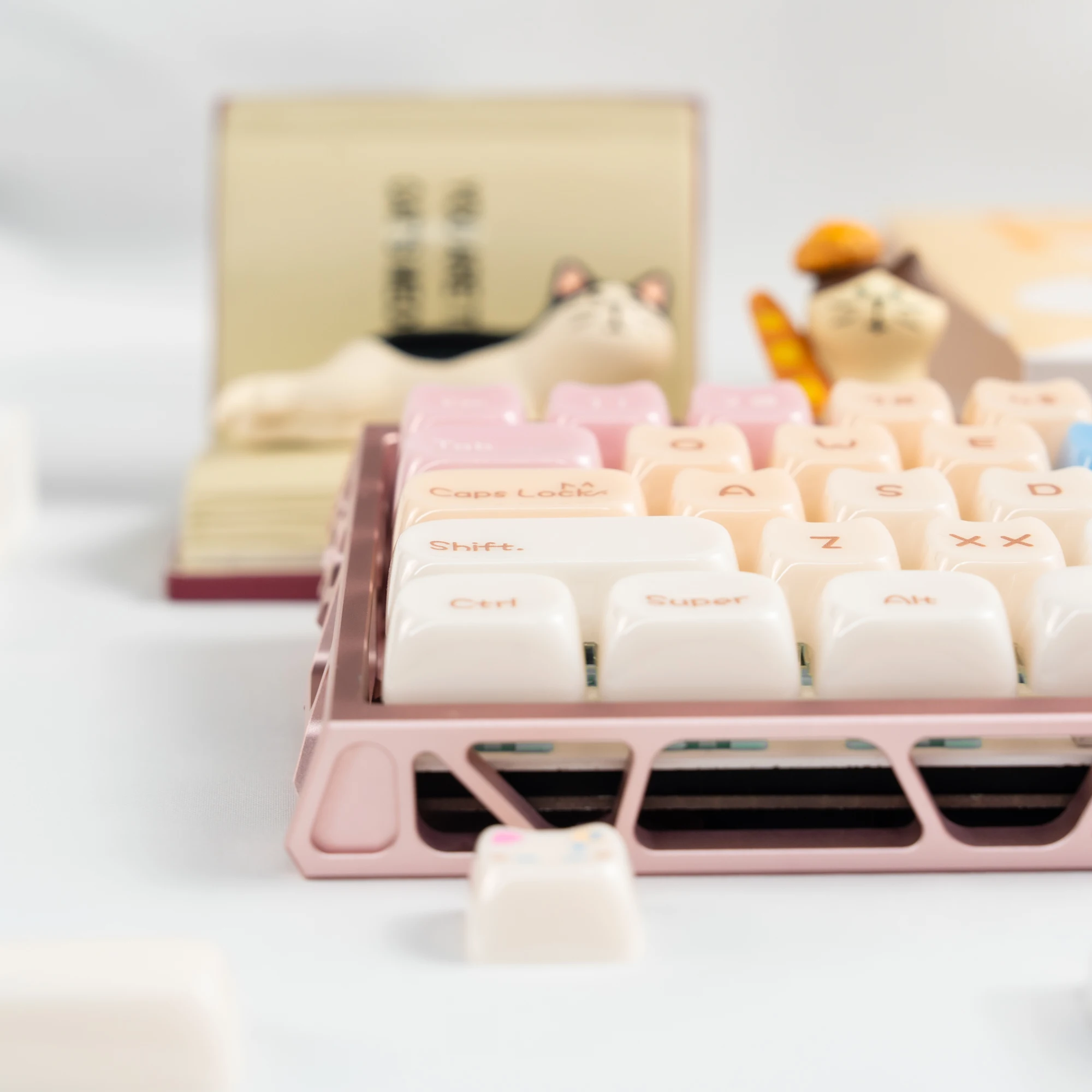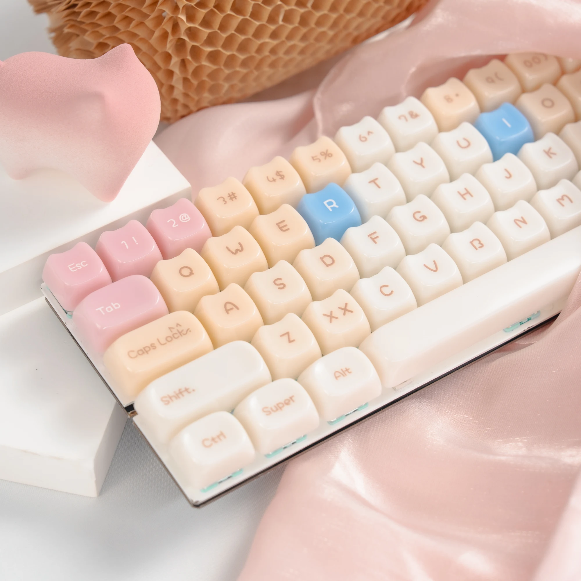 Comprar Teclas translúcidas de cristal de hielo rosa de 148 teclas, teclas con tema de gato gelatina, perfil MAO para interruptores Cherry MX, Teclado mecánico