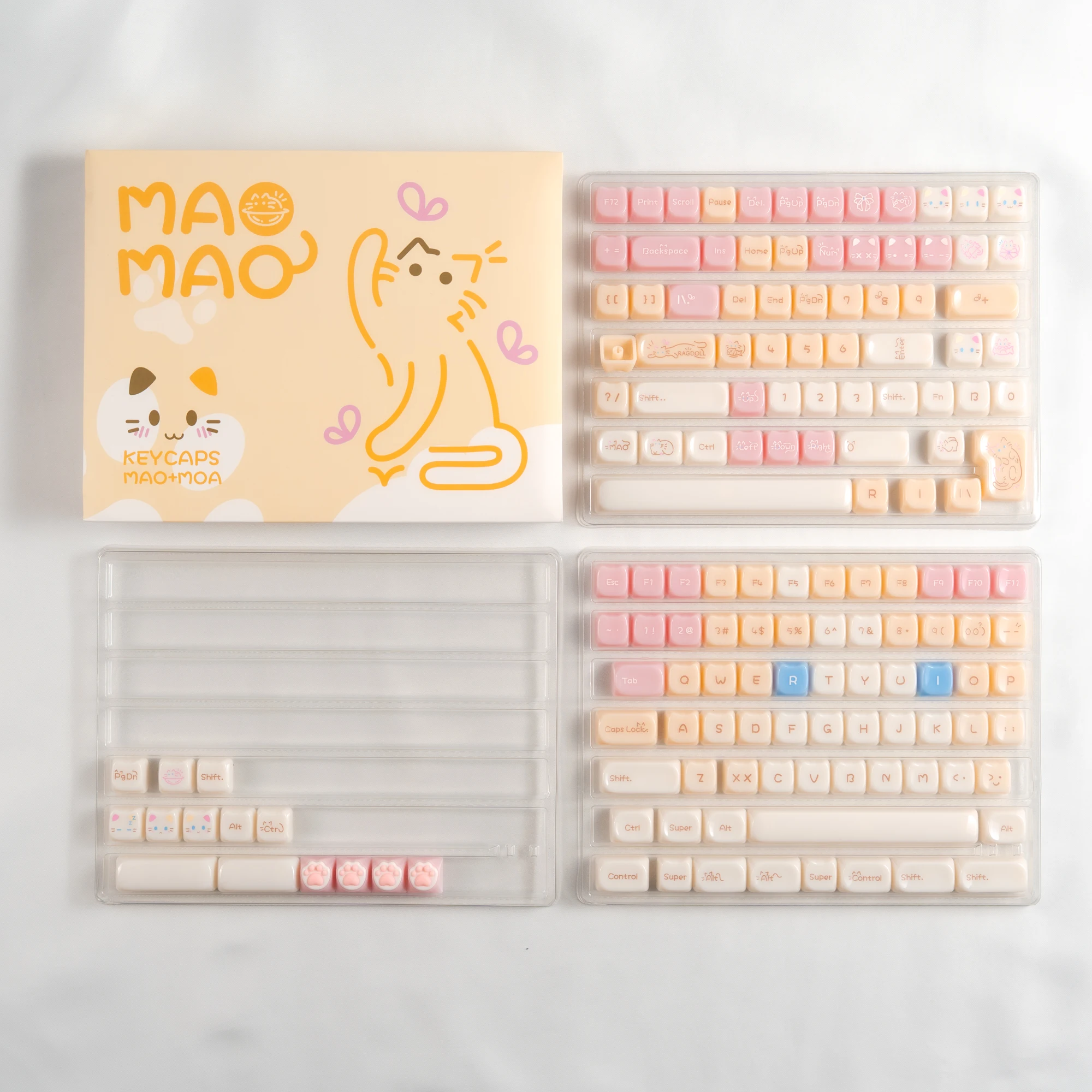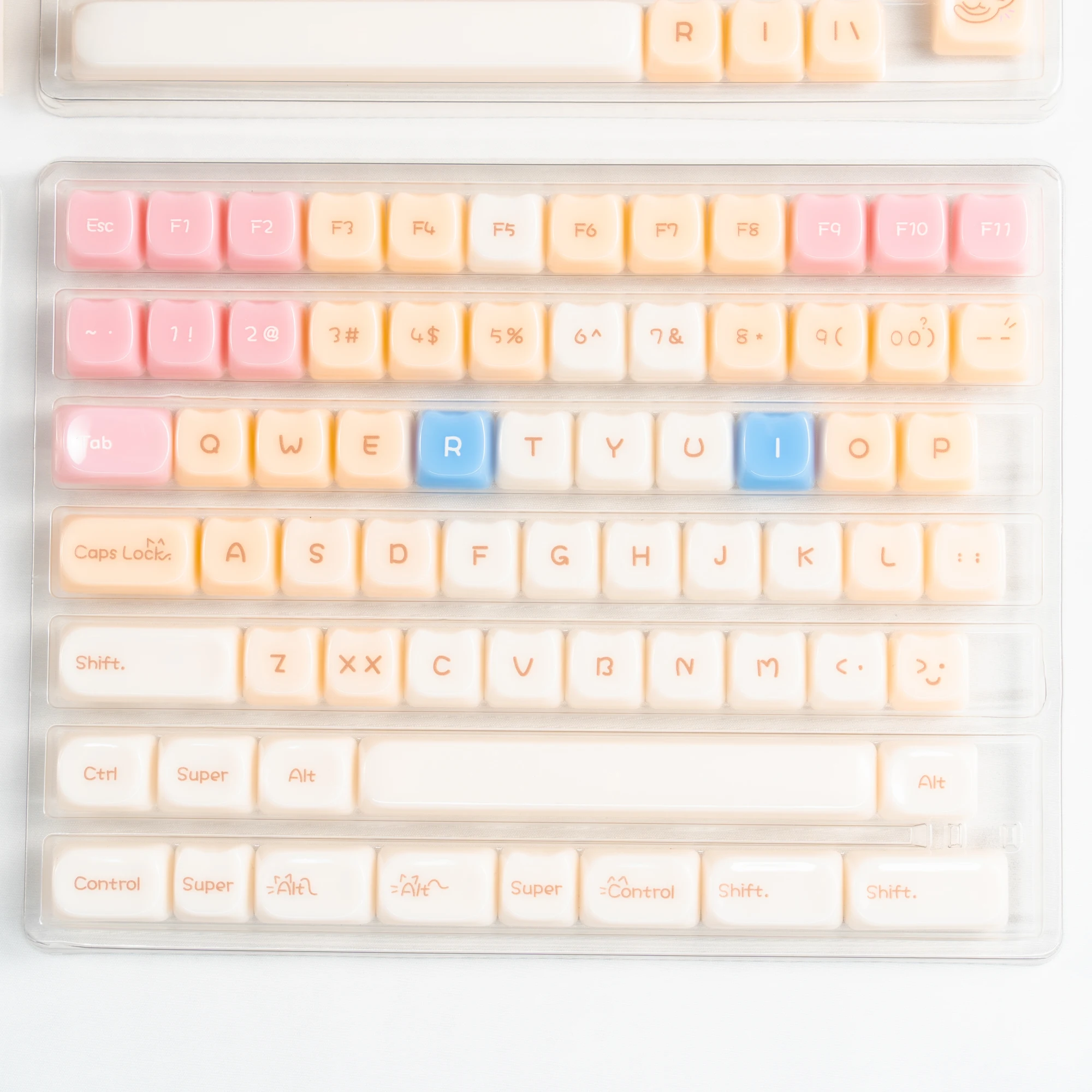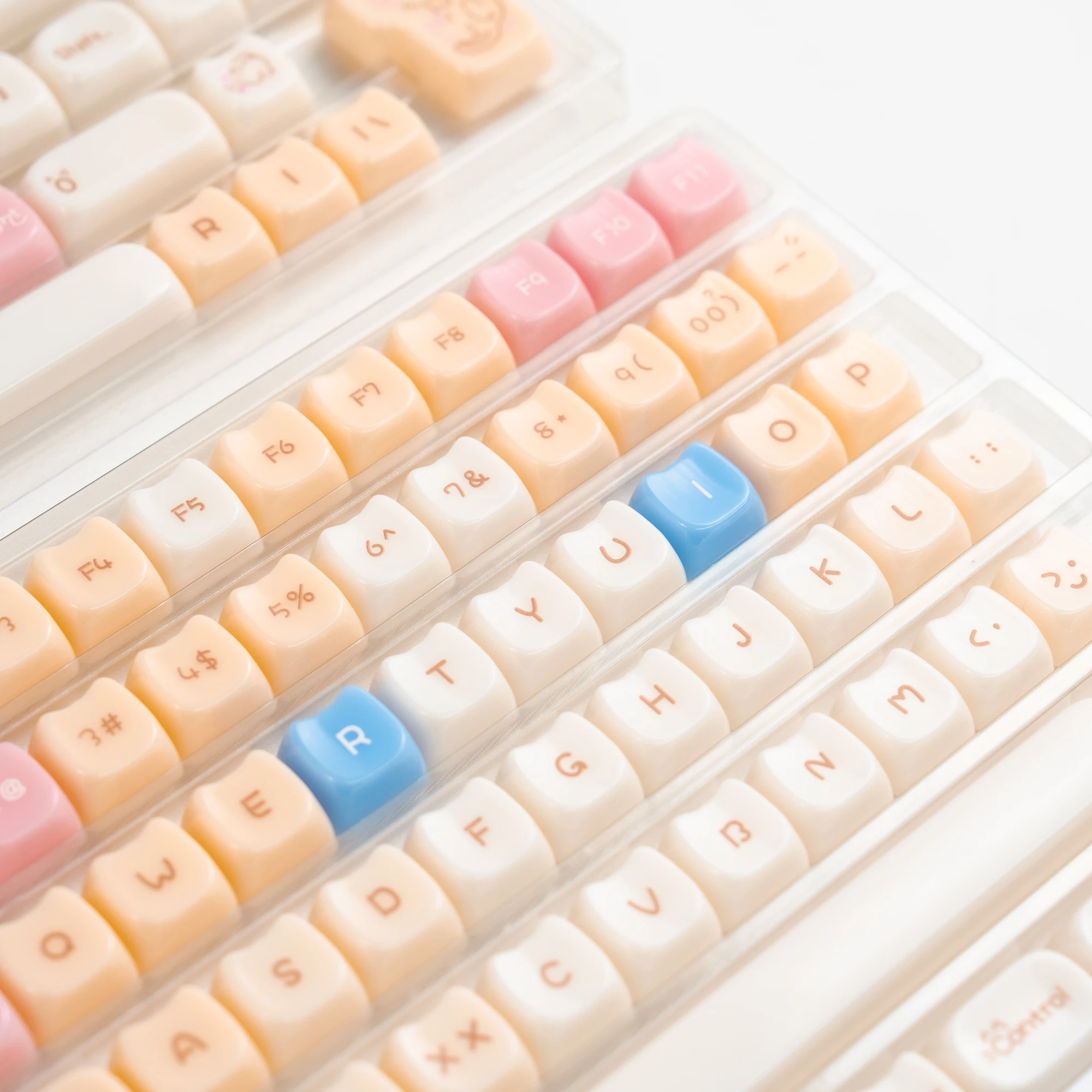 Teclas translúcidas de cristal de hielo rosa de 148 teclas, teclas con tema de gato gelatina, perfil MAO para interruptores Cherry MX, Teclado mecánico
