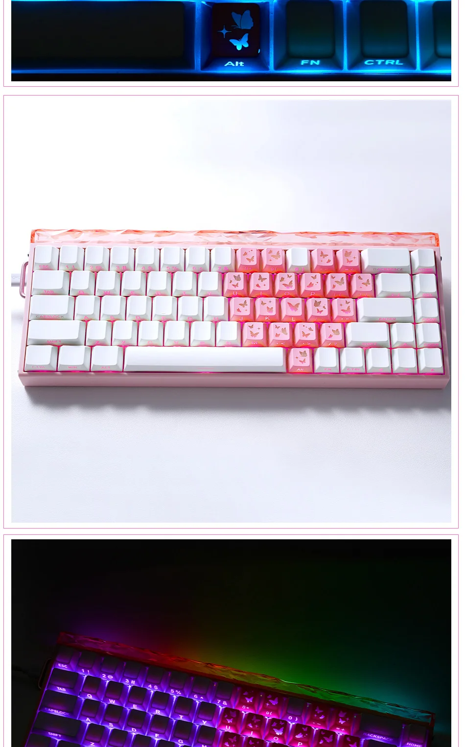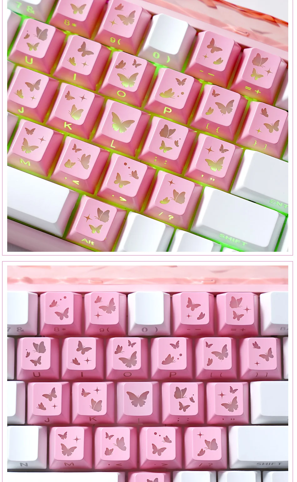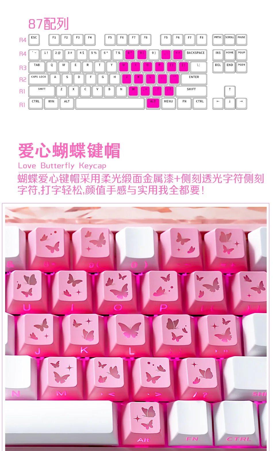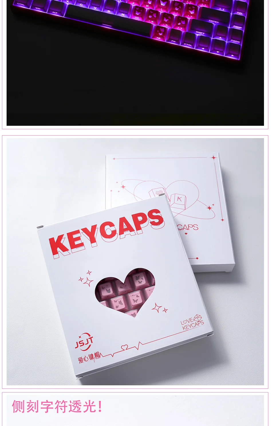 Teclas Translúcidas en Forma de Corazón, Color Rosa, 21 Teclas, Impresión Lateral, Acabado Satinado con Brillo Suave, Perfil Cherry, para DIY