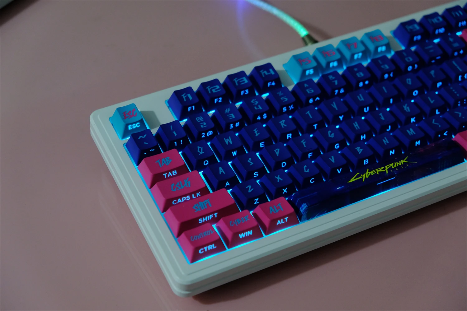 Tecla translúcida con grabado lateral, 130 teclas, perfil de cereza, PBT DYE, teclas de sublimación para interruptores Mx, teclado mecánico