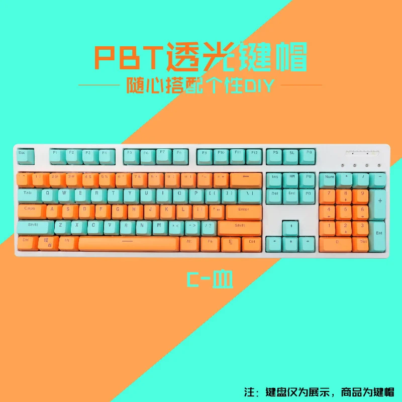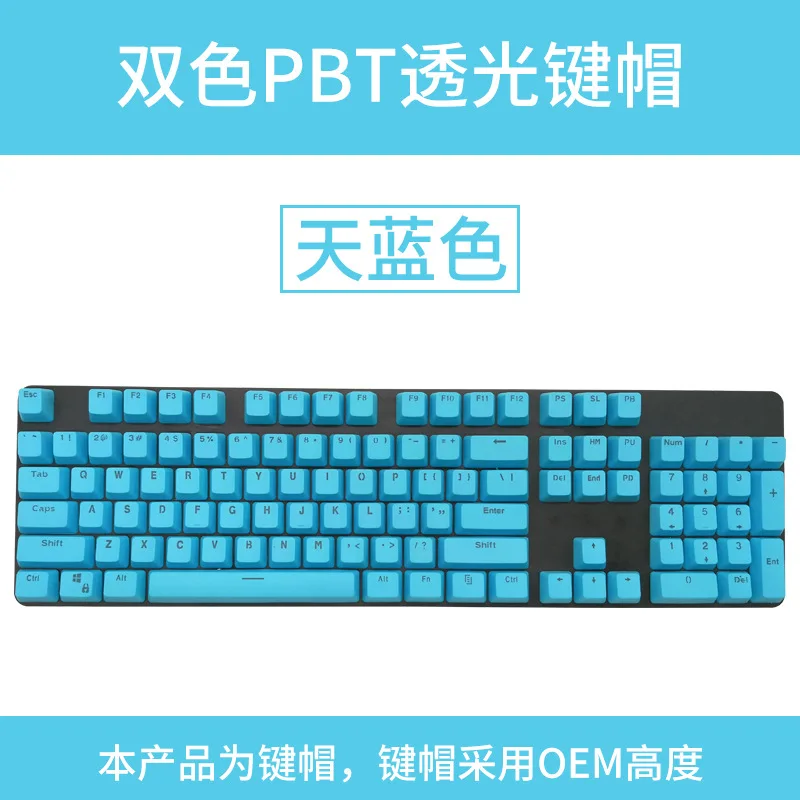 Comprar Teclas transmisoras de luz PBT OEM altamente de doble inyección de color Teclas personalizadas de 104 teclas