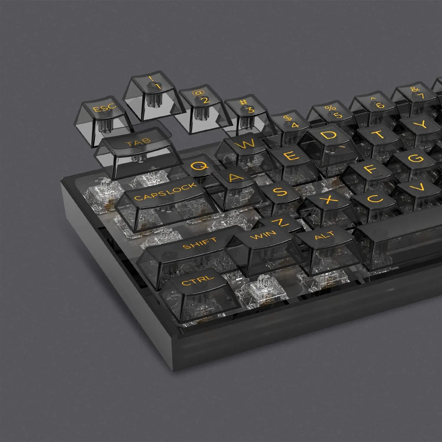 Comprar Teclas transparentes con brillo de 115 teclas, teclas transparentes negras para interruptores Mx, solo teclas para teclado mecánico para juegos