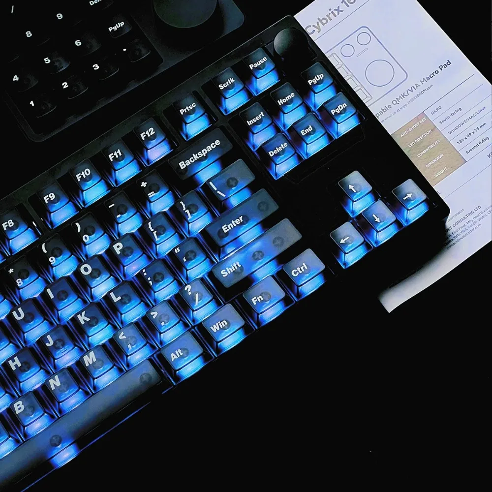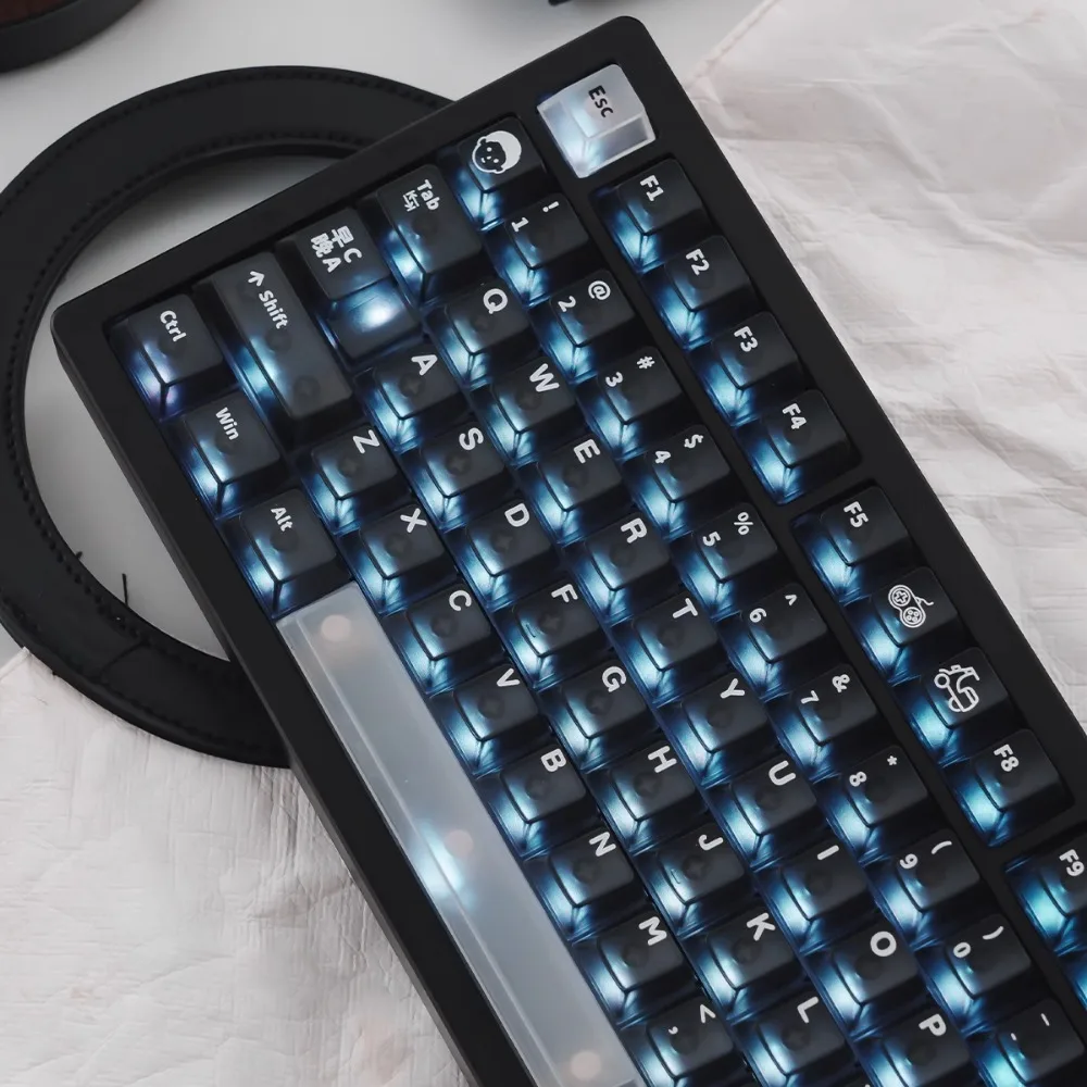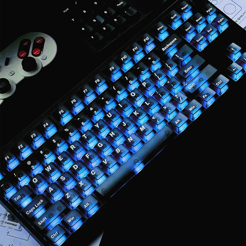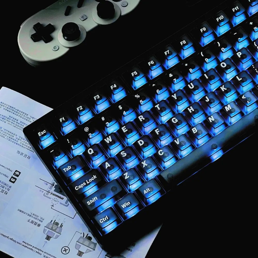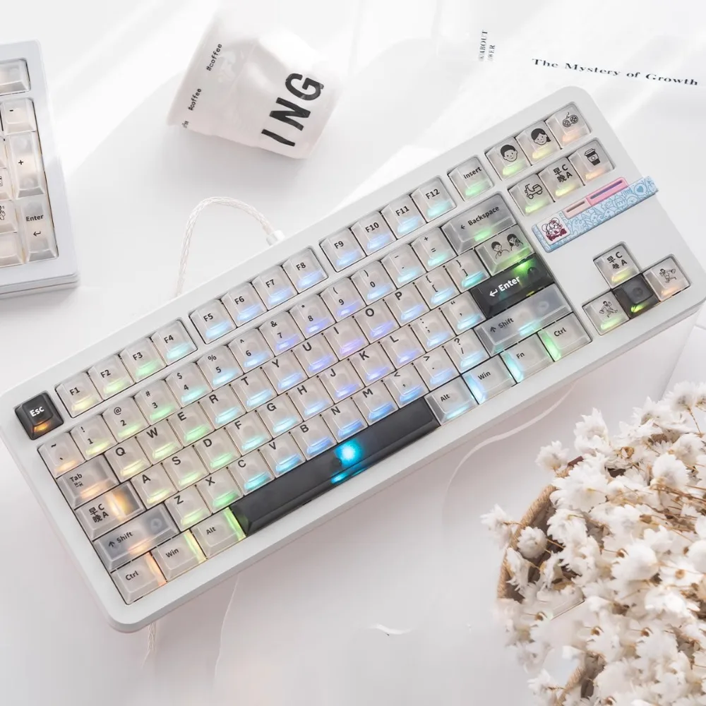 Comprar Teclas transparentes de niebla blanca, almohadilla de PC de altura de cereza, personalidad impresa para teclado mecánico 61 68 75 87 104 108