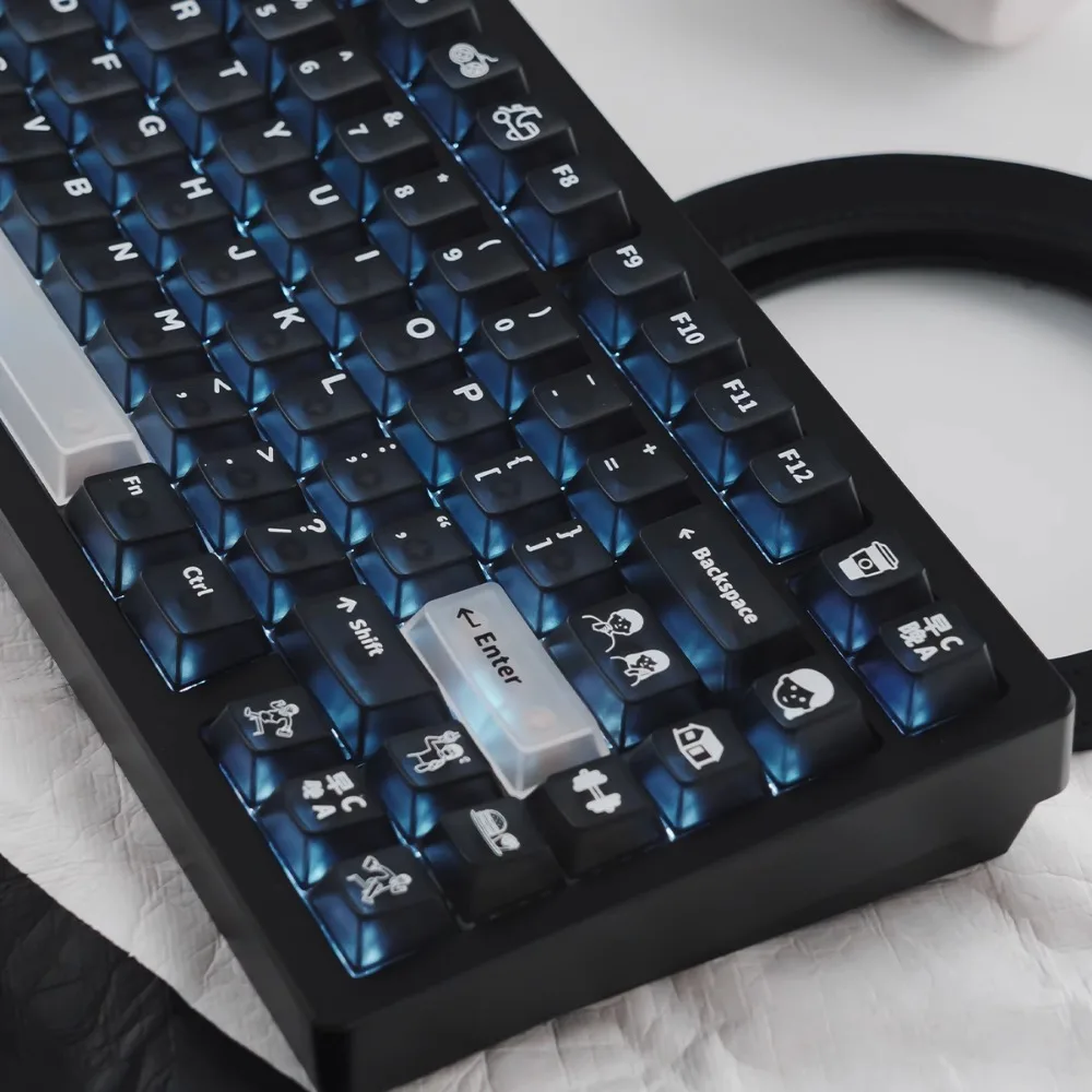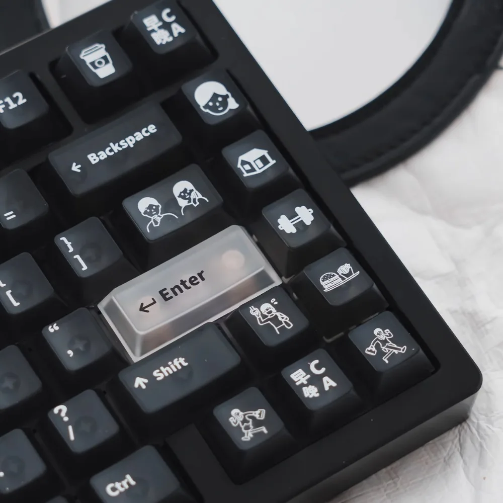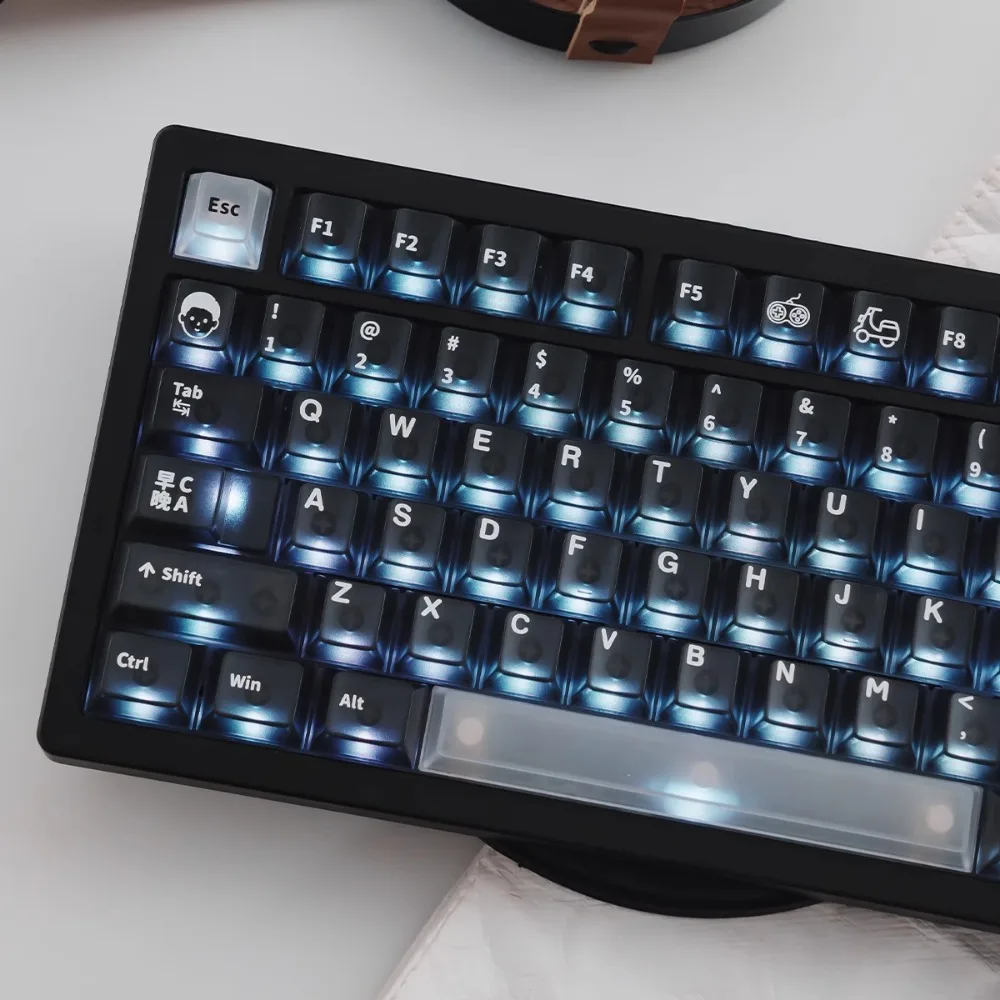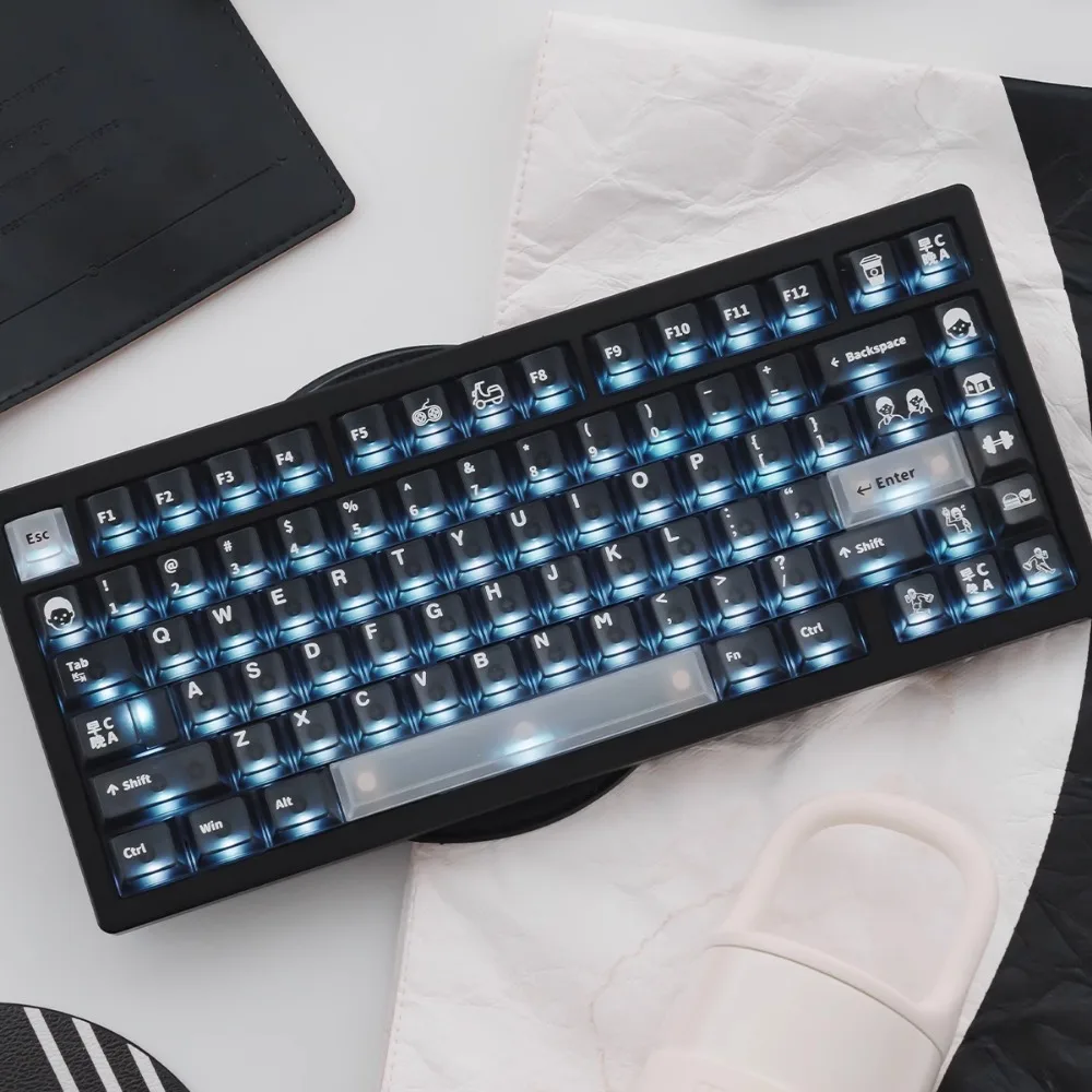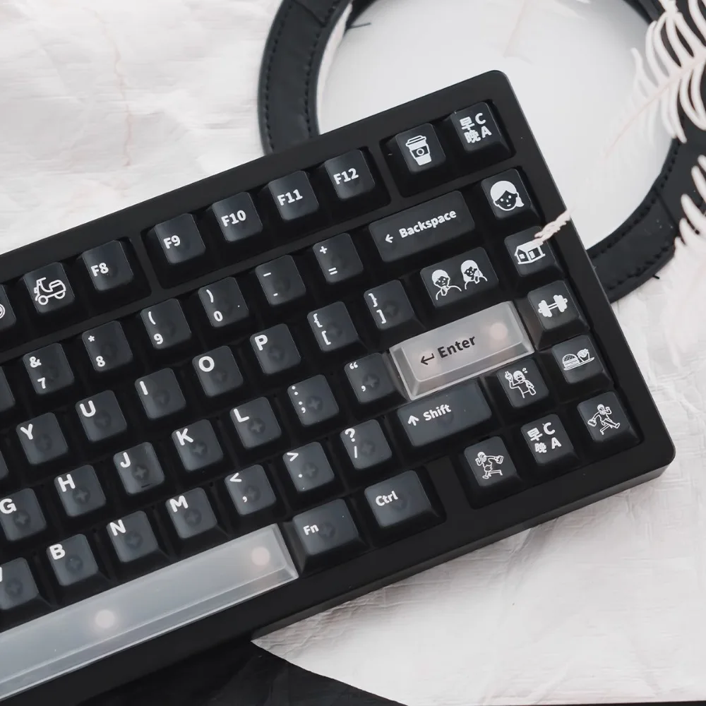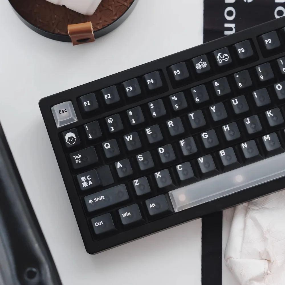 Comprar Teclas transparentes de niebla blanca, almohadilla de PC de altura de cereza, personalidad impresa para teclado mecánico 61 68 75 87 104 108