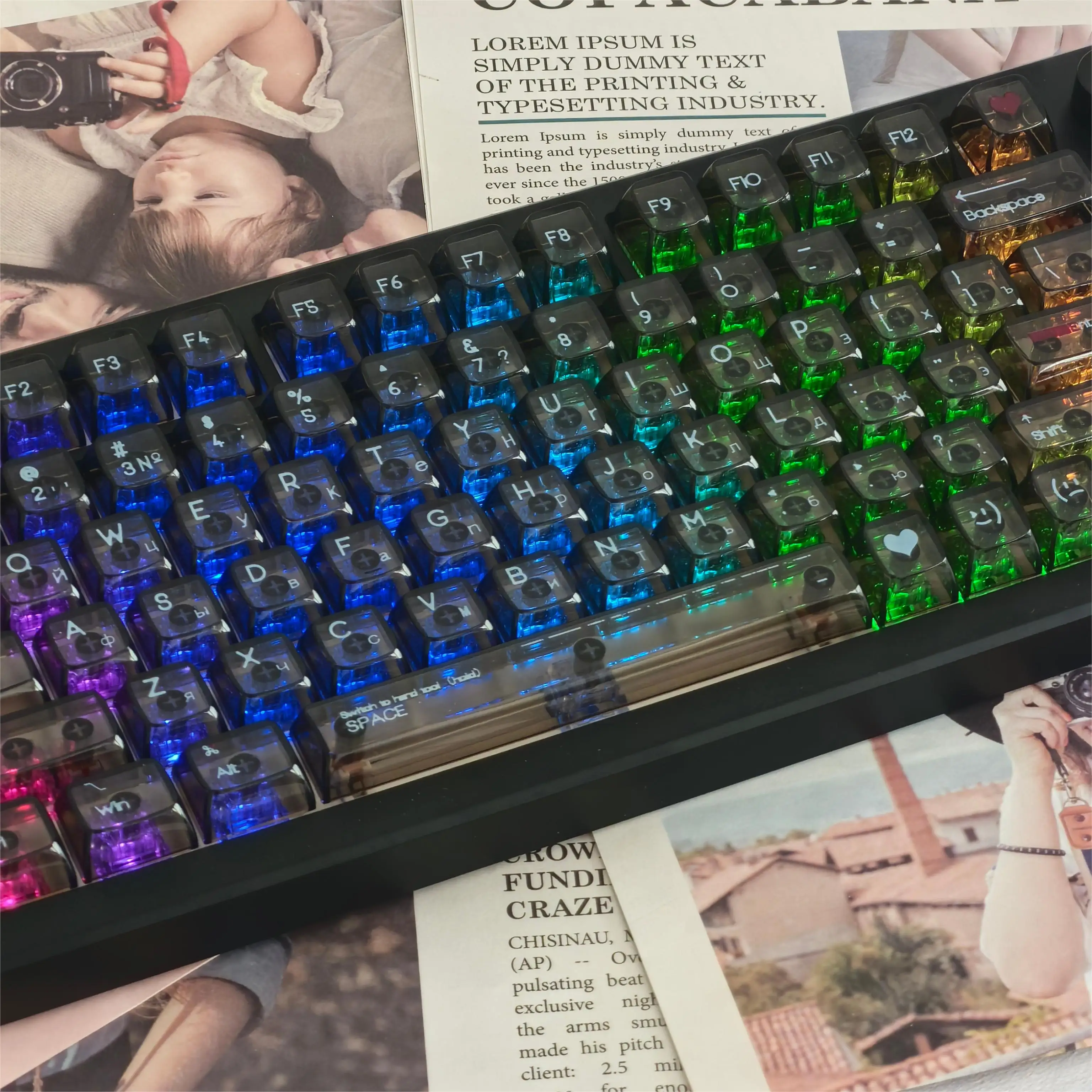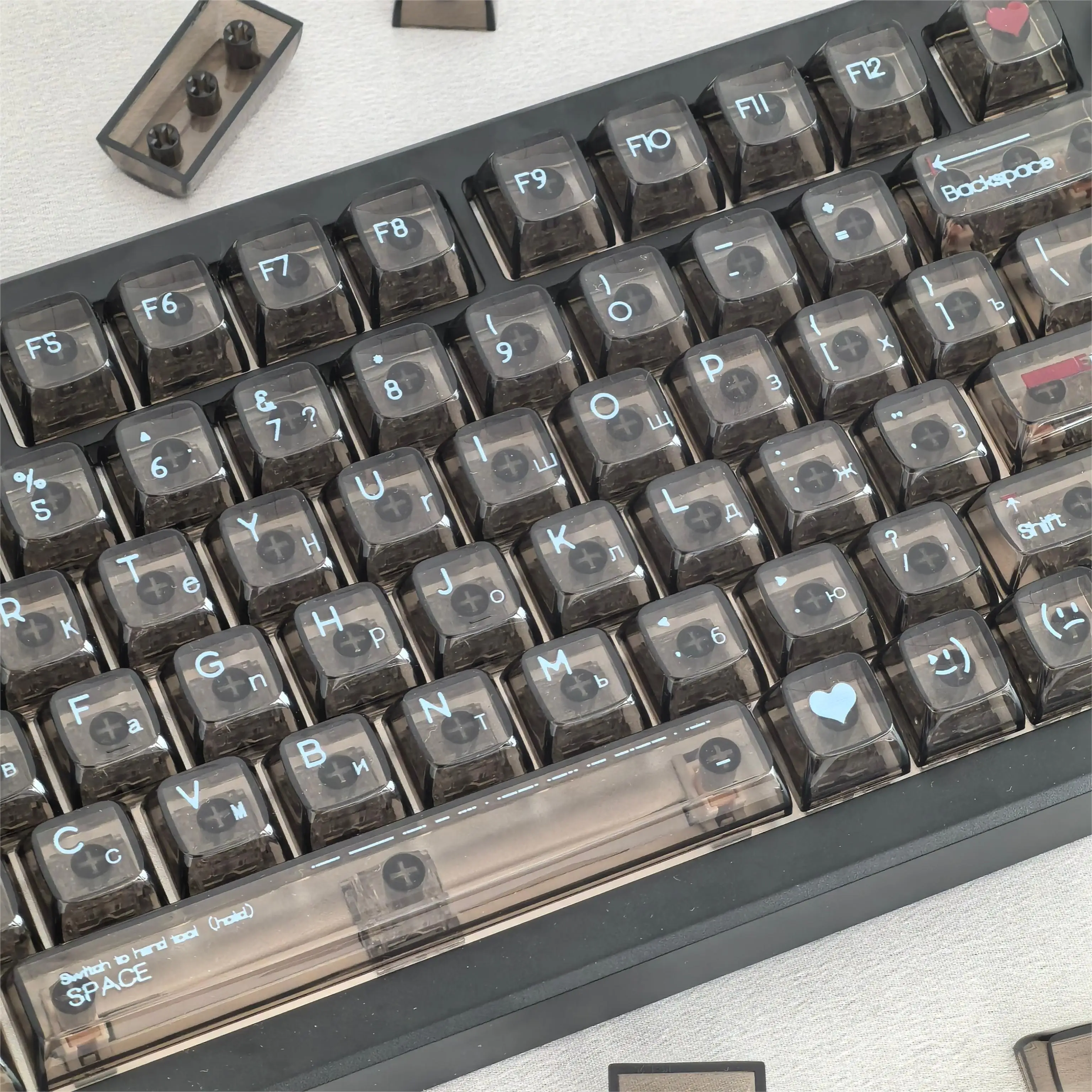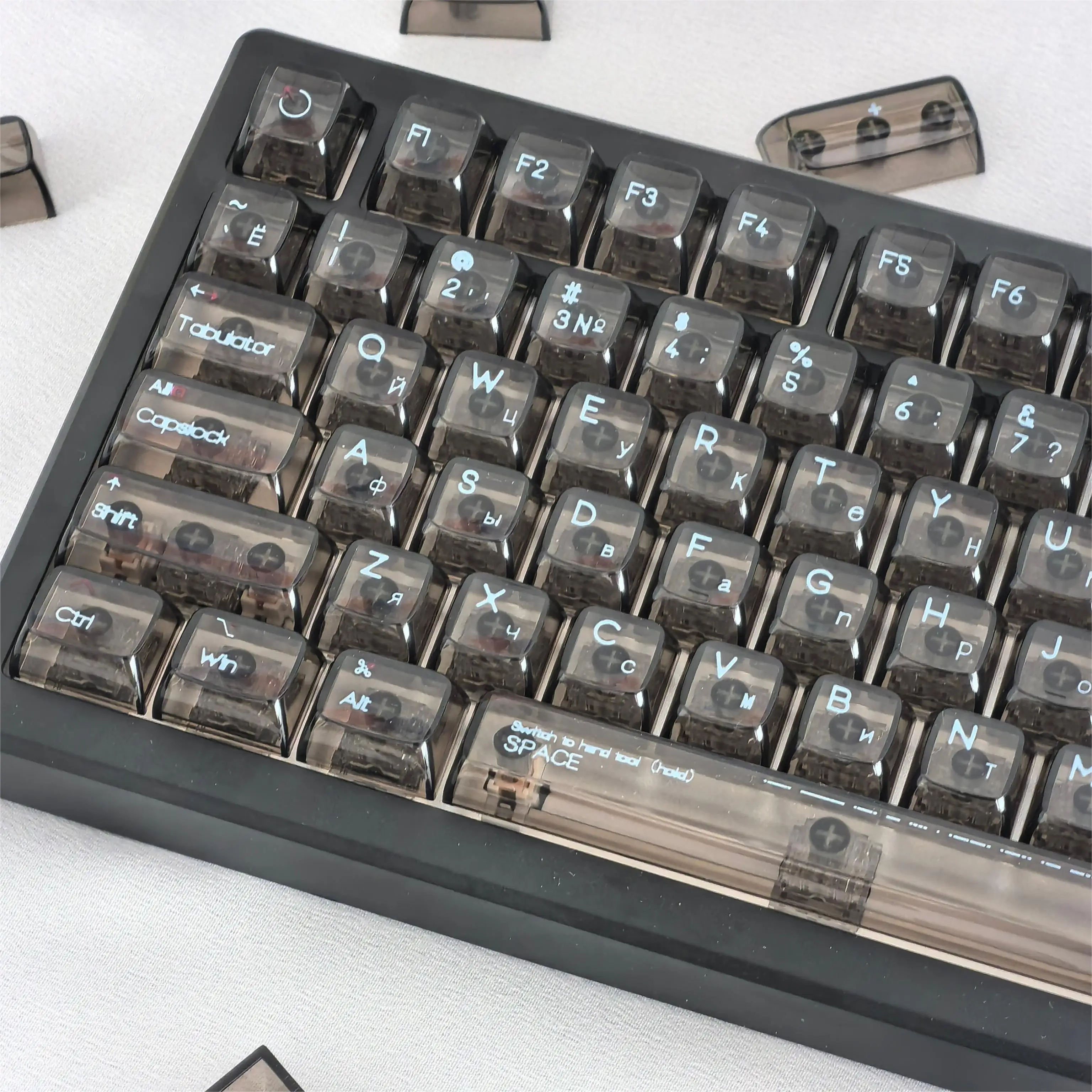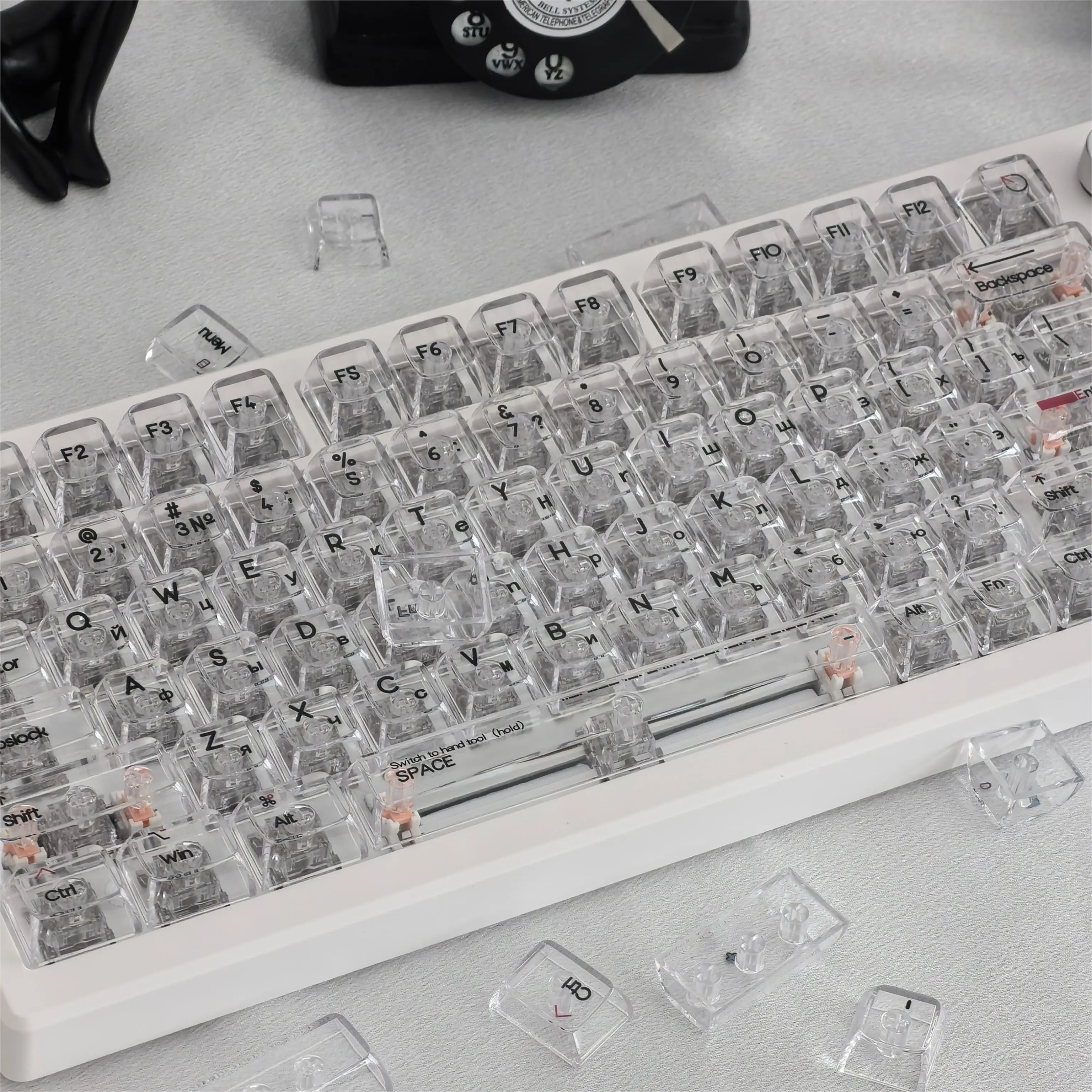 Teclas transparentes para teclados mecánicos, Material de PC CBSA, altura, negro, blanco, ruso, coreano, inglés, tailandés