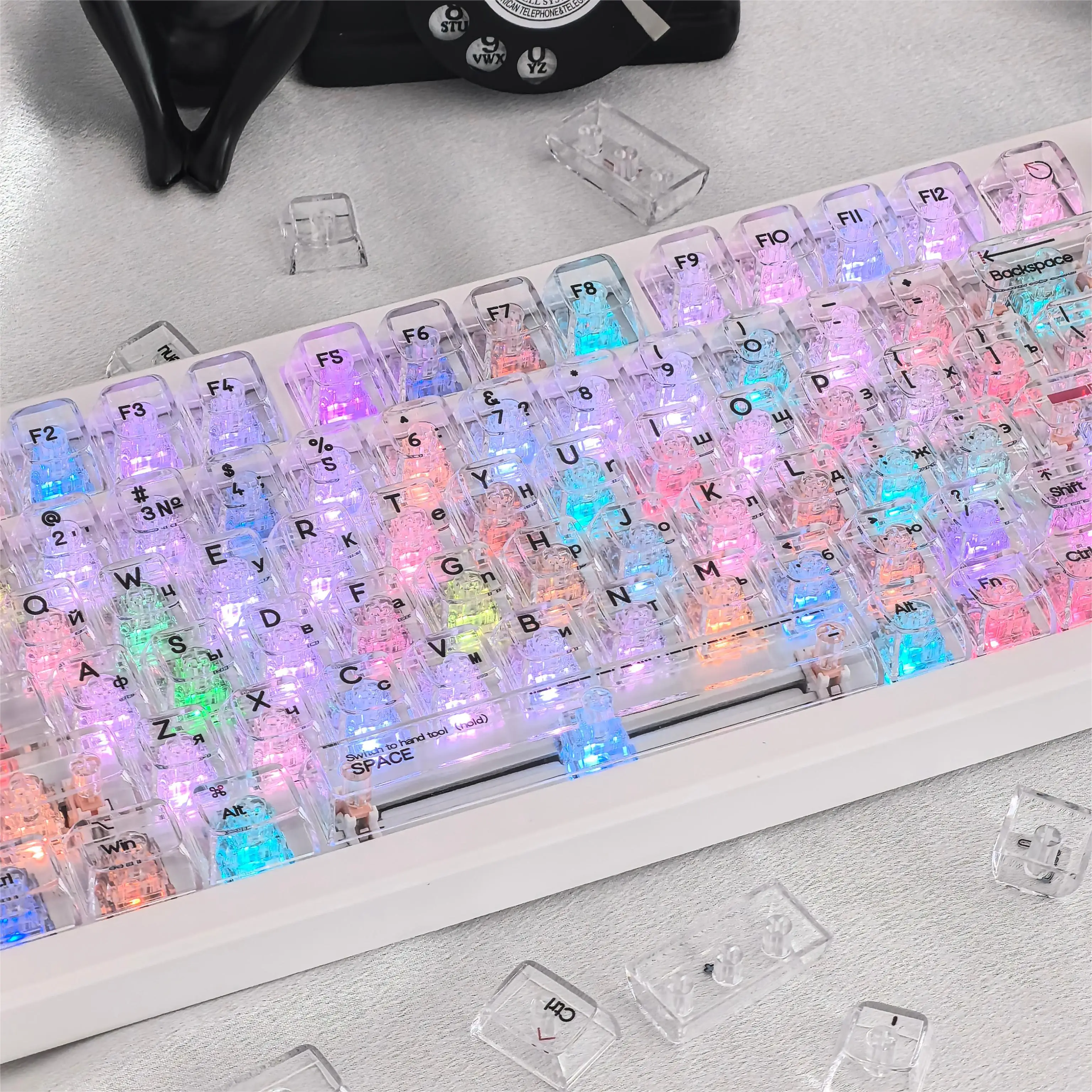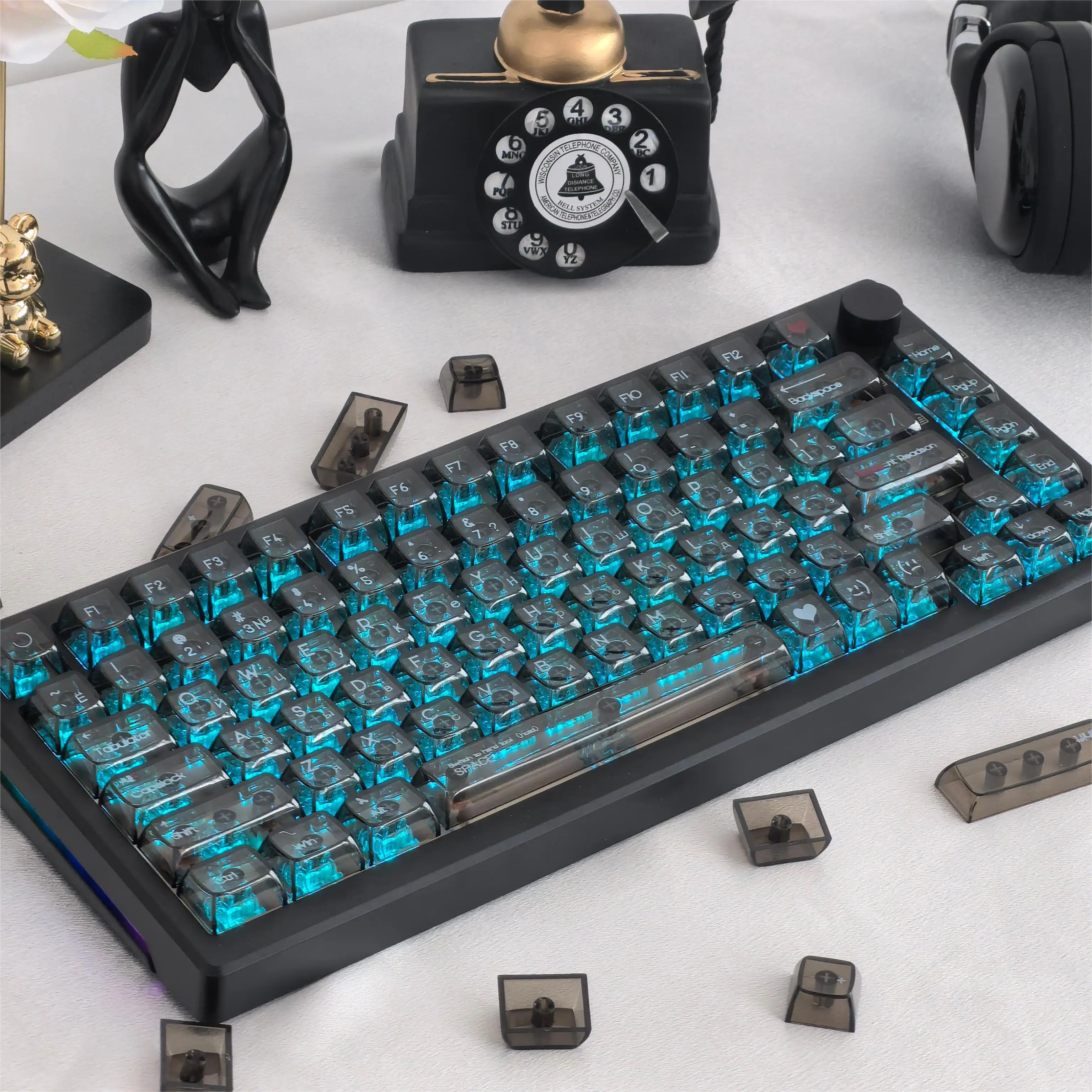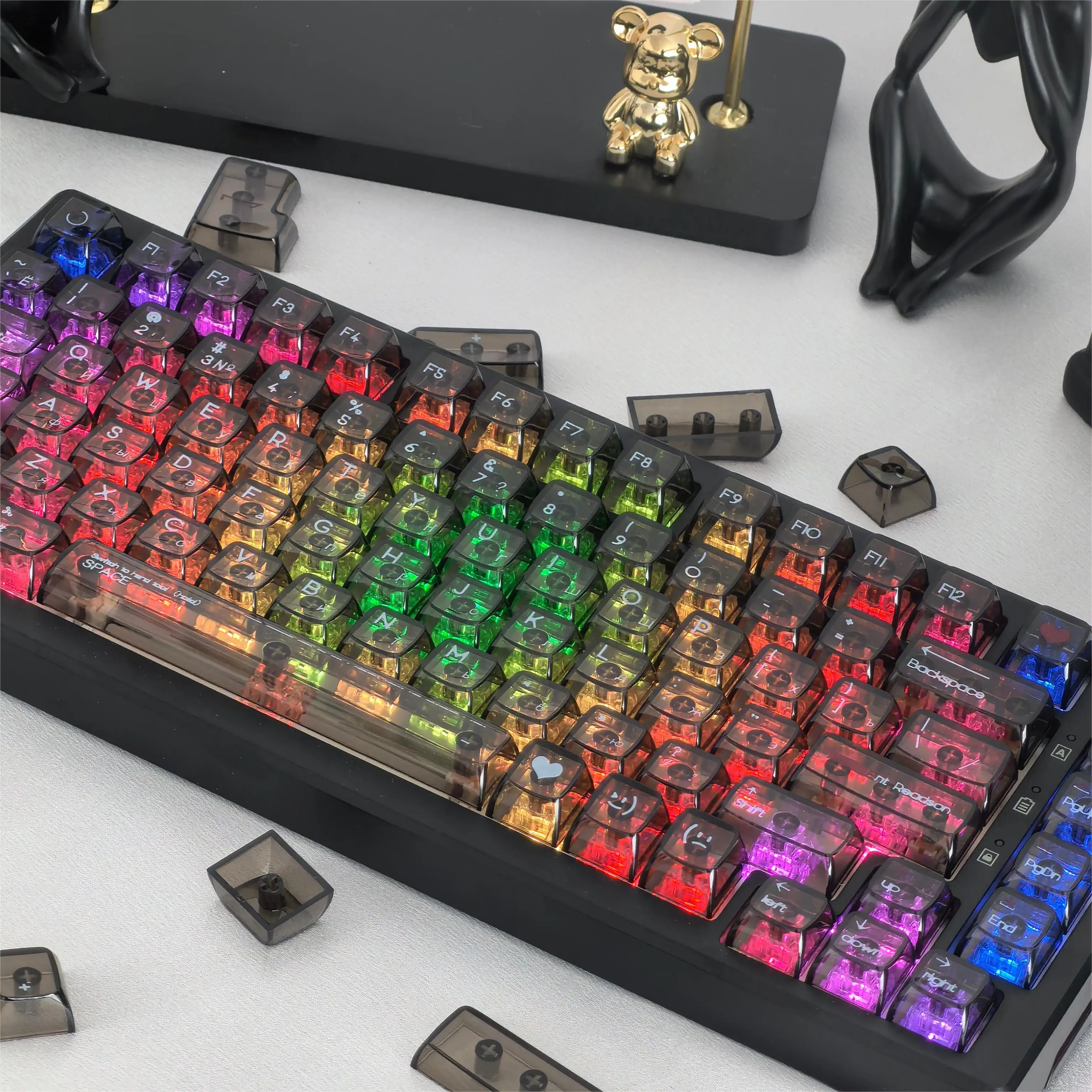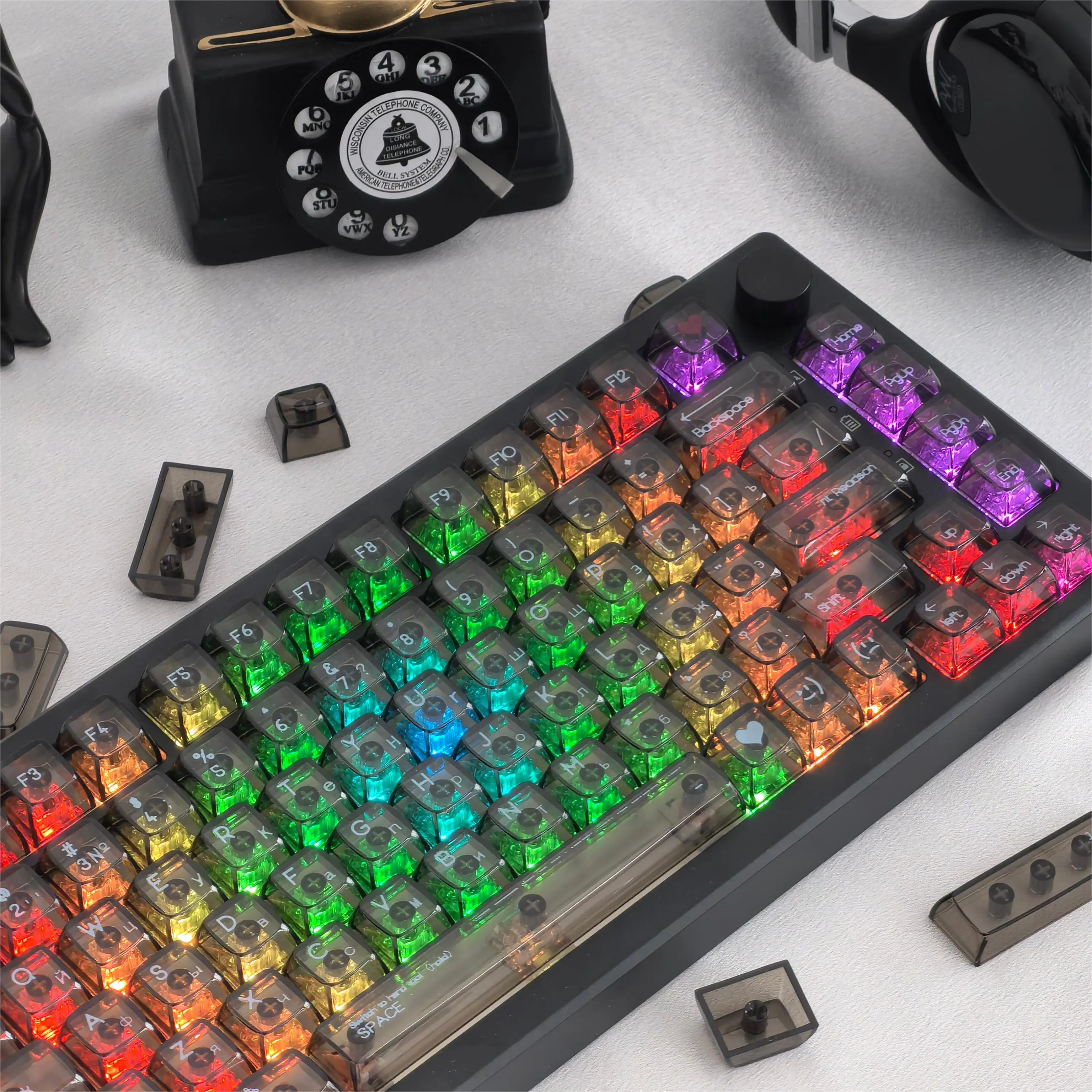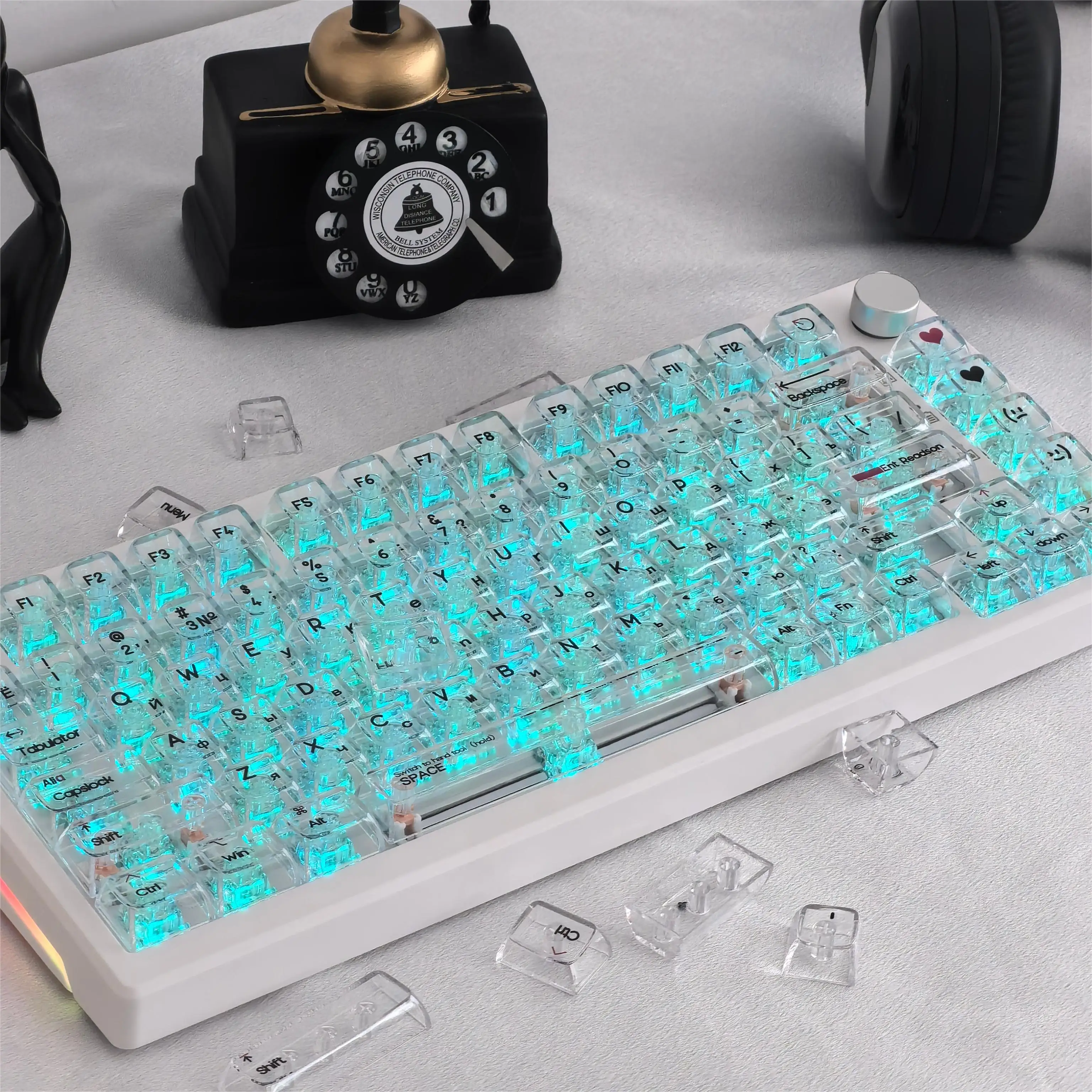 Teclas transparentes para teclados mecánicos, Material de PC CBSA, altura, negro, blanco, ruso, coreano, inglés, tailandés