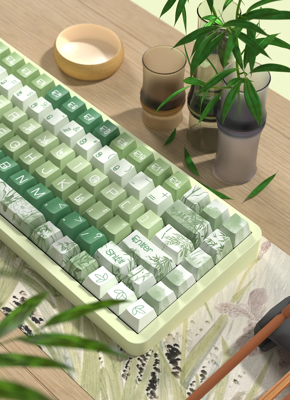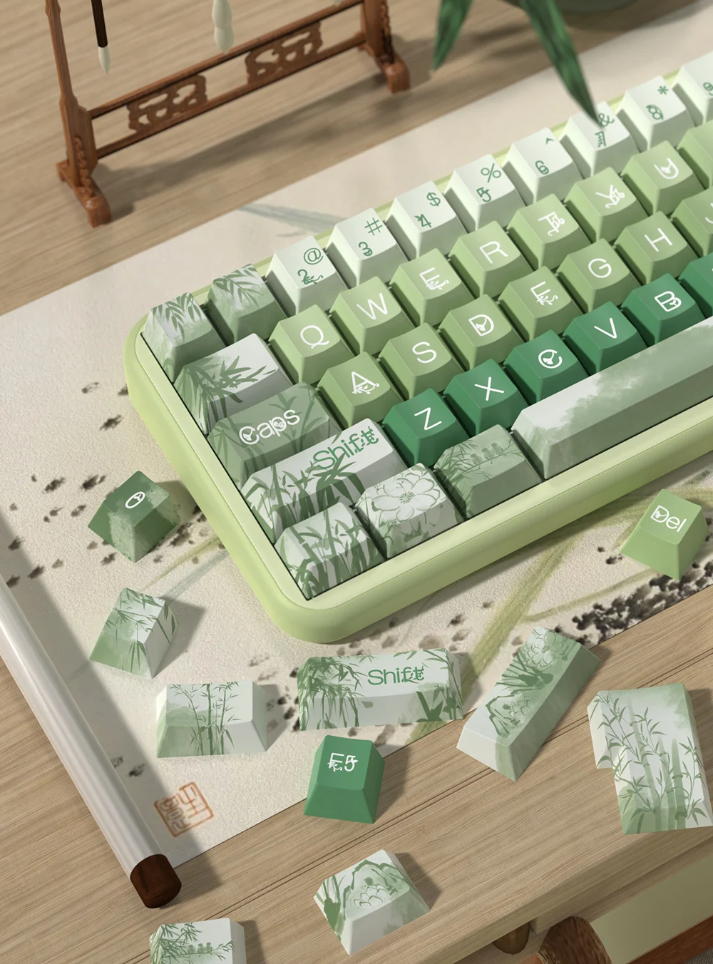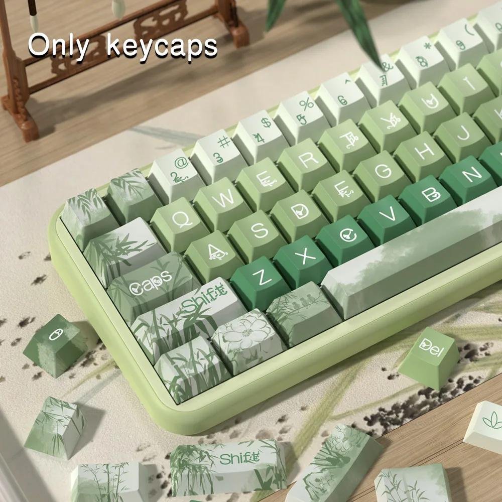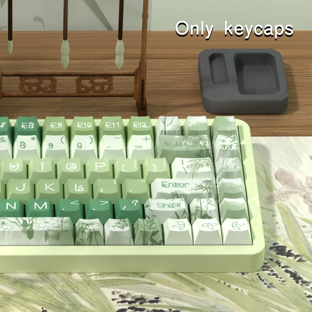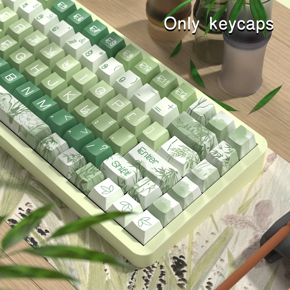 Comprar Teclas verdes de bambú de estilo chino para teclado mecánico Mx Switch, perfil de cereza Sub, teclas PBT personalizadas ISO Enter 7U space