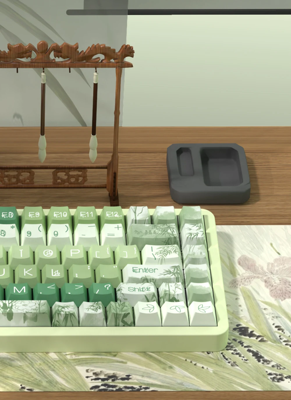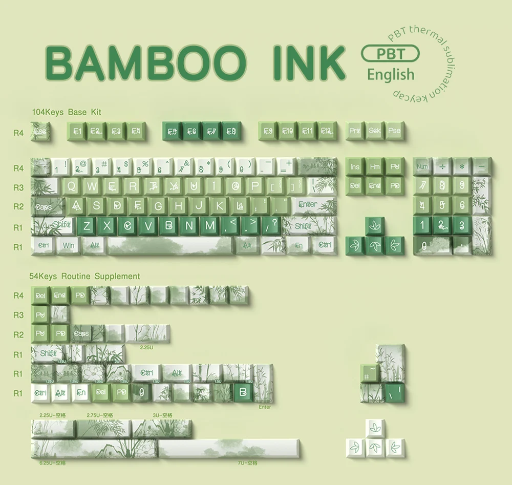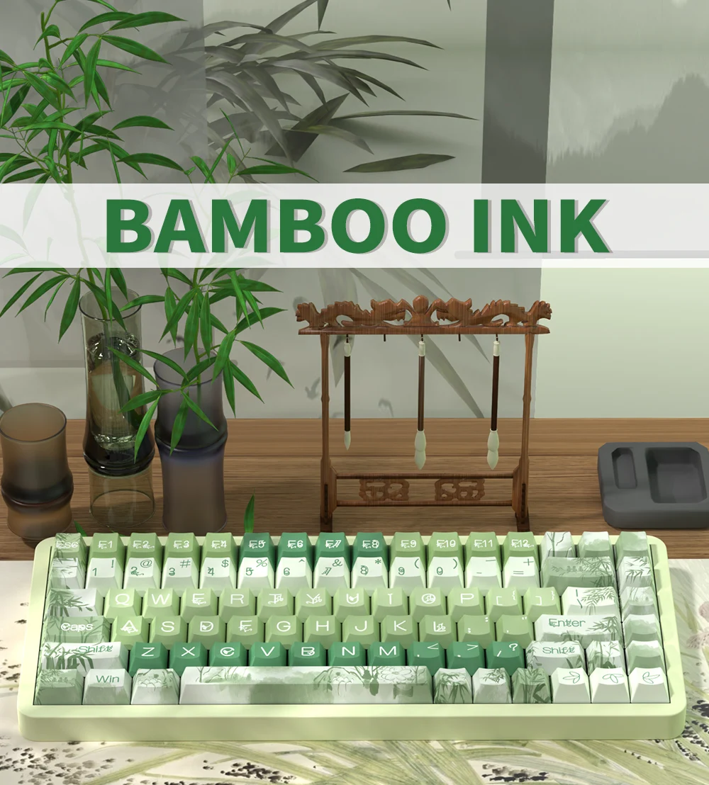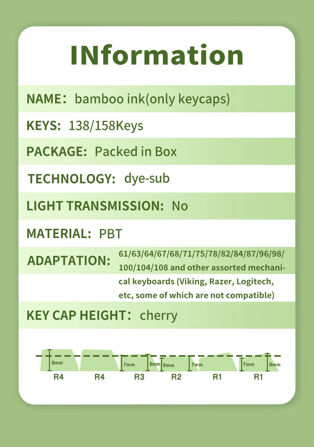 Comprar Teclas verdes de bambú de estilo chino para teclado mecánico Mx Switch, perfil de cereza Sub, teclas PBT personalizadas ISO Enter 7U space